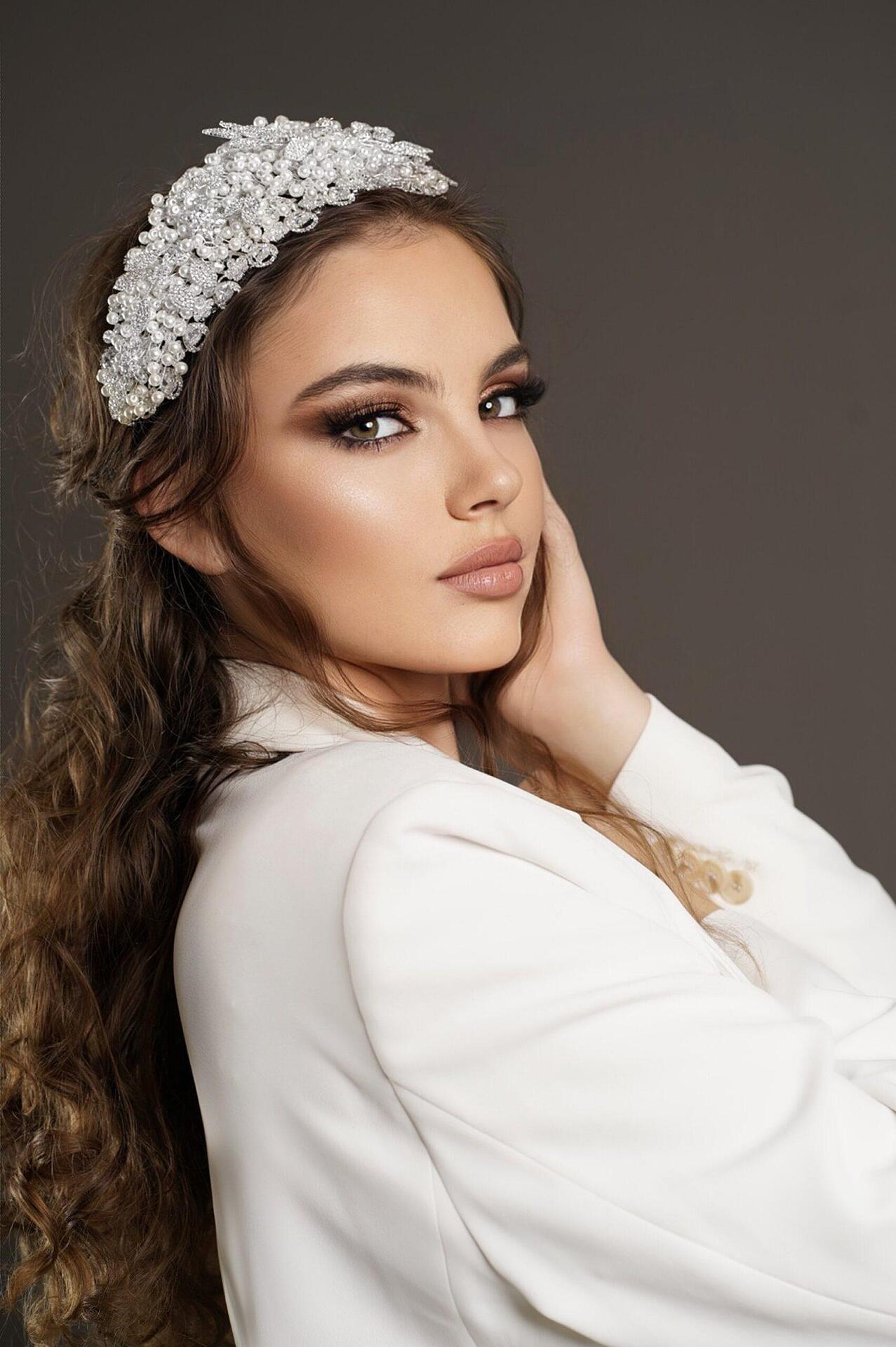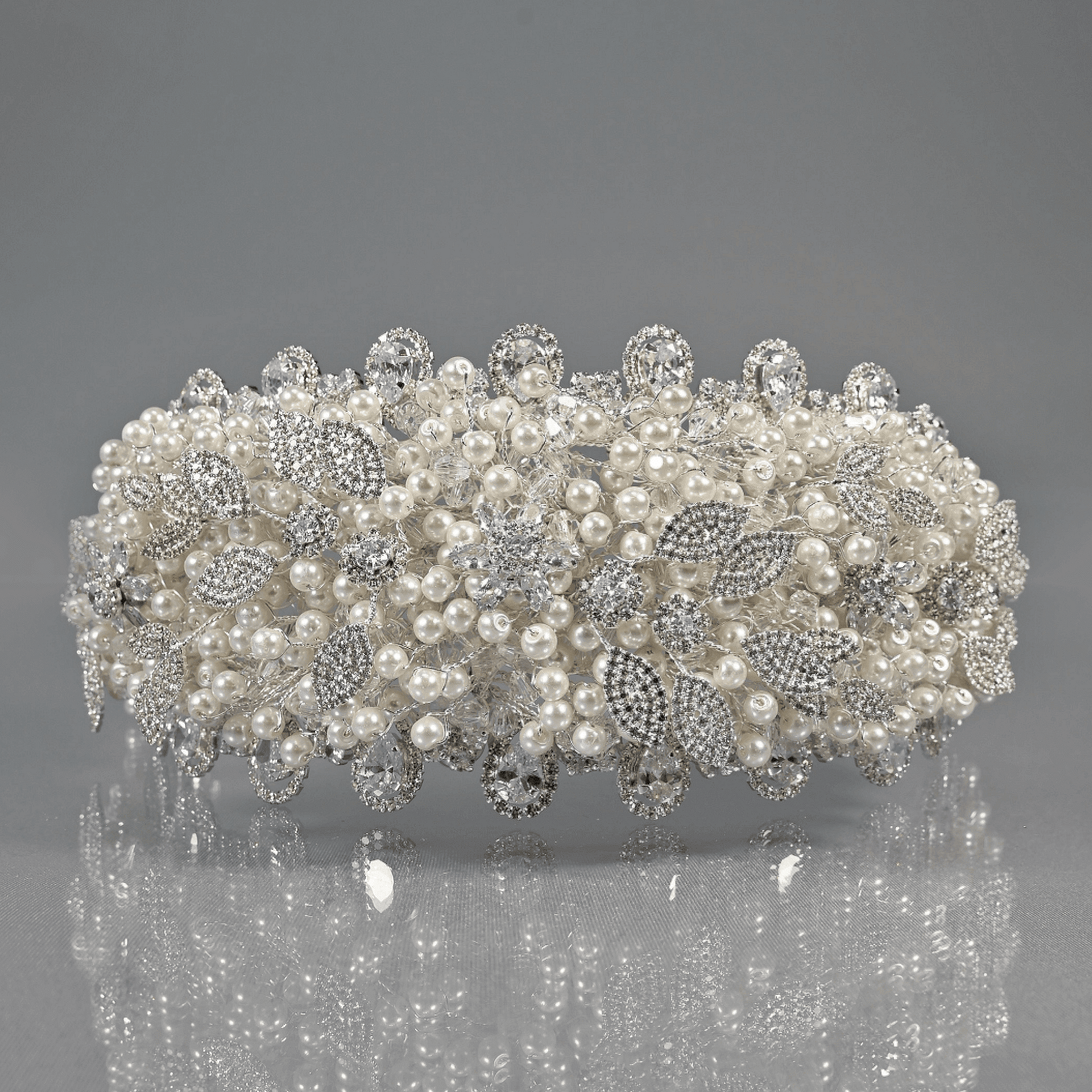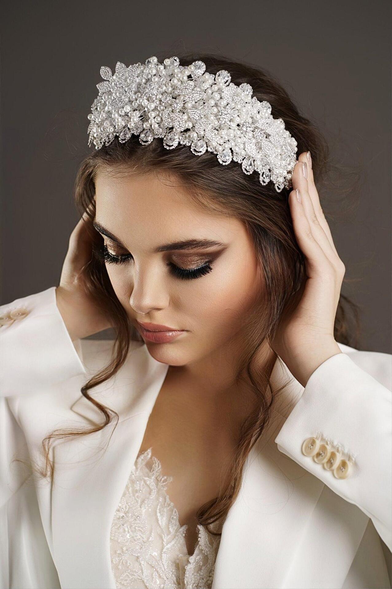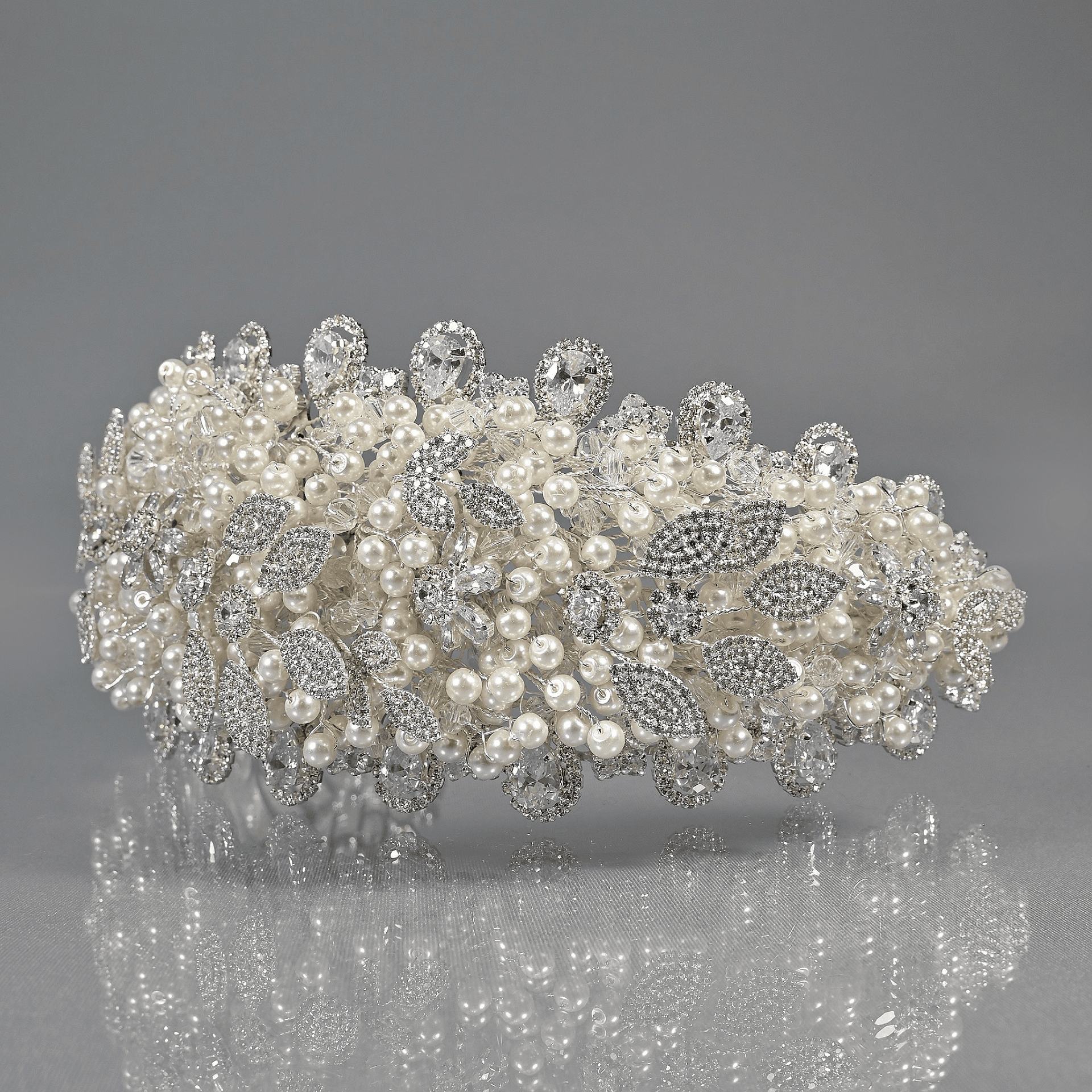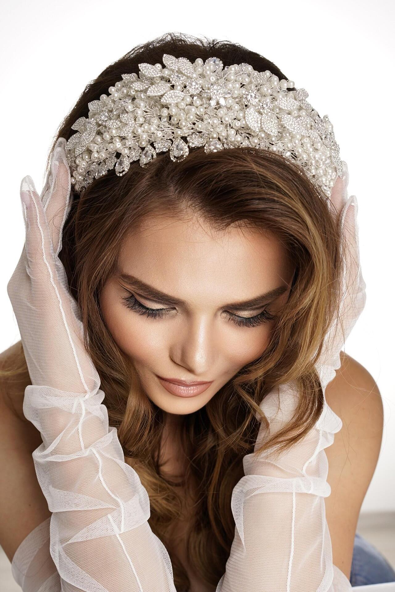 Диадема, към която има прикрепени кристали цирконий и перли. Този аксесоар може да направи всяка обикновена визия специална, благорение на ефекта, който създават кристалите върху него. Размерът може да бъде регулиран спрямо вашата глава, за да бъде удобно за всеки.