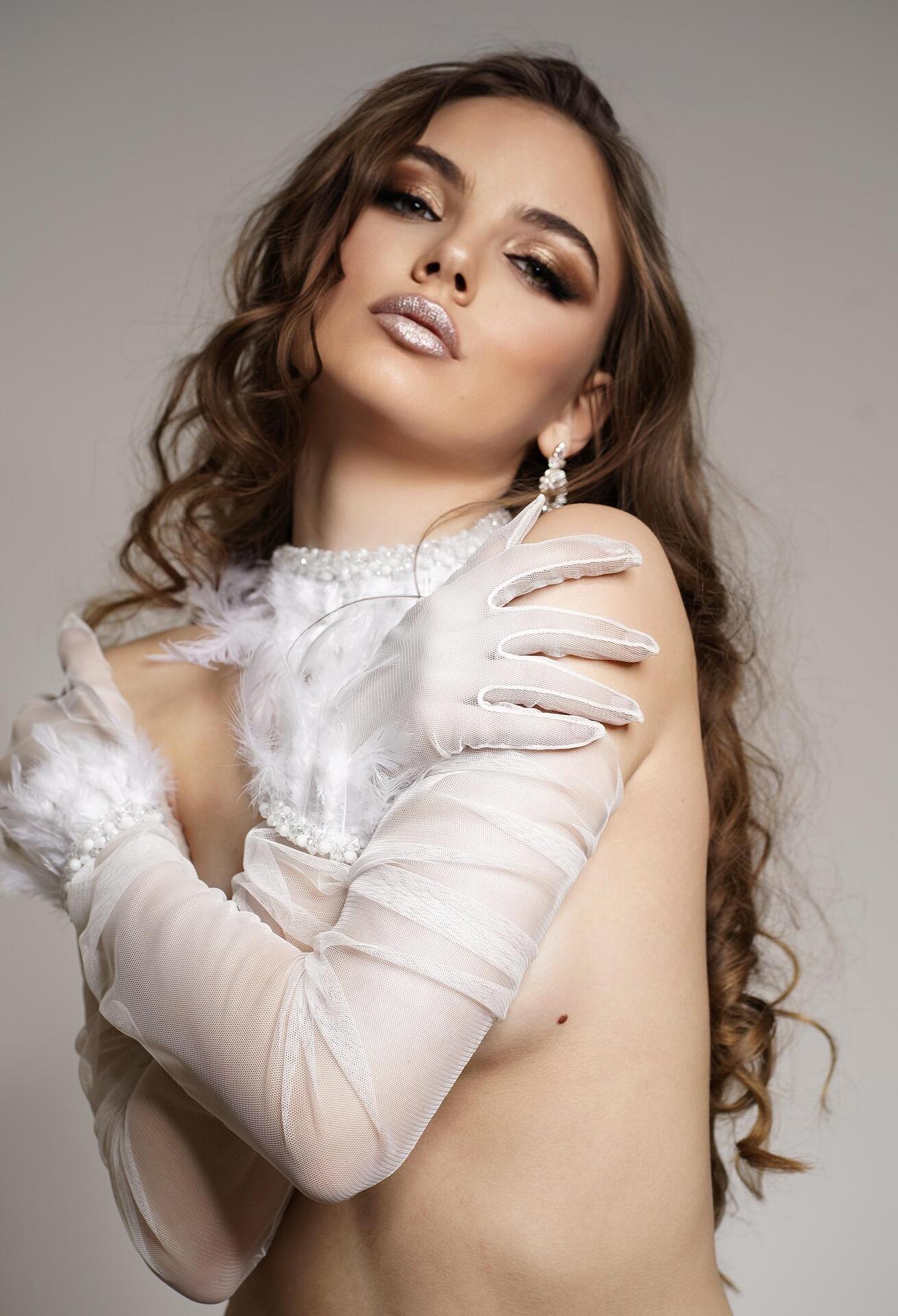 Бели дълги мрежести ръкавици