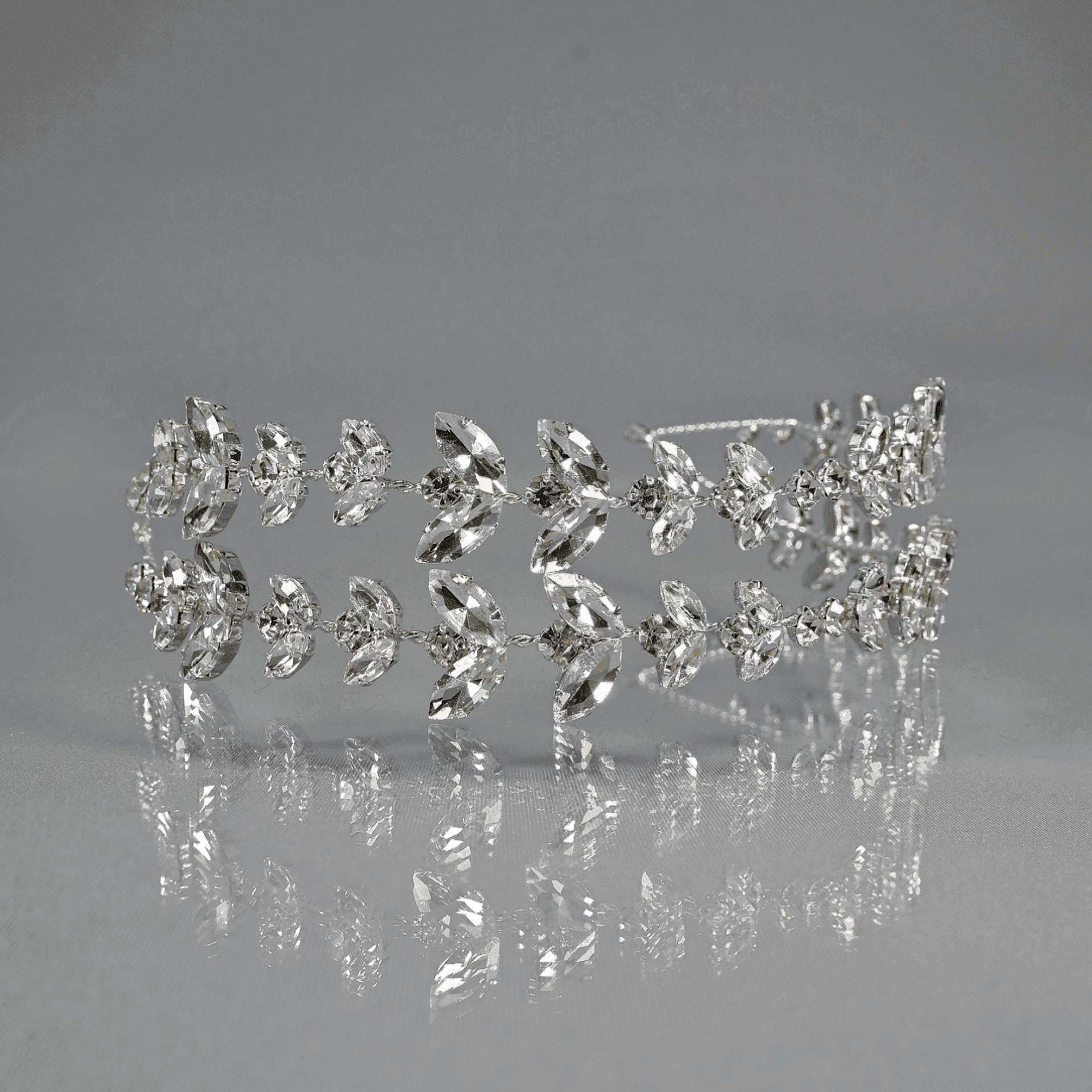 Представлява двойна метална диадема, към която има прикрепени кристали. Този аксесоар може да направи всяка обикновена визия специална, благорение на ефекта, който създават кристалите върху него. Размерът може да бъде регулиран спрямо вашата глава, за да бъде удобно за всеки.