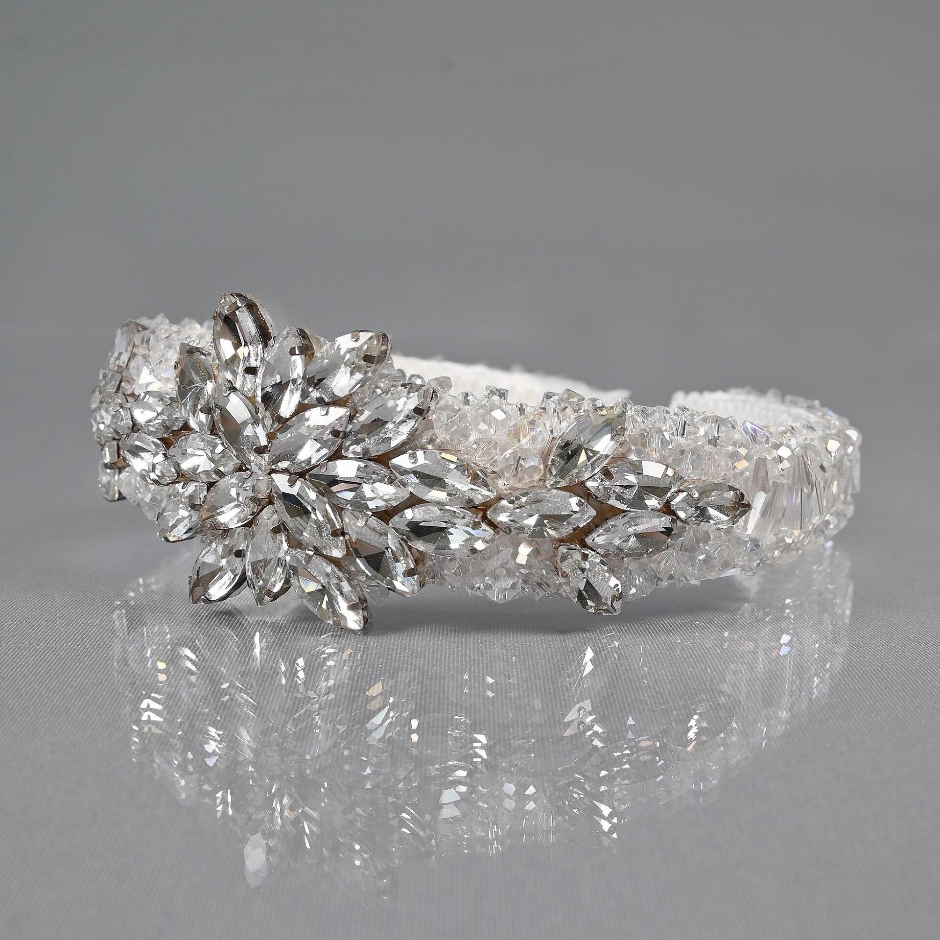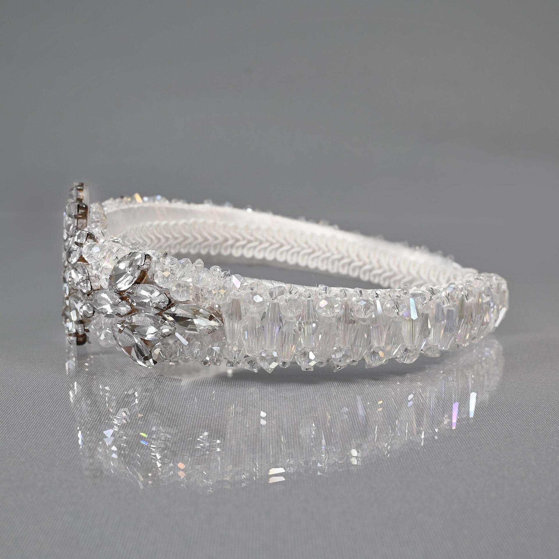 Луксозна ръчно изработена диадема от висококачествени кристали и мъниста. Подходяща за вашия специален ден. Широка е около 7 см.