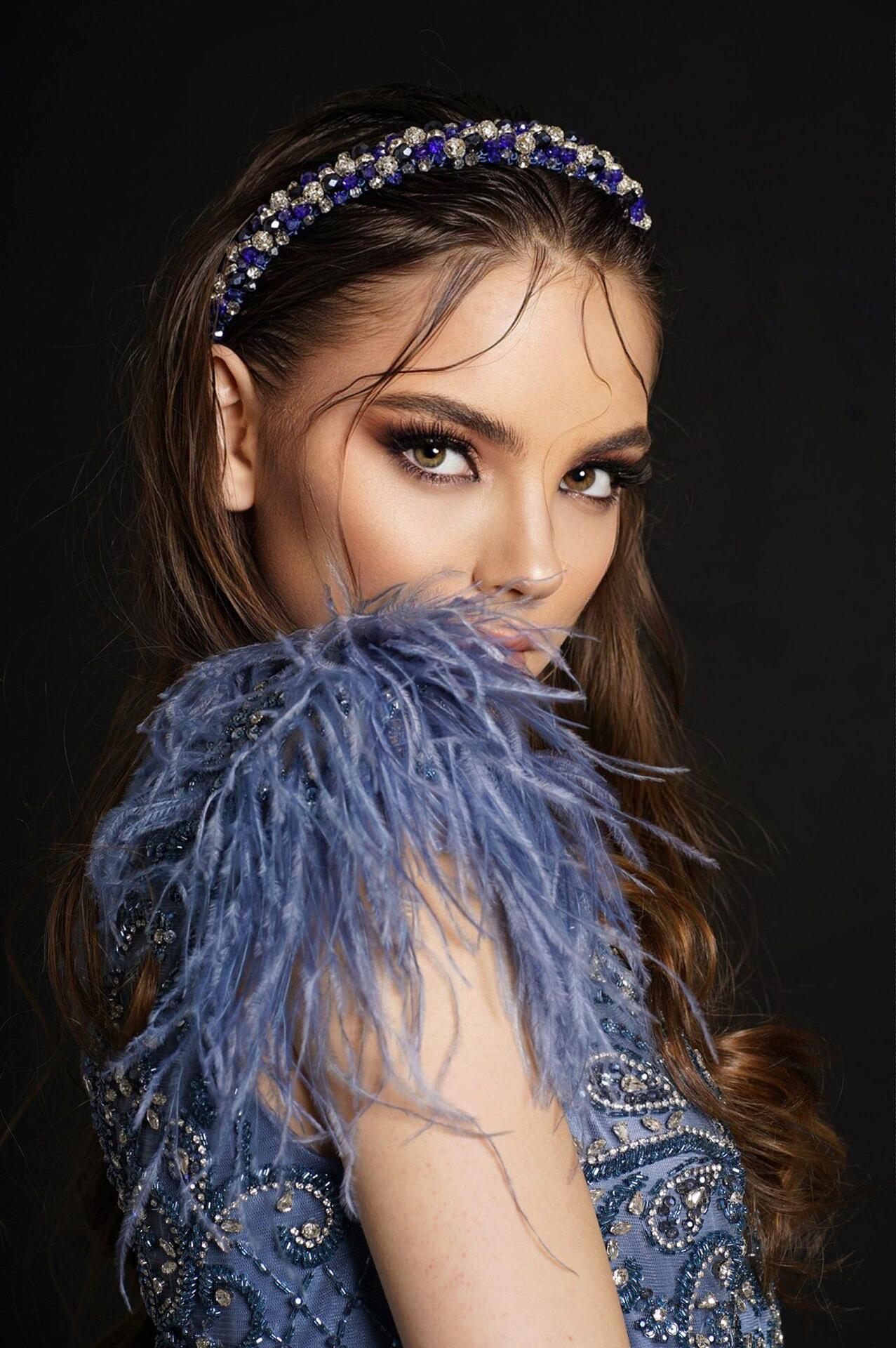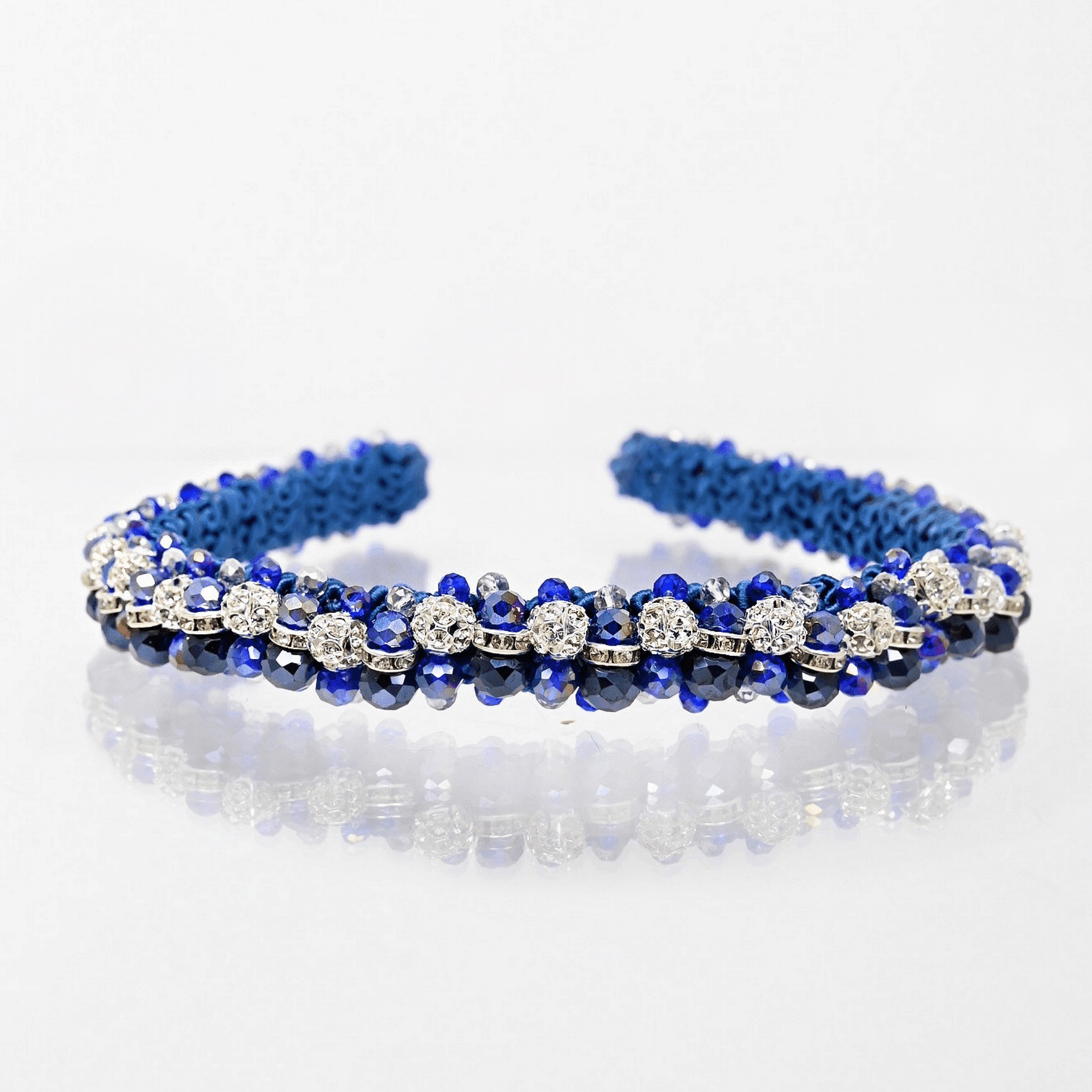 Диадема нашита цялата с кристали и мъниста. Нежна и лека. Използвана е твърда корда, която държи здраво и стегнато кристалите по основата на диадемата. Ръчно изработена от висококачествени материали. Размерът може да се регулира, за да бъде удобна на всеки. Широка около 2 см.