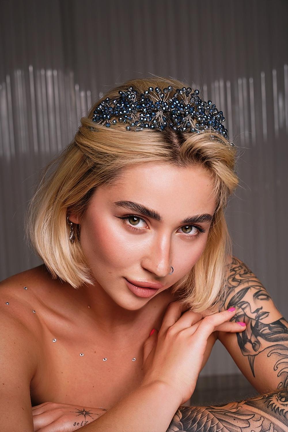 Диадема нашита цялата с мъниста. Нежна и лека. Ръчно изработена от висококачествени материали. Размерът може да бъде регулиран, за да бъде удобно на всеки.