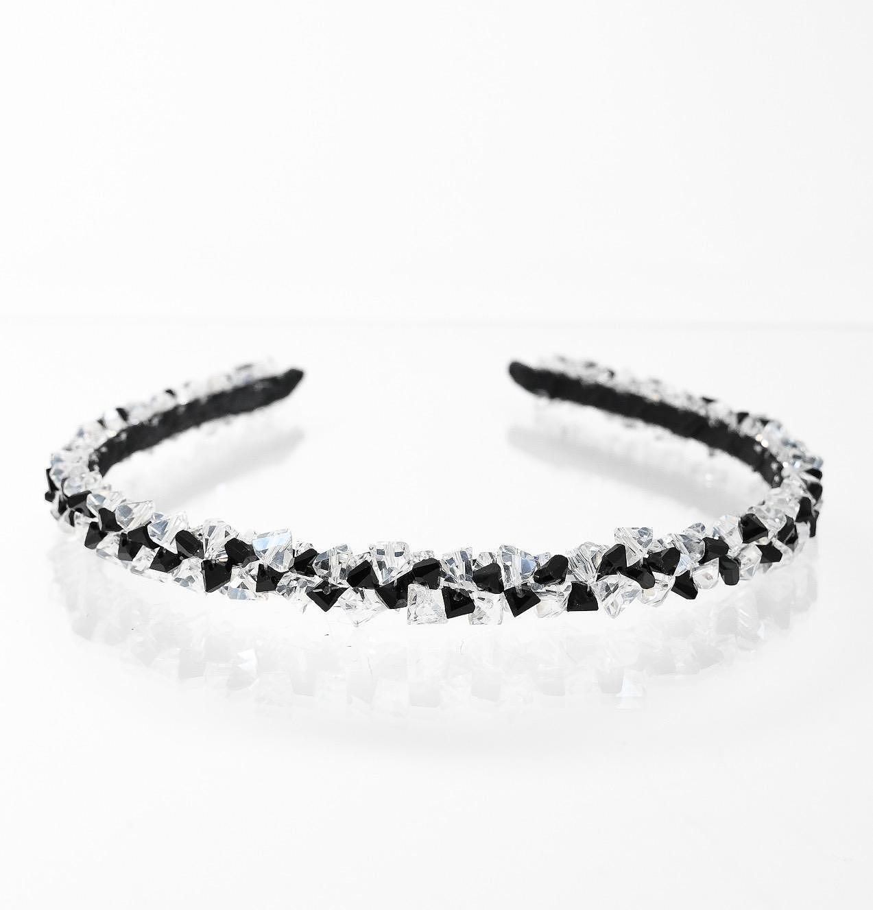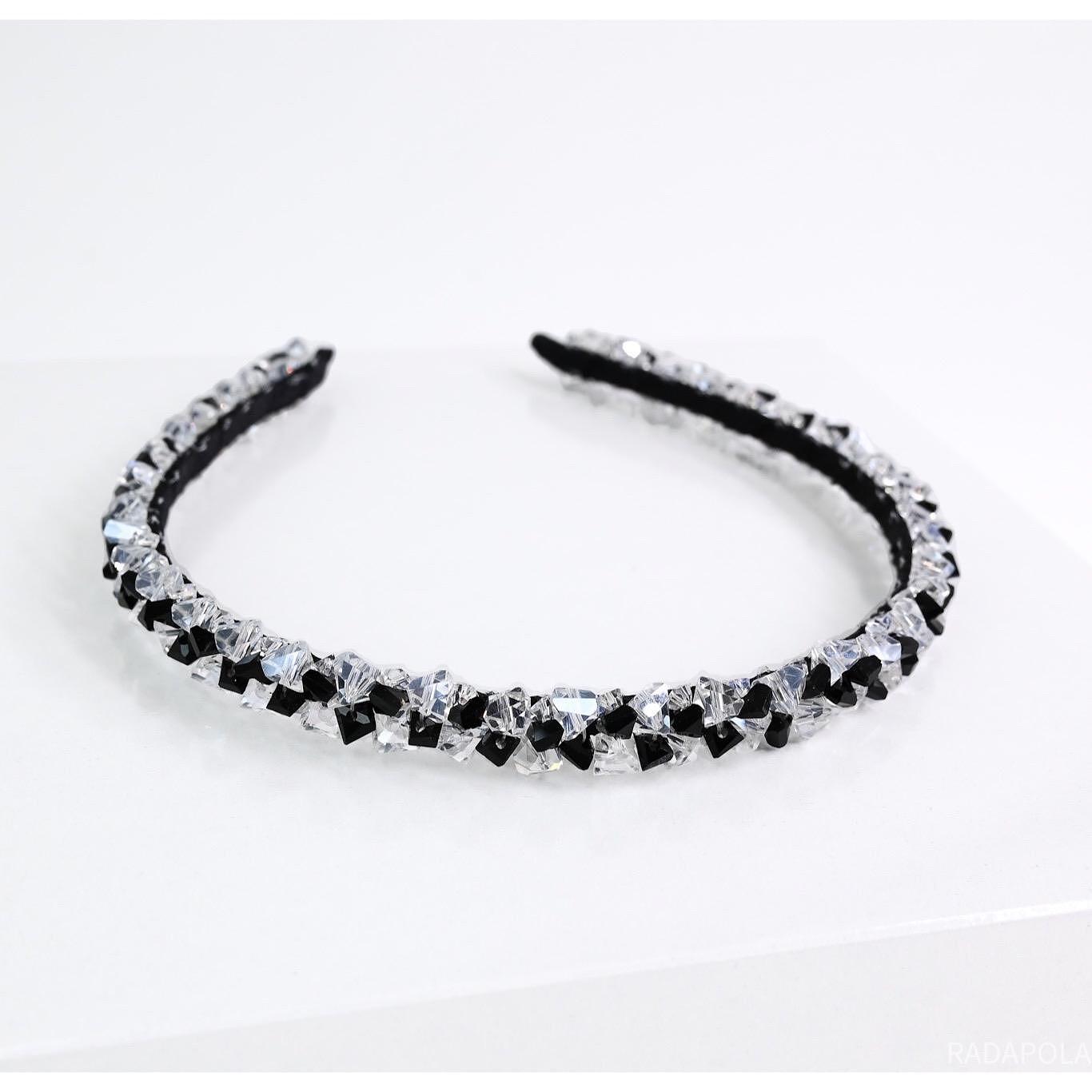 Диадема нашита цялата с мъниста. Нежна и лека. Използвана е твърда корда, която държи здраво и стегнато кристалите по основата на диадемата. Ръчно изработена от висококачествени материали. Размерът може да се регулира, за да бъде удобна на всеки. Широка около 1,2 см.