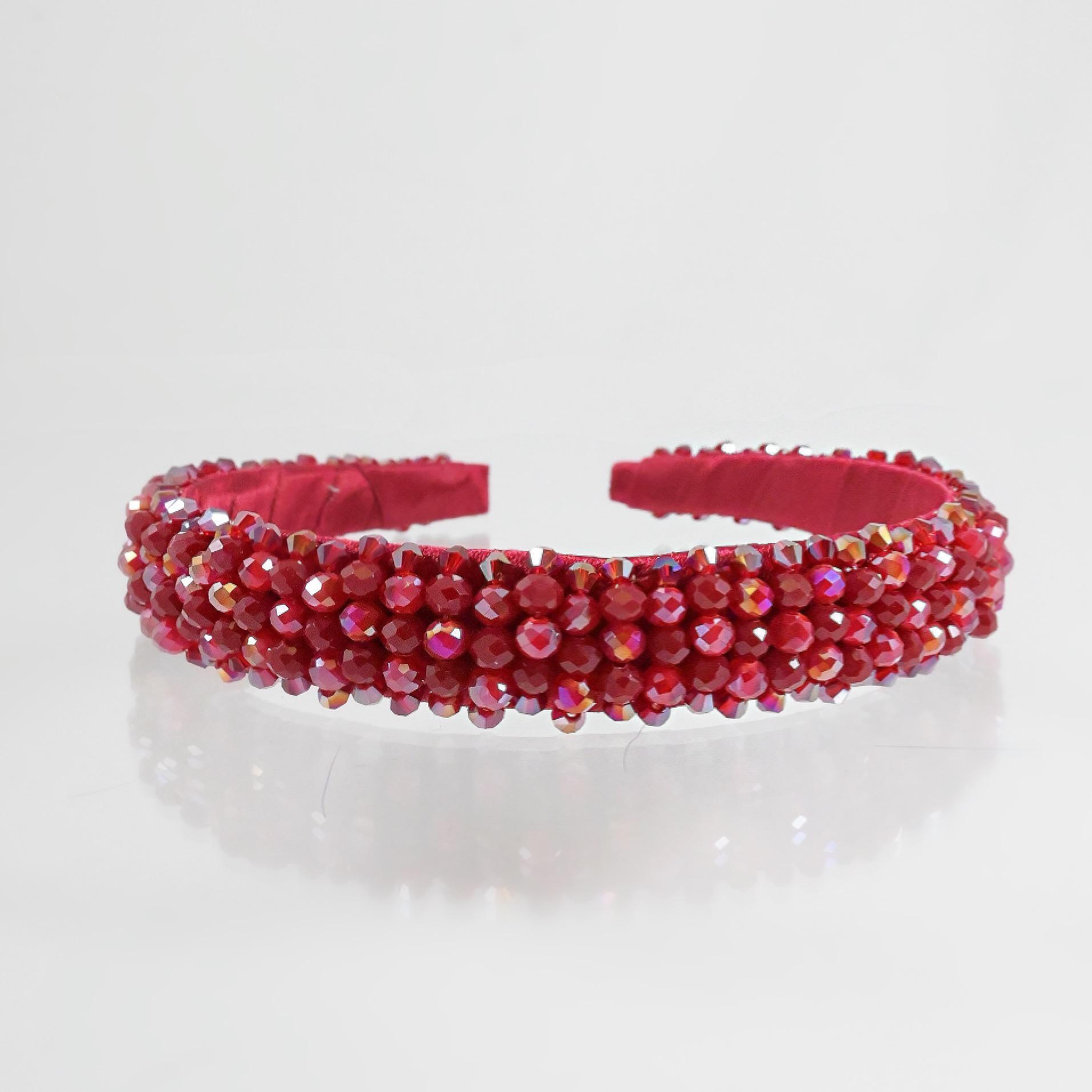 Диадемата е изработена от висококачествени материали. Обемна и лека, може да се изрботи и в други цветове. Обшита е с червени мъниста. Използвана е твърда корда за зашиването на мънистата, за да няма опасност да паднат.