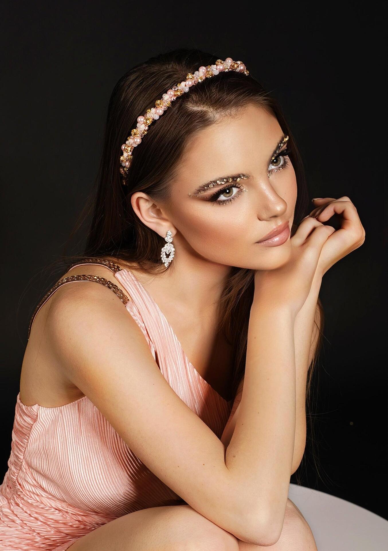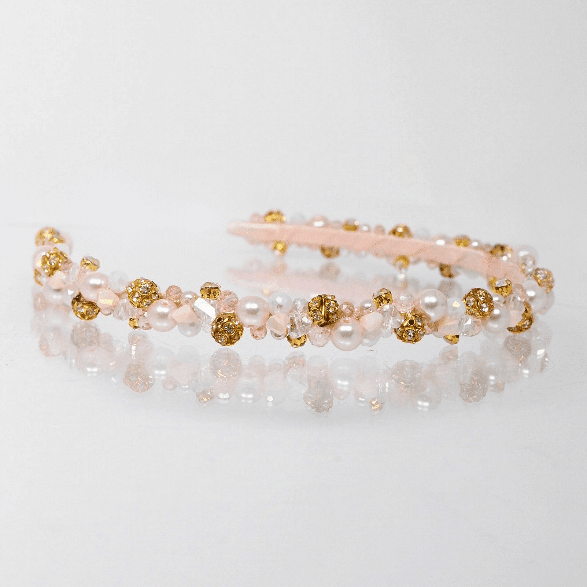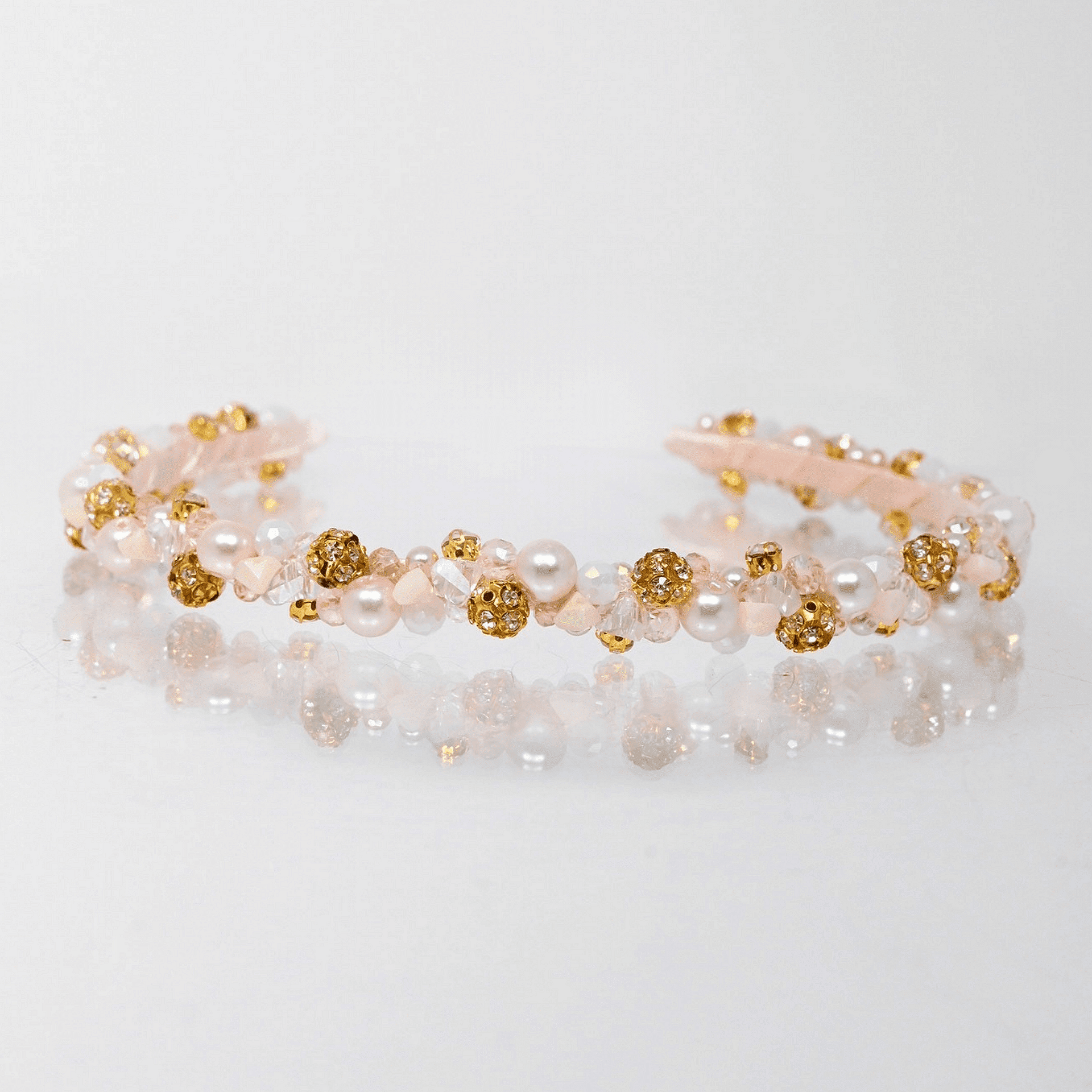 Диадема нашита цялата с кристали и мъниста. Нежна и лека. Използвана е твърда корда, която държи здраво и стегнато кристалите по основата на диадемата. Ръчно изработена от висококачествени материали. Размерът може да се регулира, за да бъде удобна на всеки. Широка около 2 см.