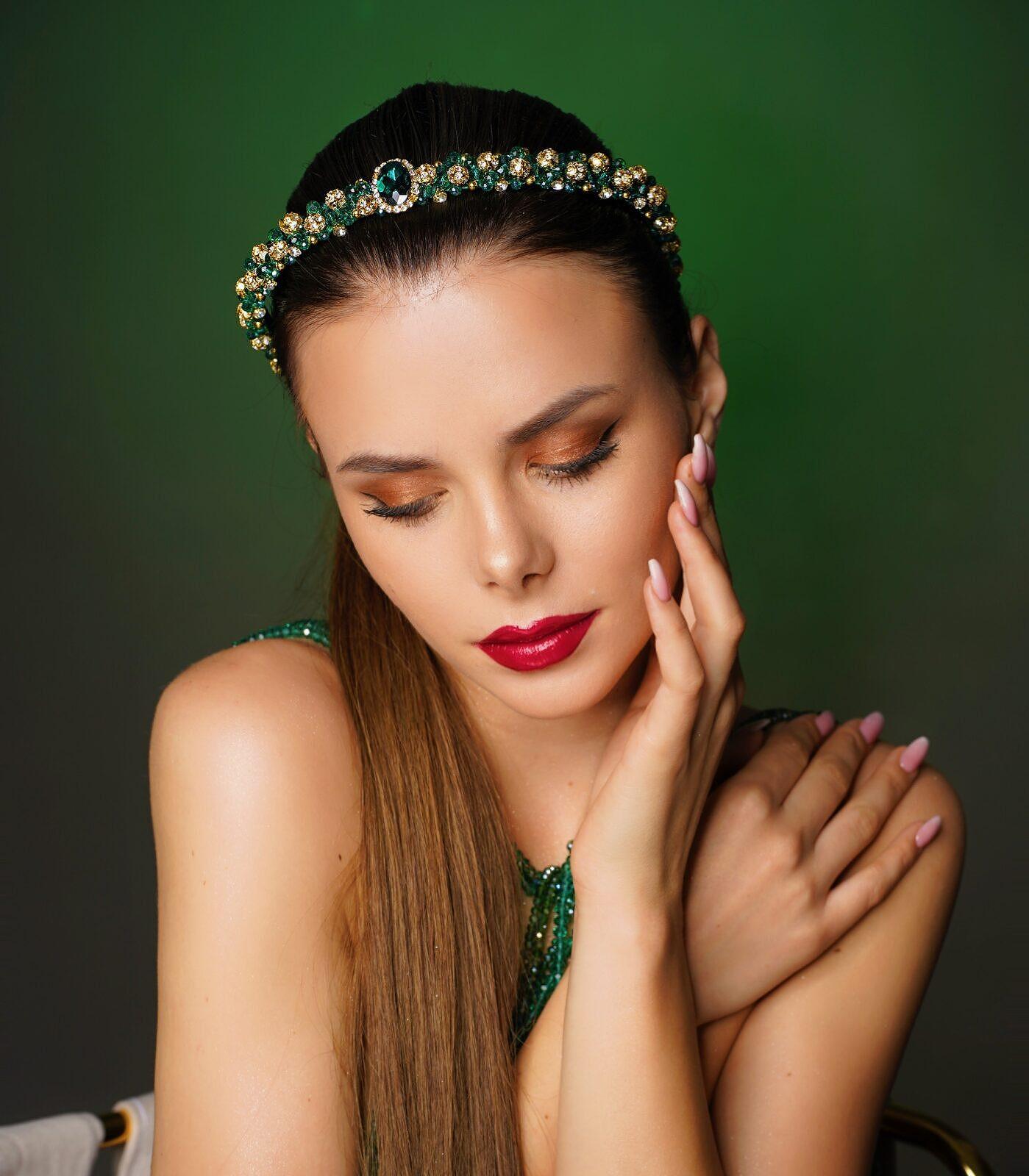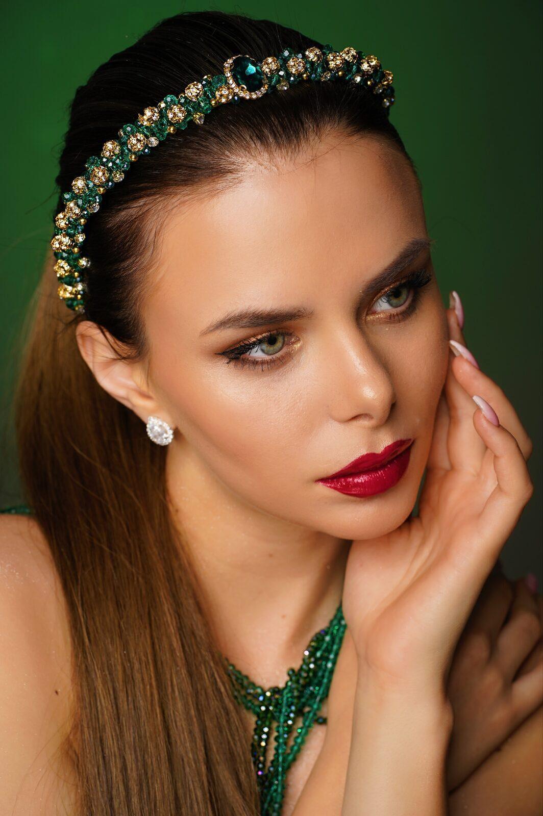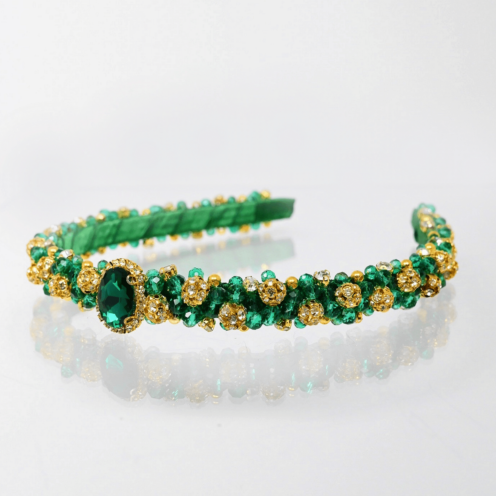 Диадема нашита цялата с кристали и мъниста. Нежна и лека. Използвана е твърда корда, която държи здраво и стегнато кристалите по основата на диадемата. Ръчно изработена от висококачествени материали. Размерът може да се регулира, за да бъде удобна на всеки. Широка около 1,2 см.