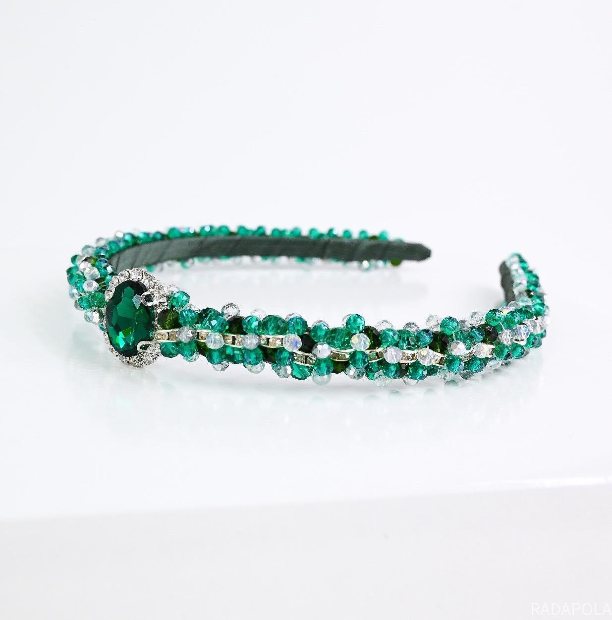 Диадема обшита цялата с кристали и мъниста. Нежна и лека. Използвани са само висококачествени материали за направата ѝ. Размерът може да се регулира, за да бъде удобна на всеки.