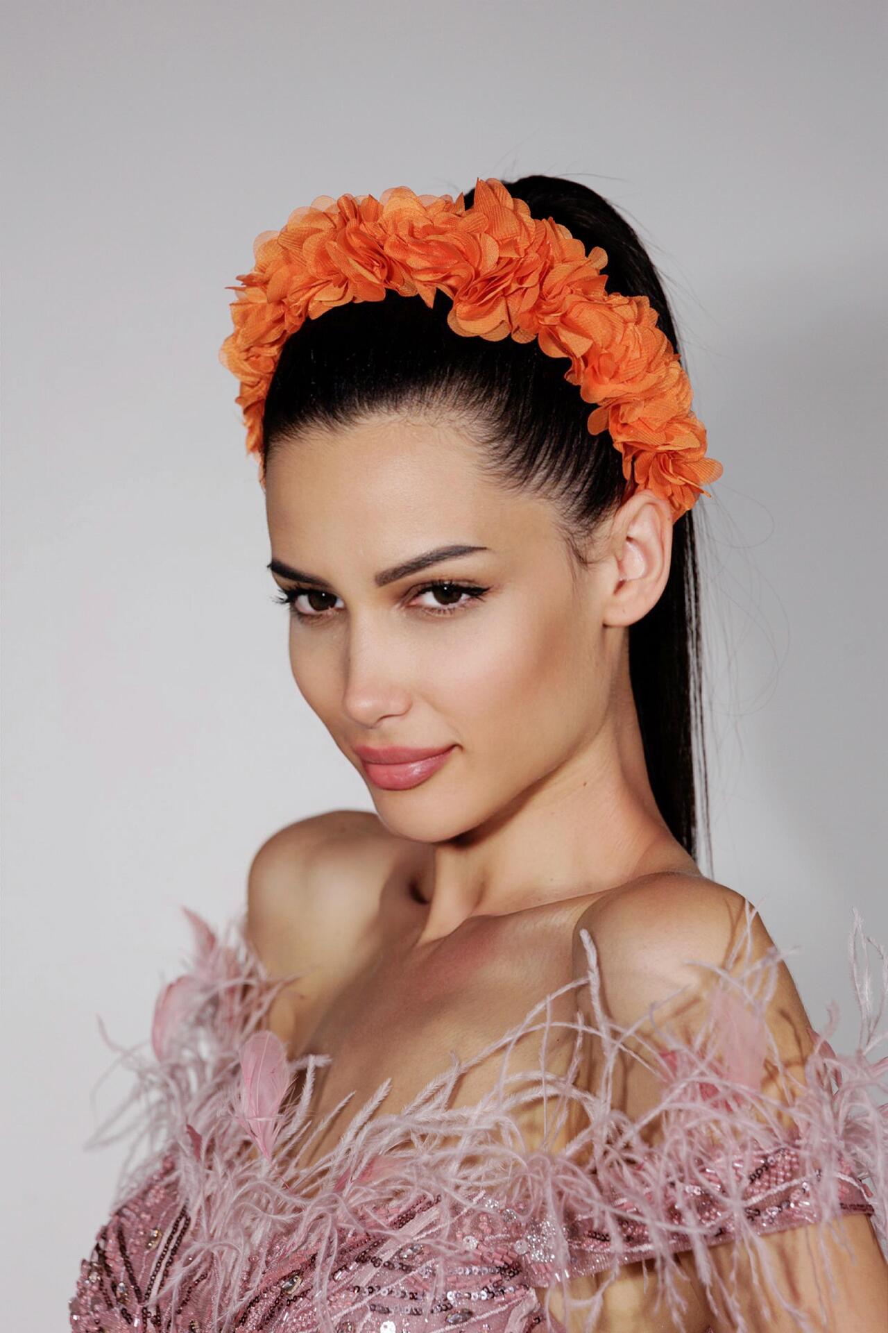 Обемна диадема с цветя от коприна. Невероятно нежна и не се усеща на главата. Подходяща е за вашия специален ден. Изработена е от висококачествени материали.