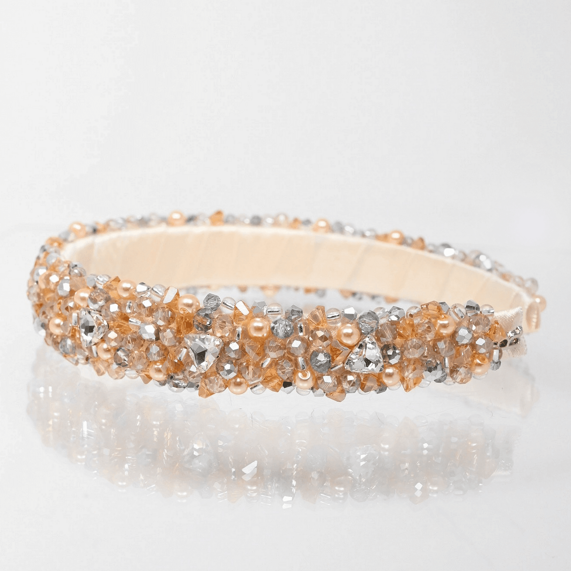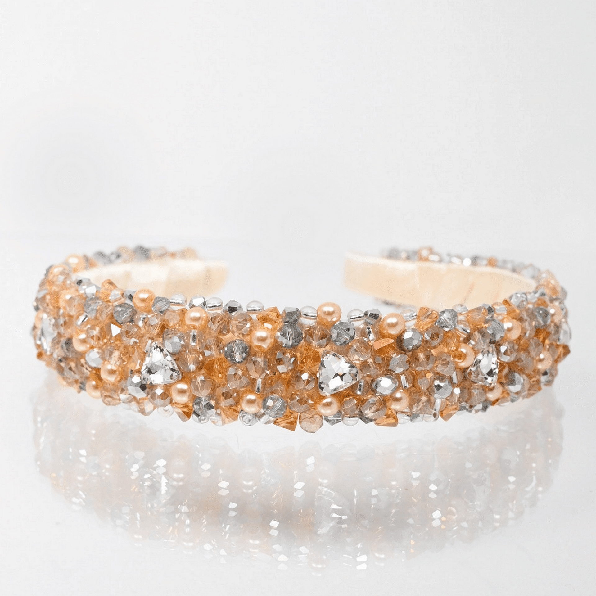 Диадемата е изработена ръчно с кристали и мъниста, които са прецизно зашити с твърда корда, което не позволява на материала да падне. Може да бъде регулиран размера ѝ, според вашата глава, така че да бъде по удобна за вас.