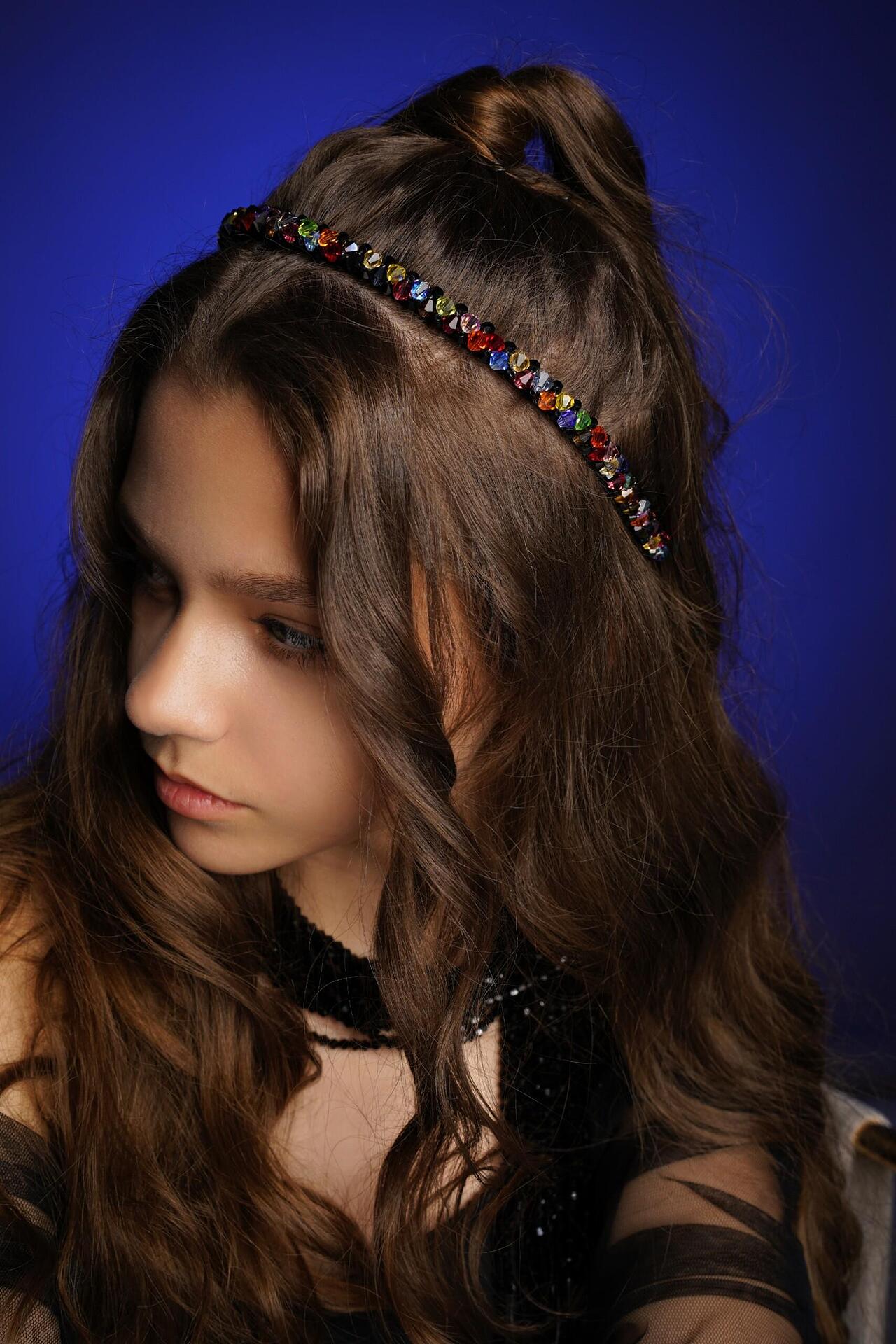Ръчно изработена диадема, изцяло с кристали Swarovski, в различни цветове. Аксесоарът е подходящ и за малки момиченца. Широка е 1,2 см. Използвани са само висококачествени материали. Размерът може да бъде регулиран спрямо вашата глава, за да бъде удобно за всеки.