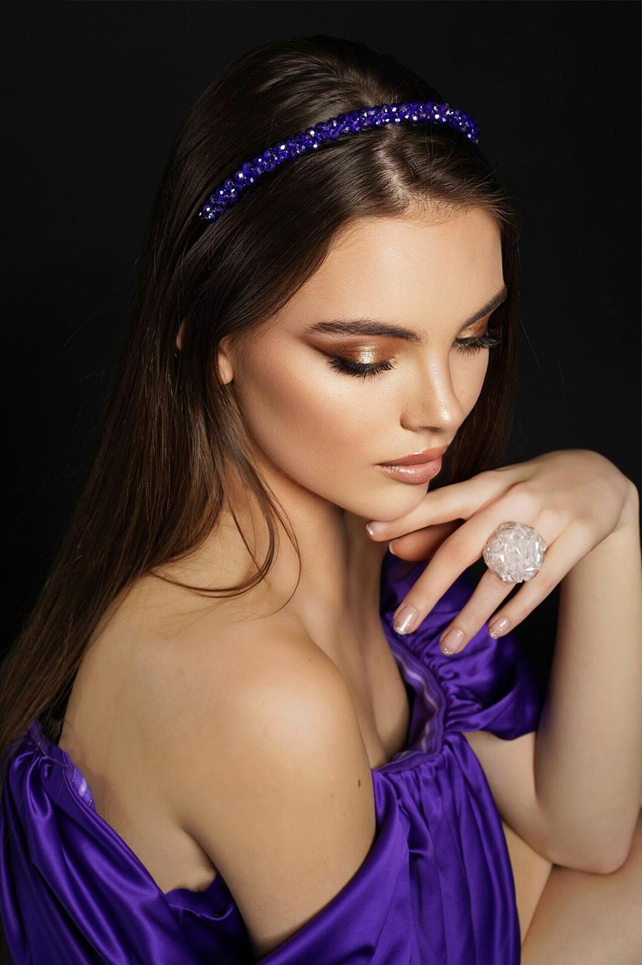 Диадема нашита цялата с кристали и мъниста. Нежна и лека. Използвани са само висококачествени материали за направата ѝ. Размерът може да се регулира, за да бъде удобна на всеки. Широка е около 1,2 см.