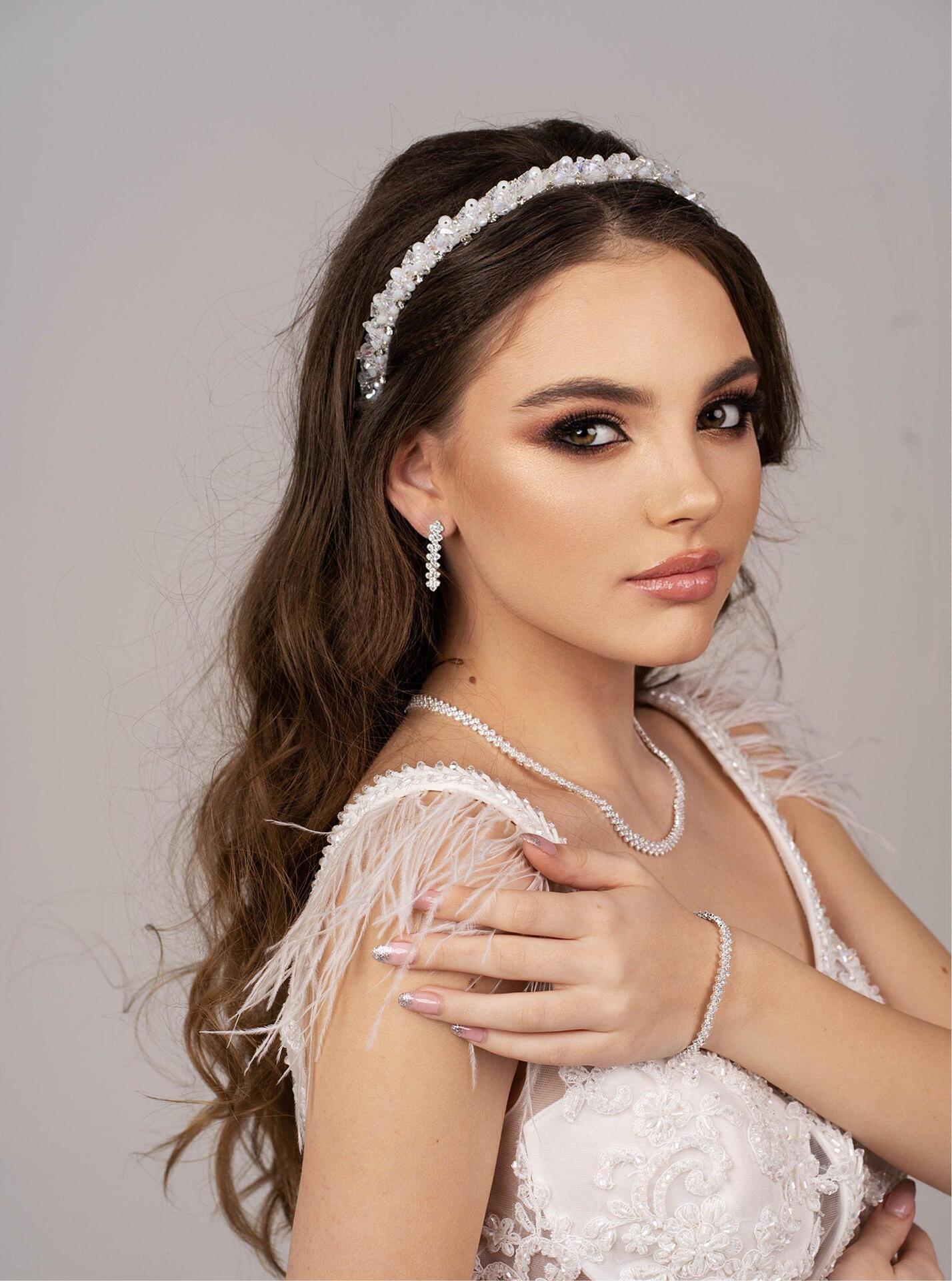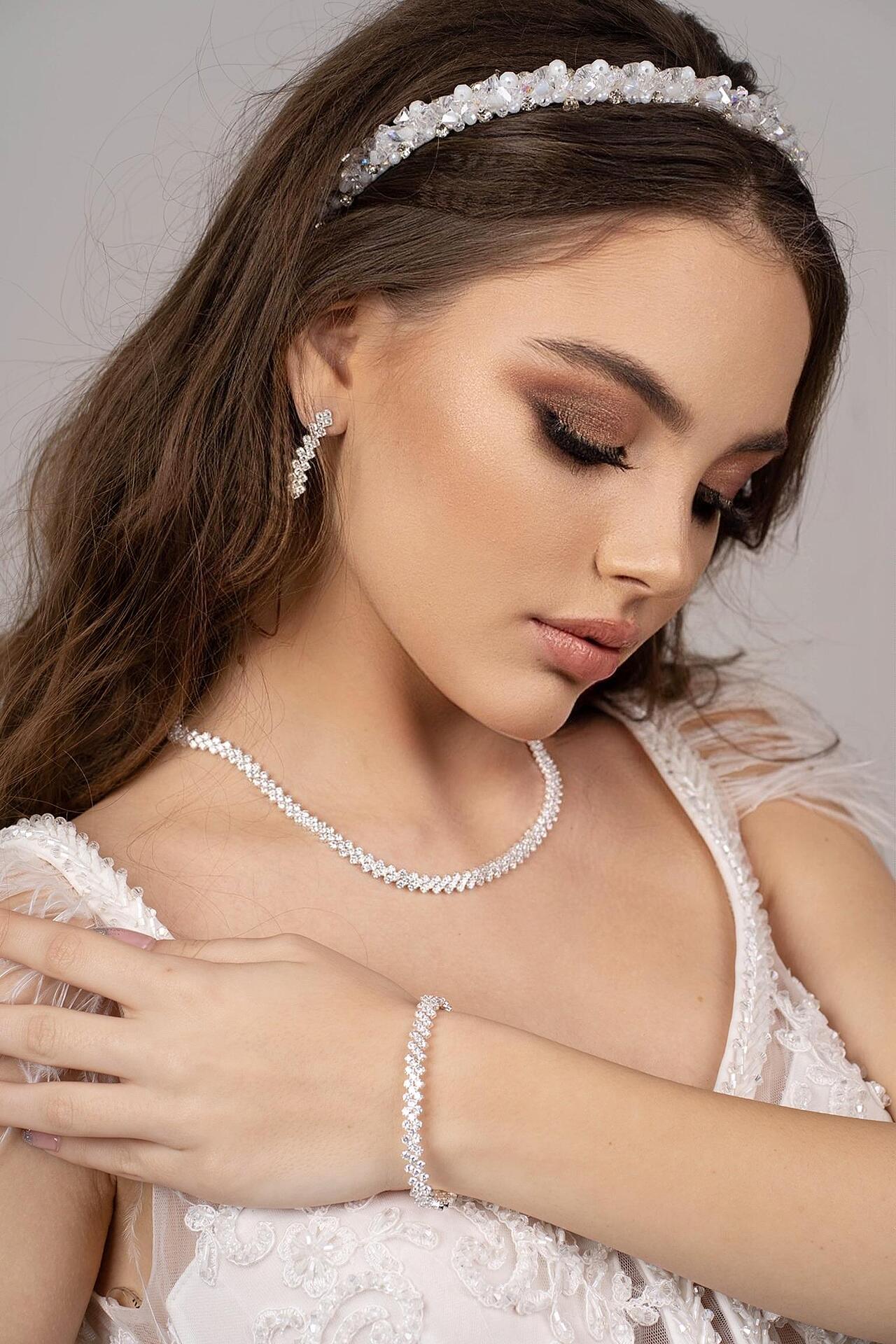Тънка, нежна диадема с чудно сияйни мъниста и кристали. Подходяща за вашият сватбен ден както и за други официални събития и визии. Лека, удобна и практична.