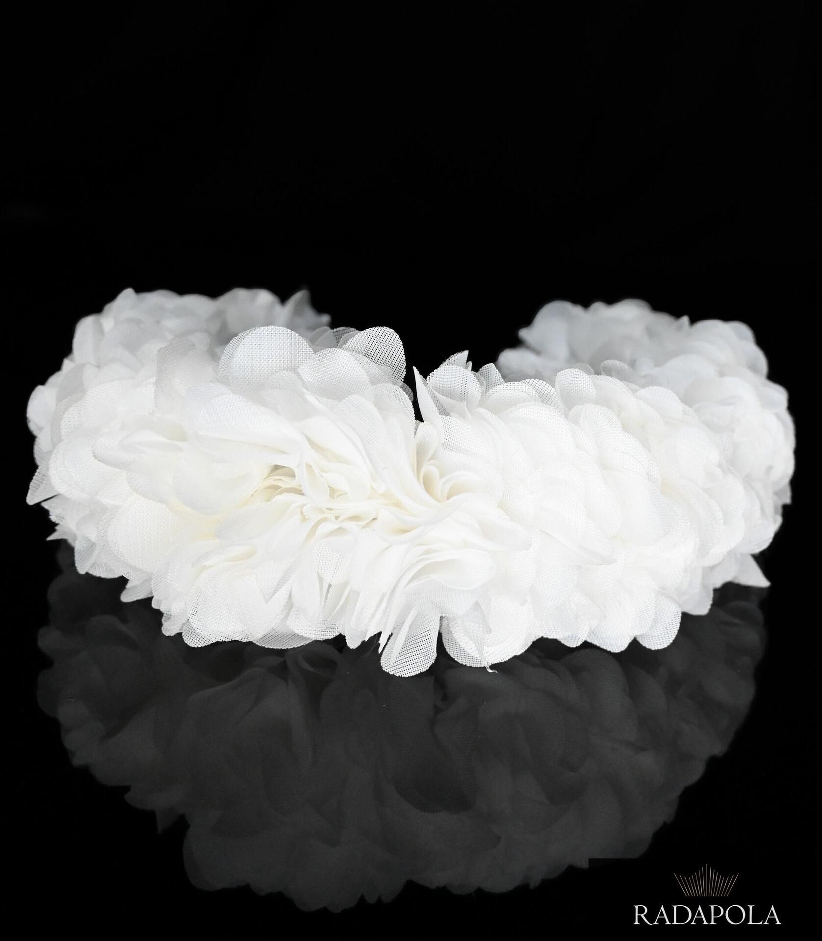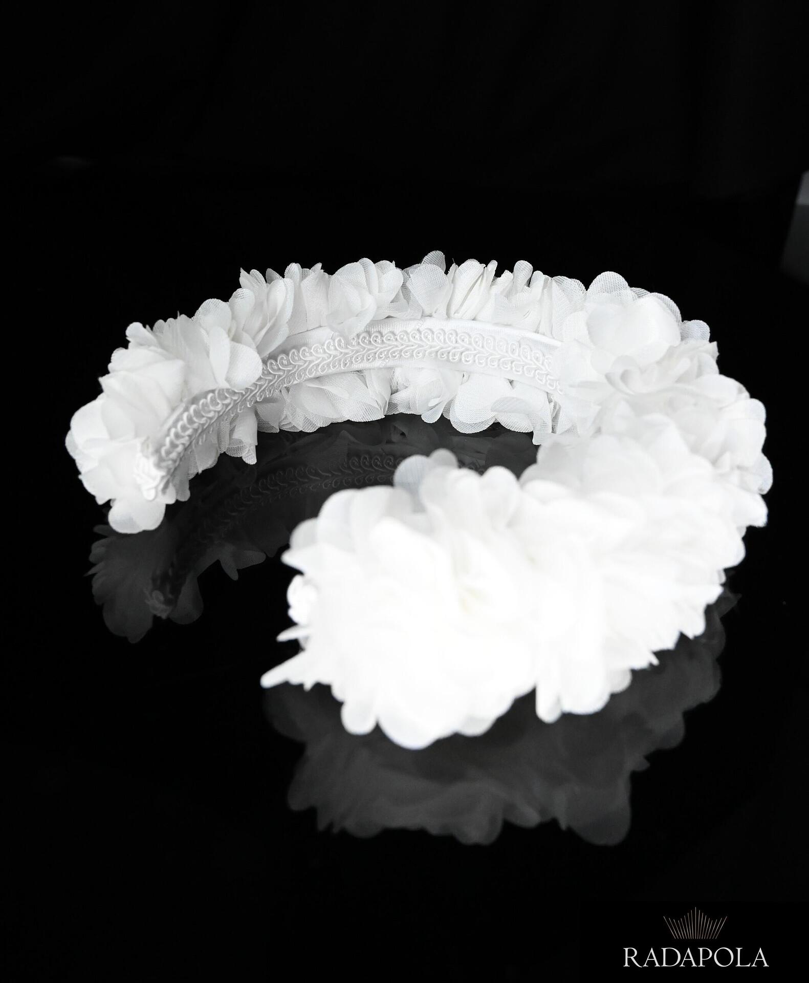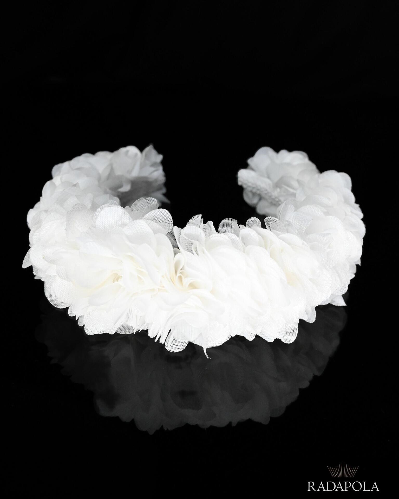 Обемна диадема с цветя от коприна. Невероятно нежна и не се усеща на главата. Подходяща е за вашия специален ден. Изработена е от висококачествени материали.