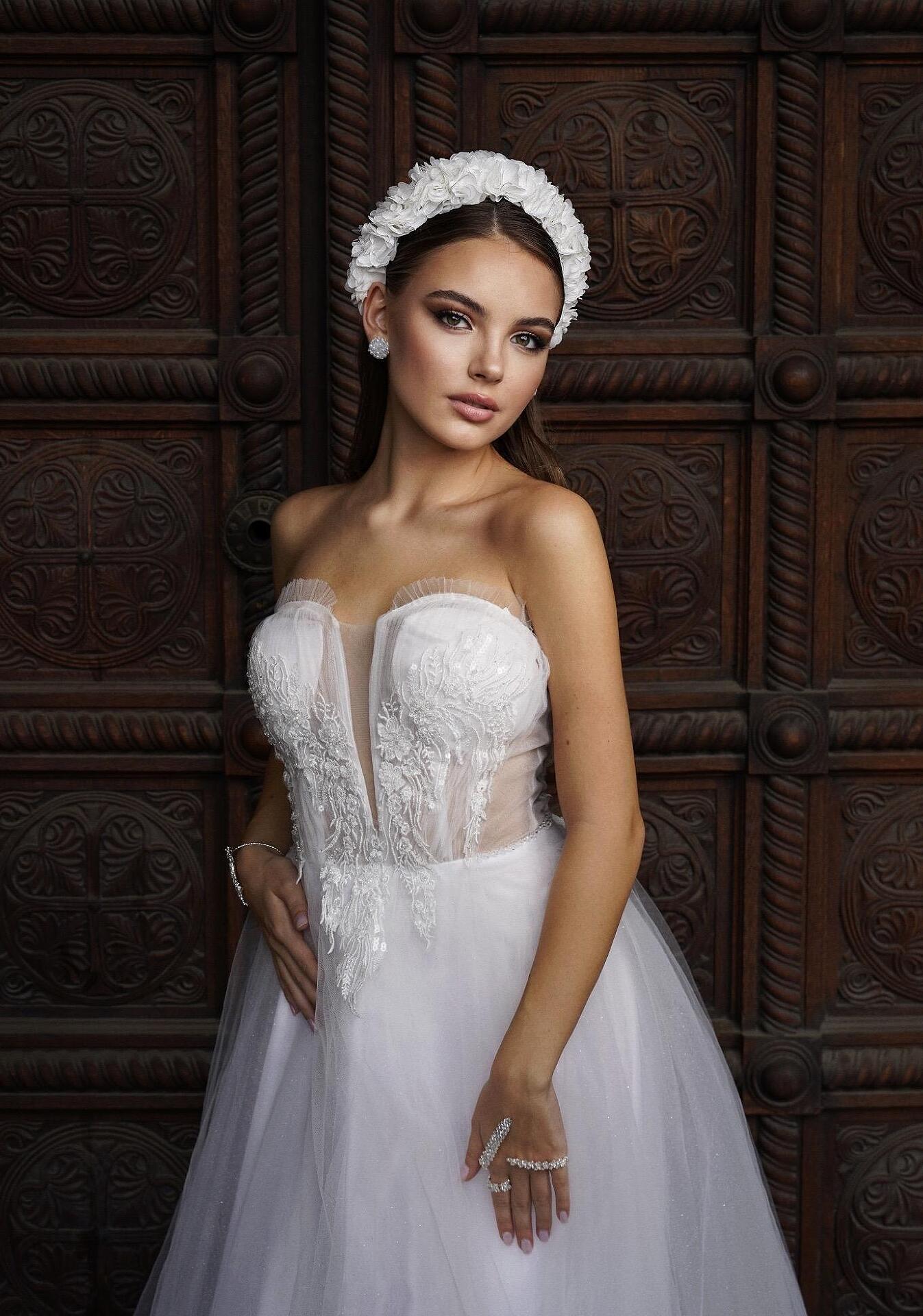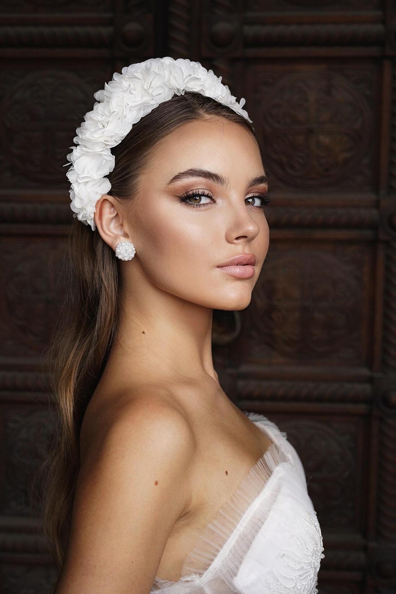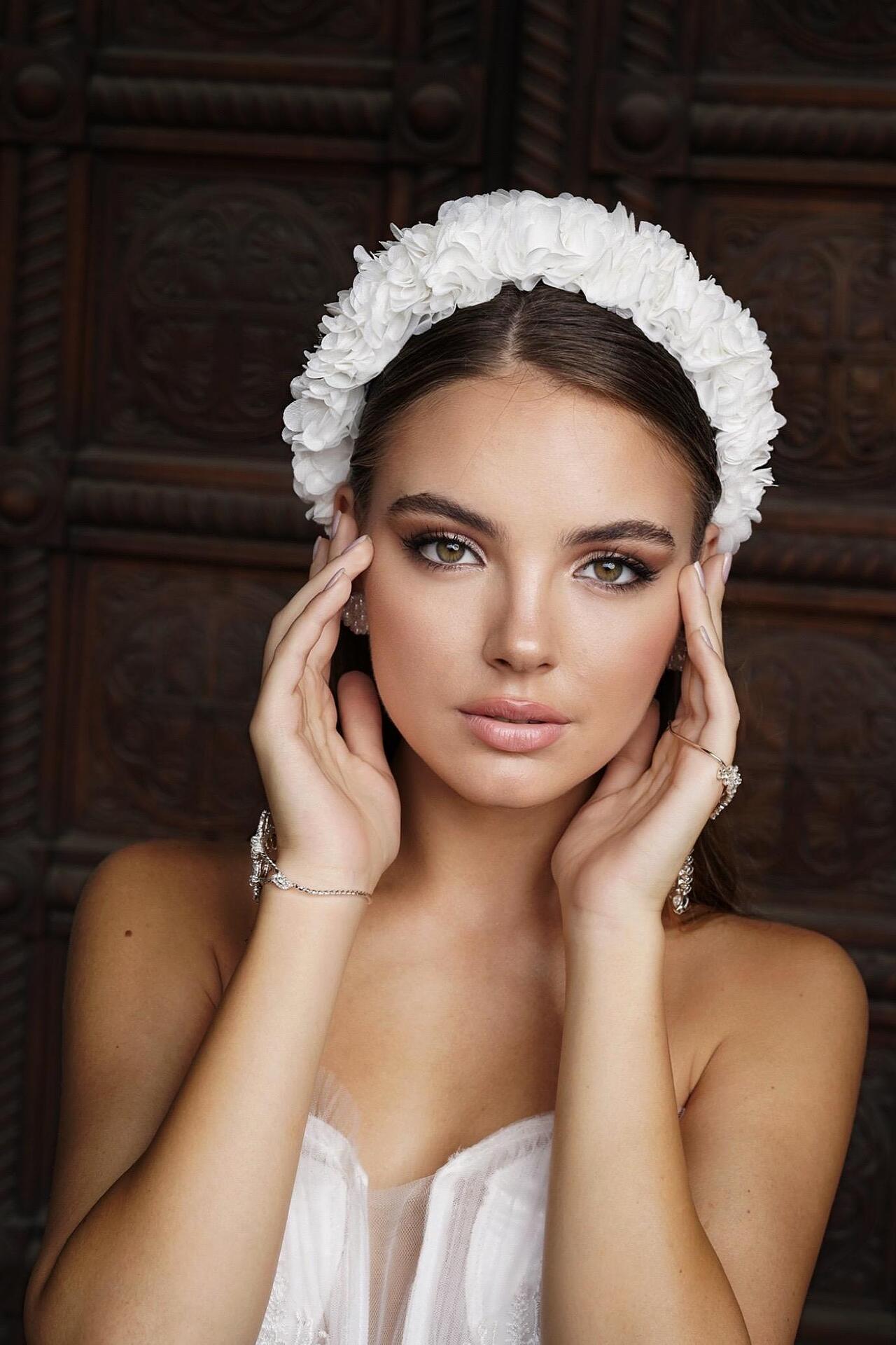 Обемна диадема с цветя от коприна. Невероятно нежна и не се усеща на главата. Подходяща е за вашия специален ден. Изработена е от висококачествени материали.