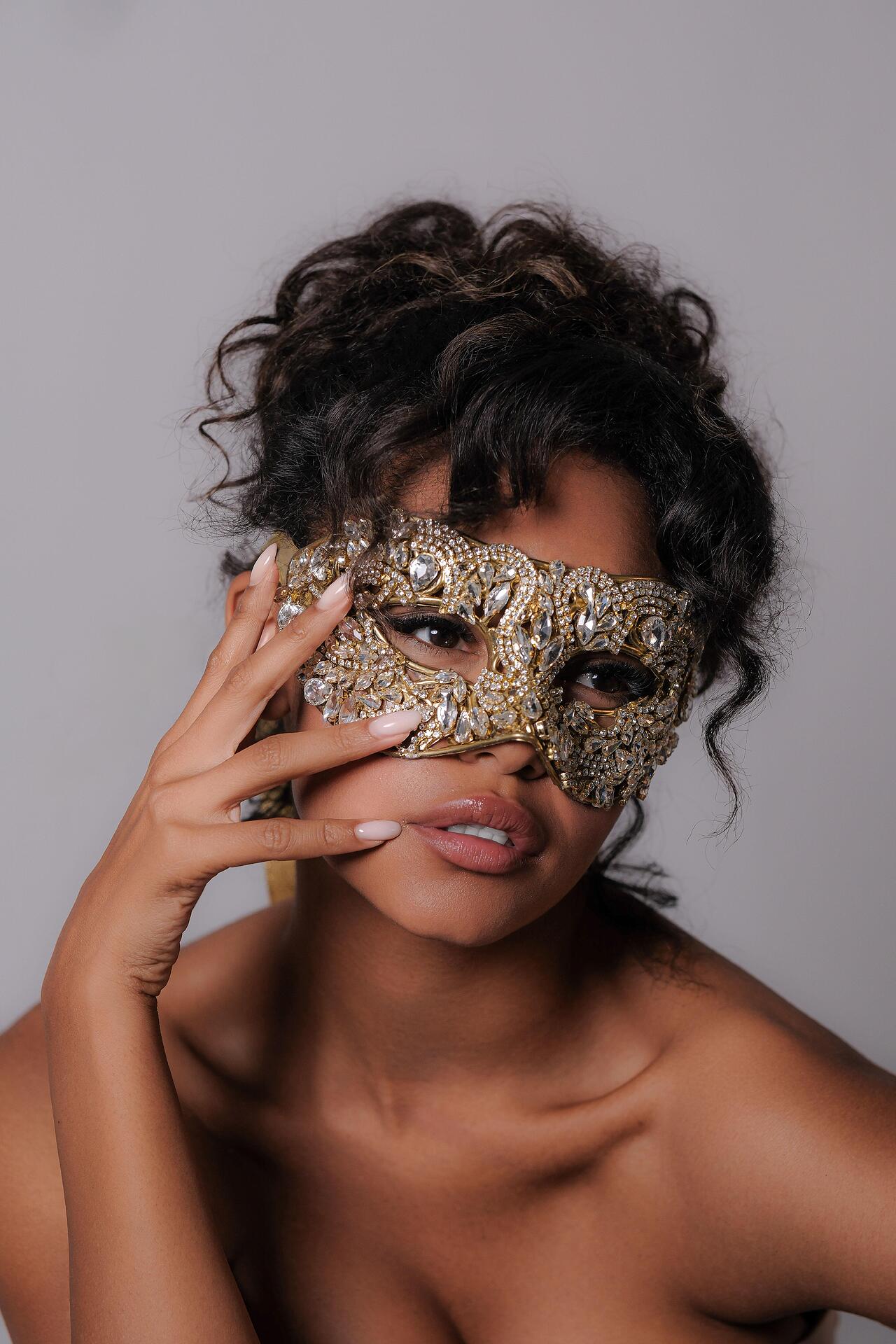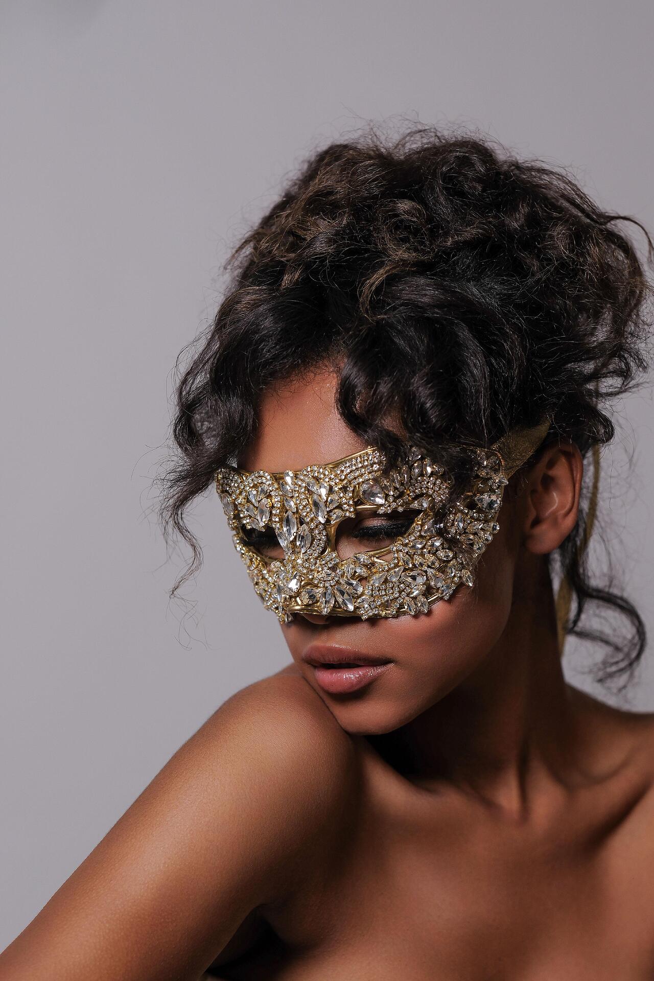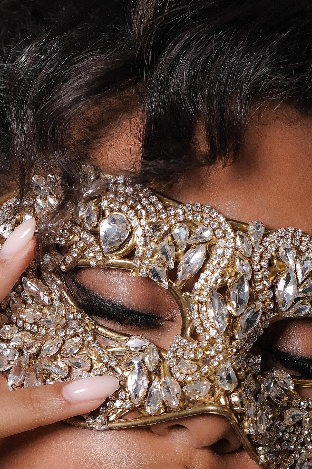 Златиста маска, ръчно декорирана с камъни: Luxy