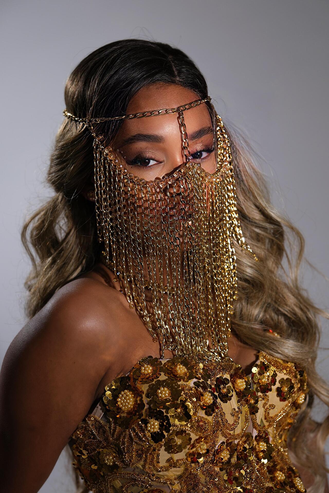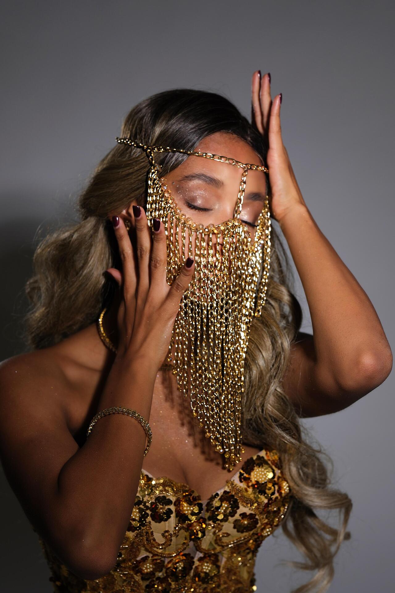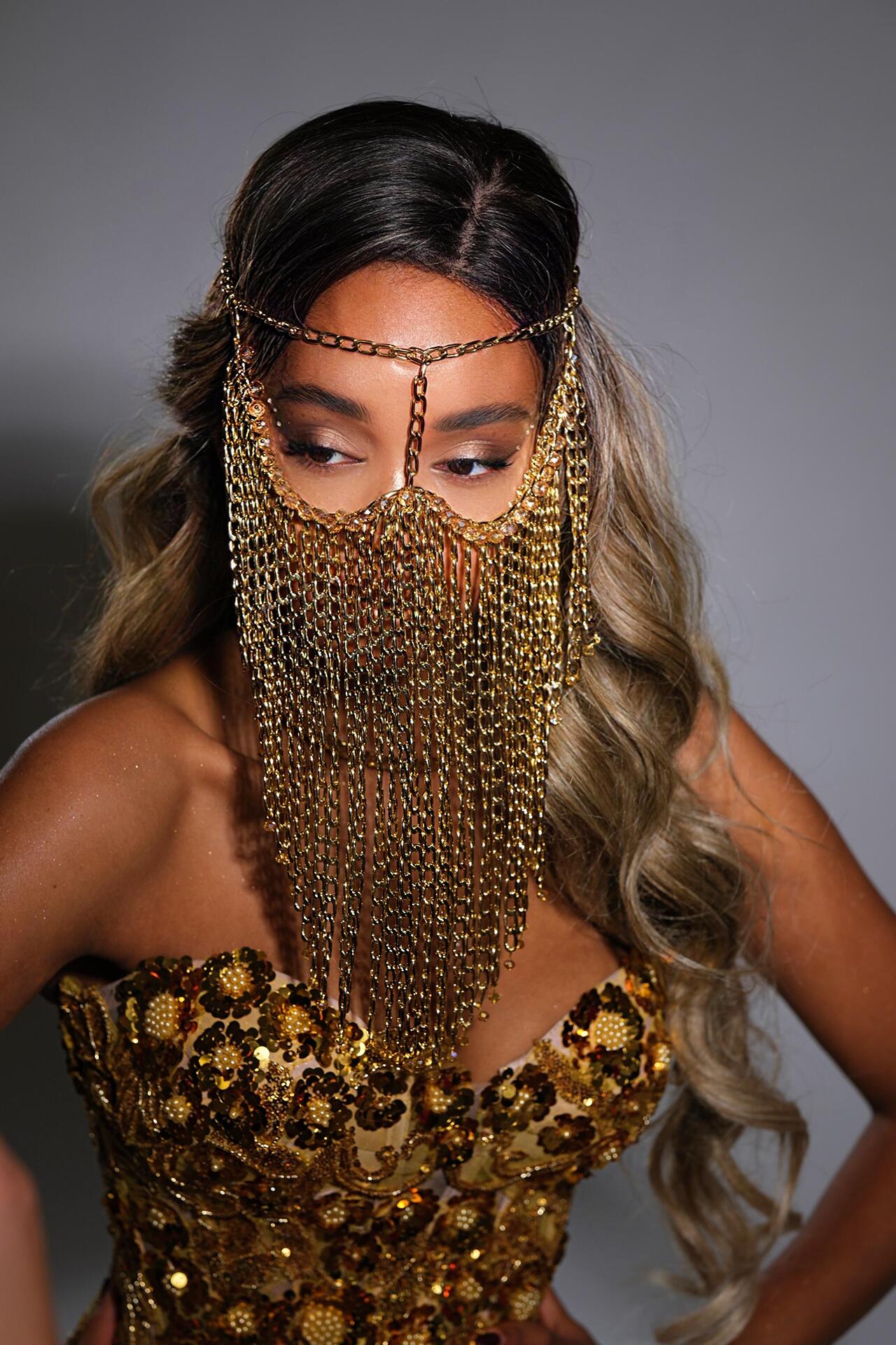 Златиста сценична маска от верижки и мъниста: Oriental Gold