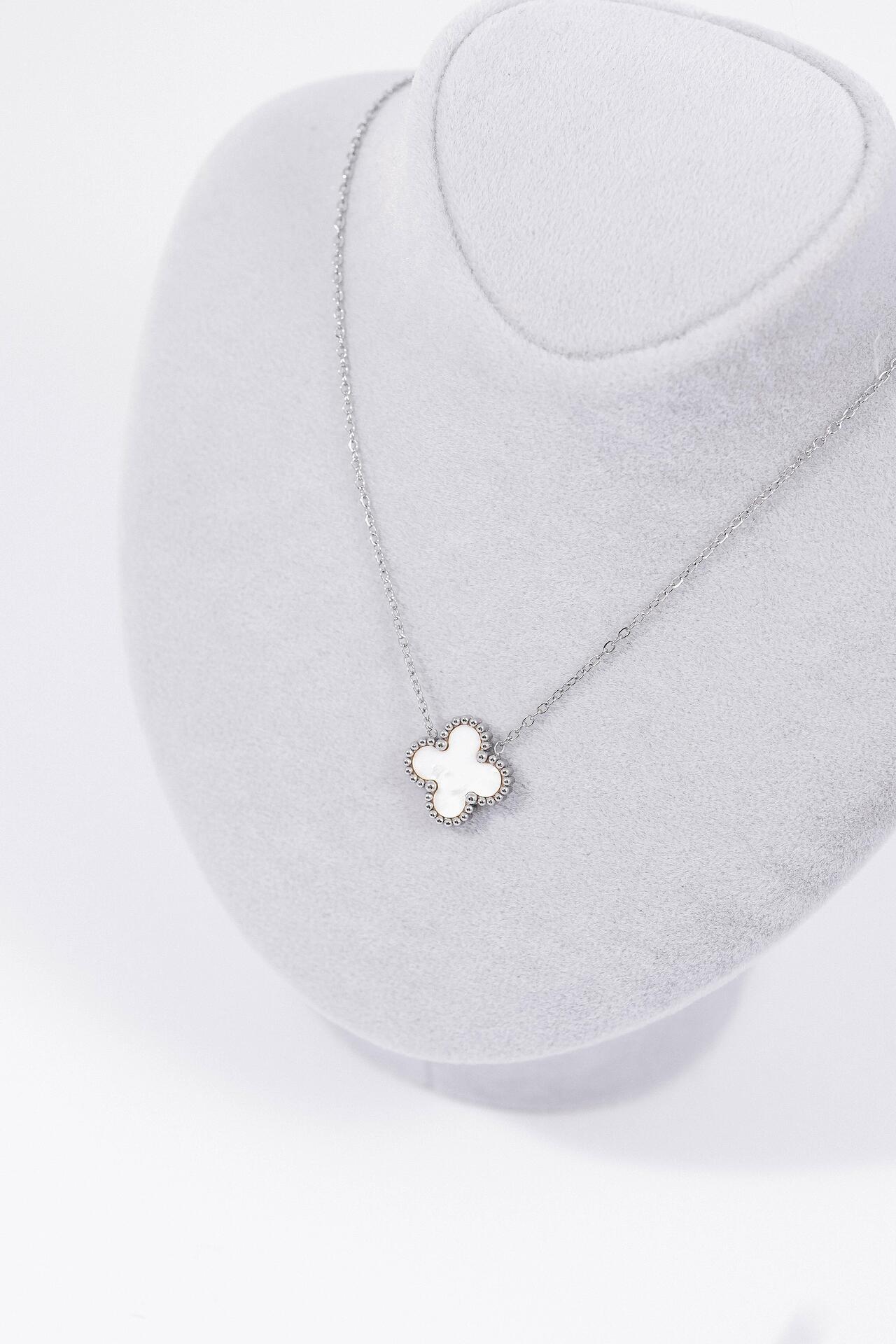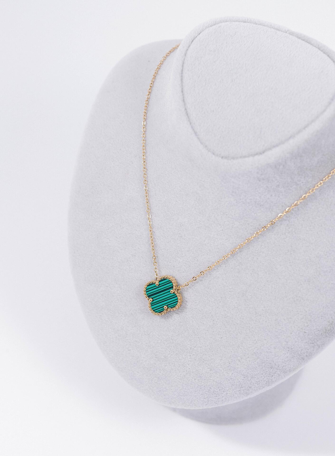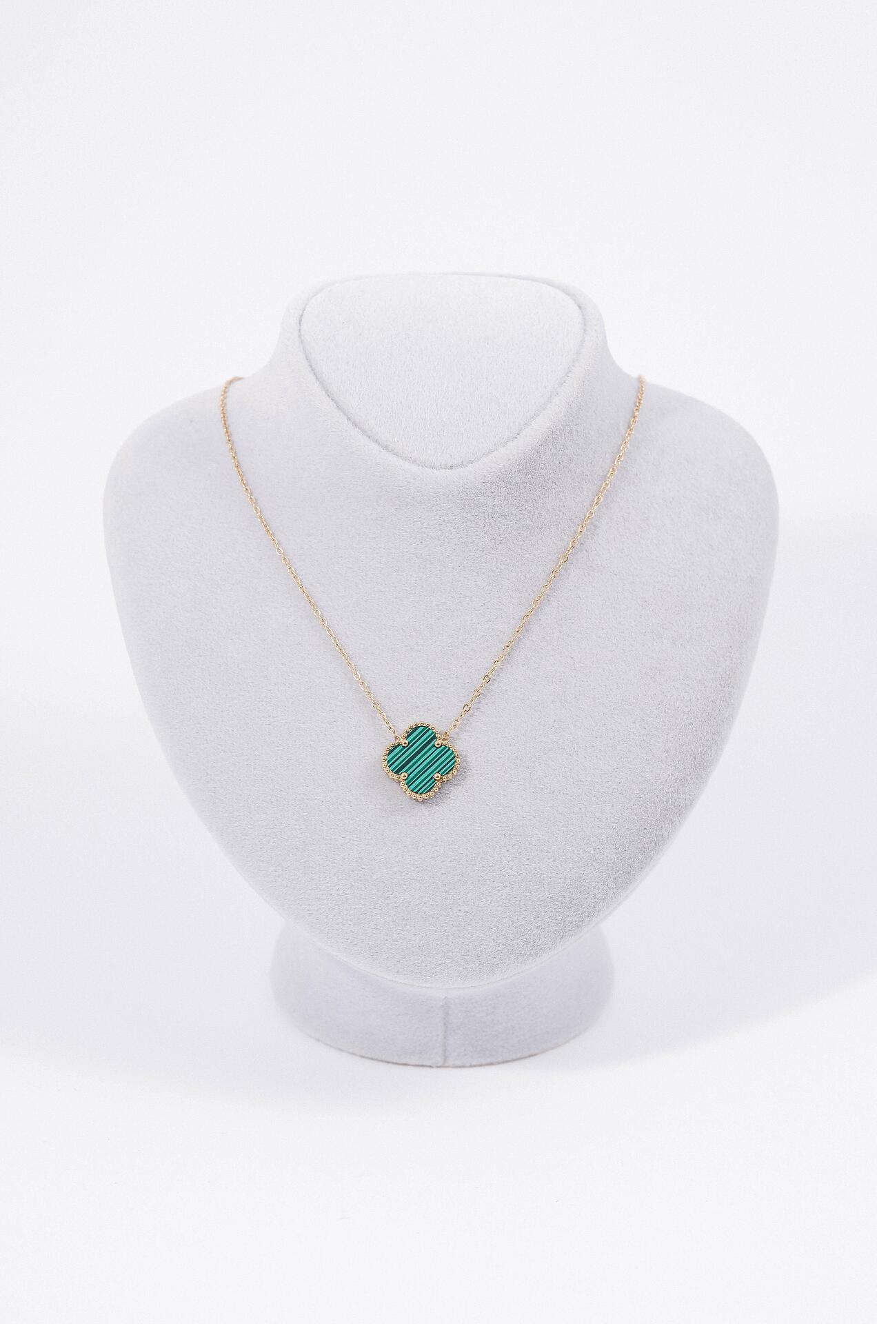 Колие с висулка във формата на детелинка, което е запълнено с цвят и е обиколено от малки релефни топченца. Подходящо както за ежедневието, така и за официални поводи.