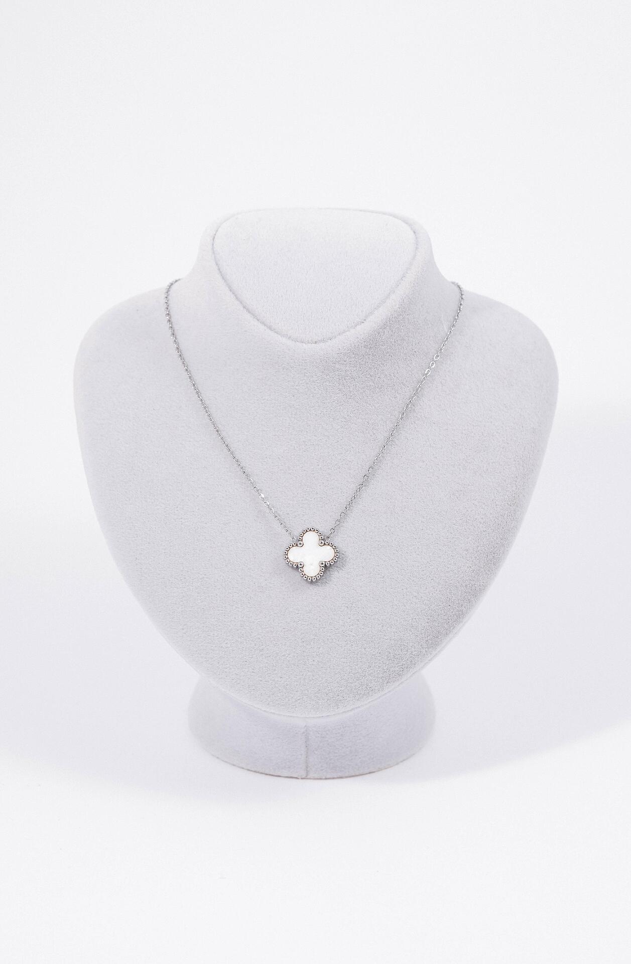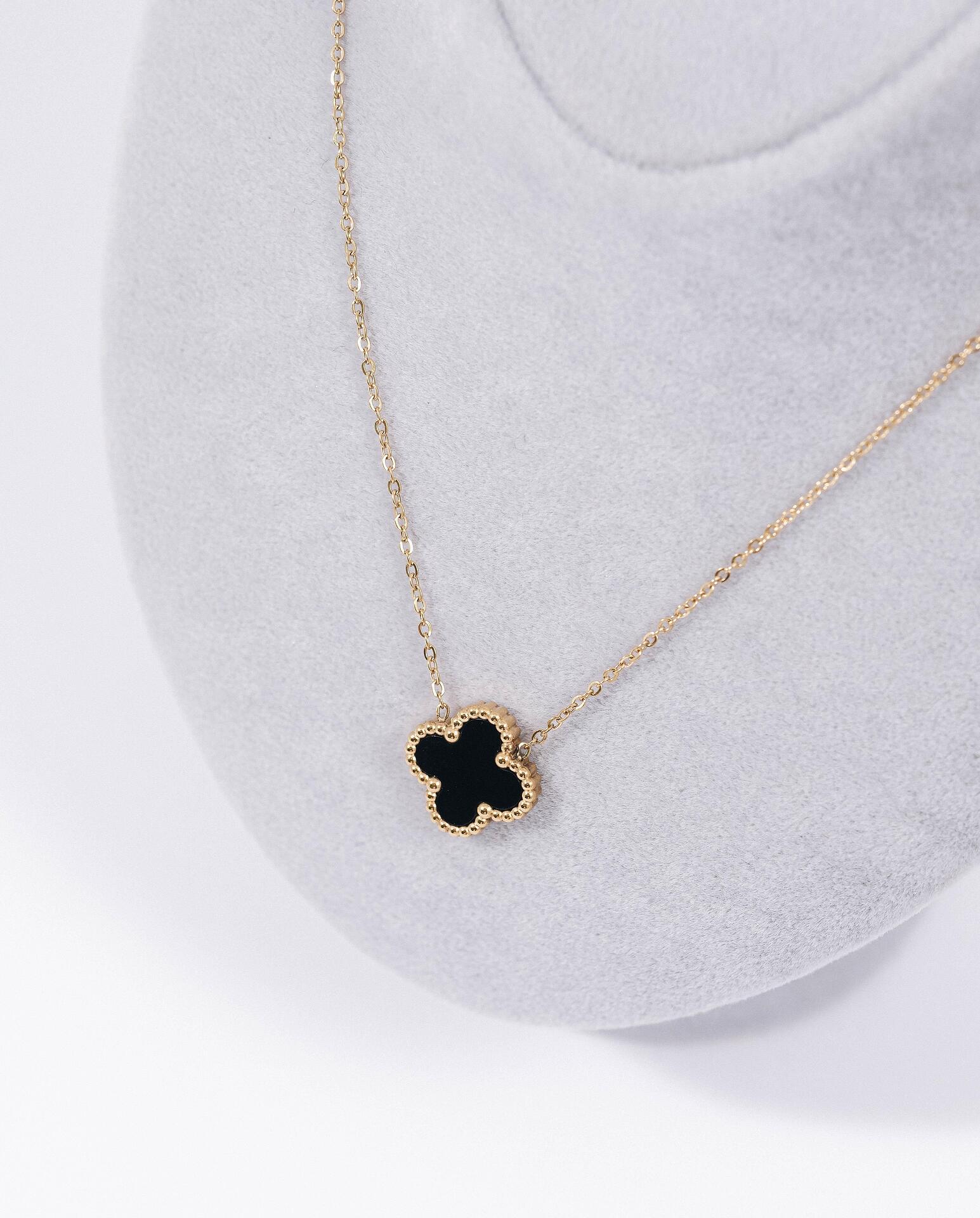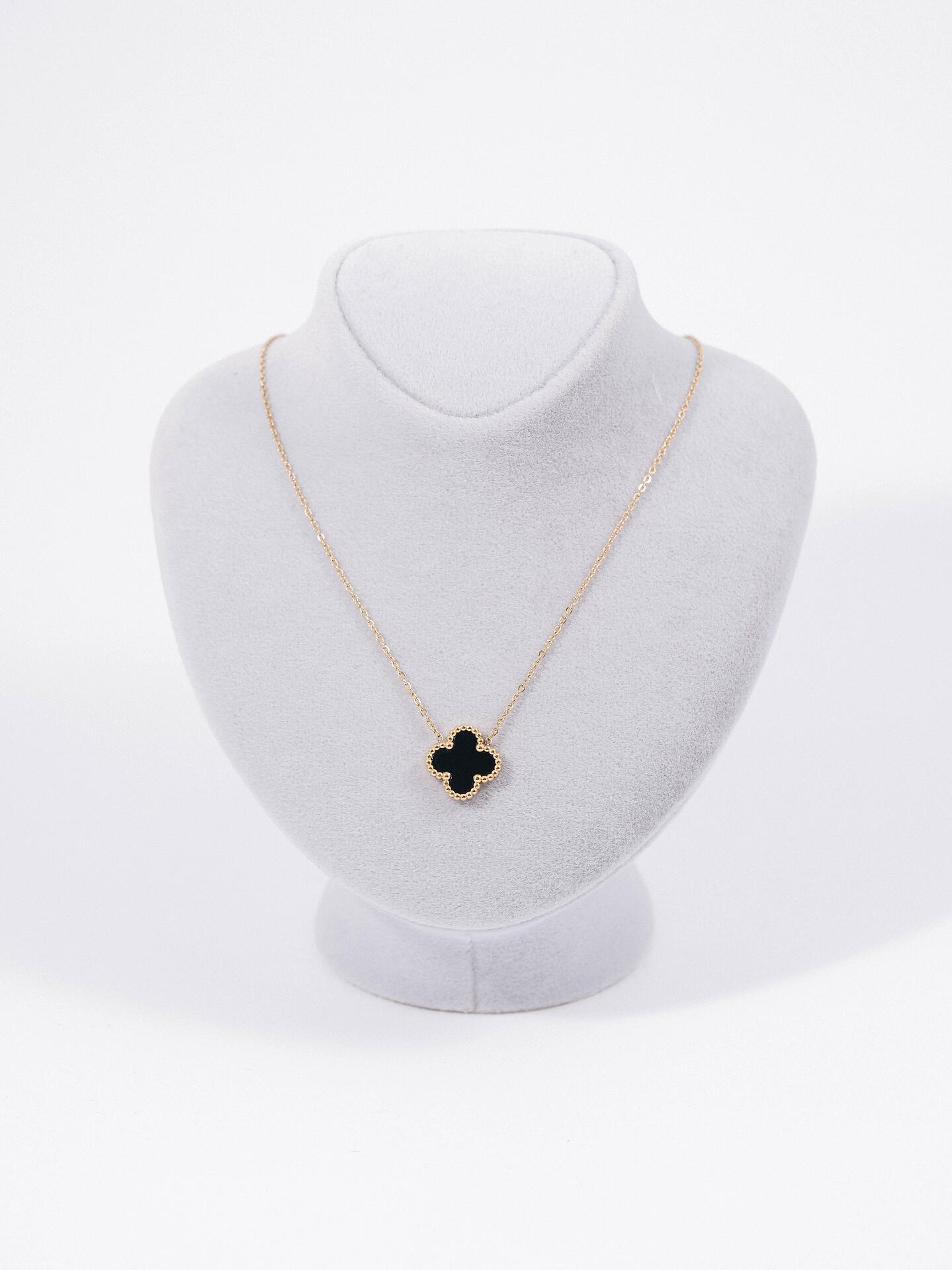 Колие с висулка във формата на детелинка, което е запълнено с цвят и е обиколено от малки релефни топченца. Подходящо както за ежедневието, така и за официални поводи.