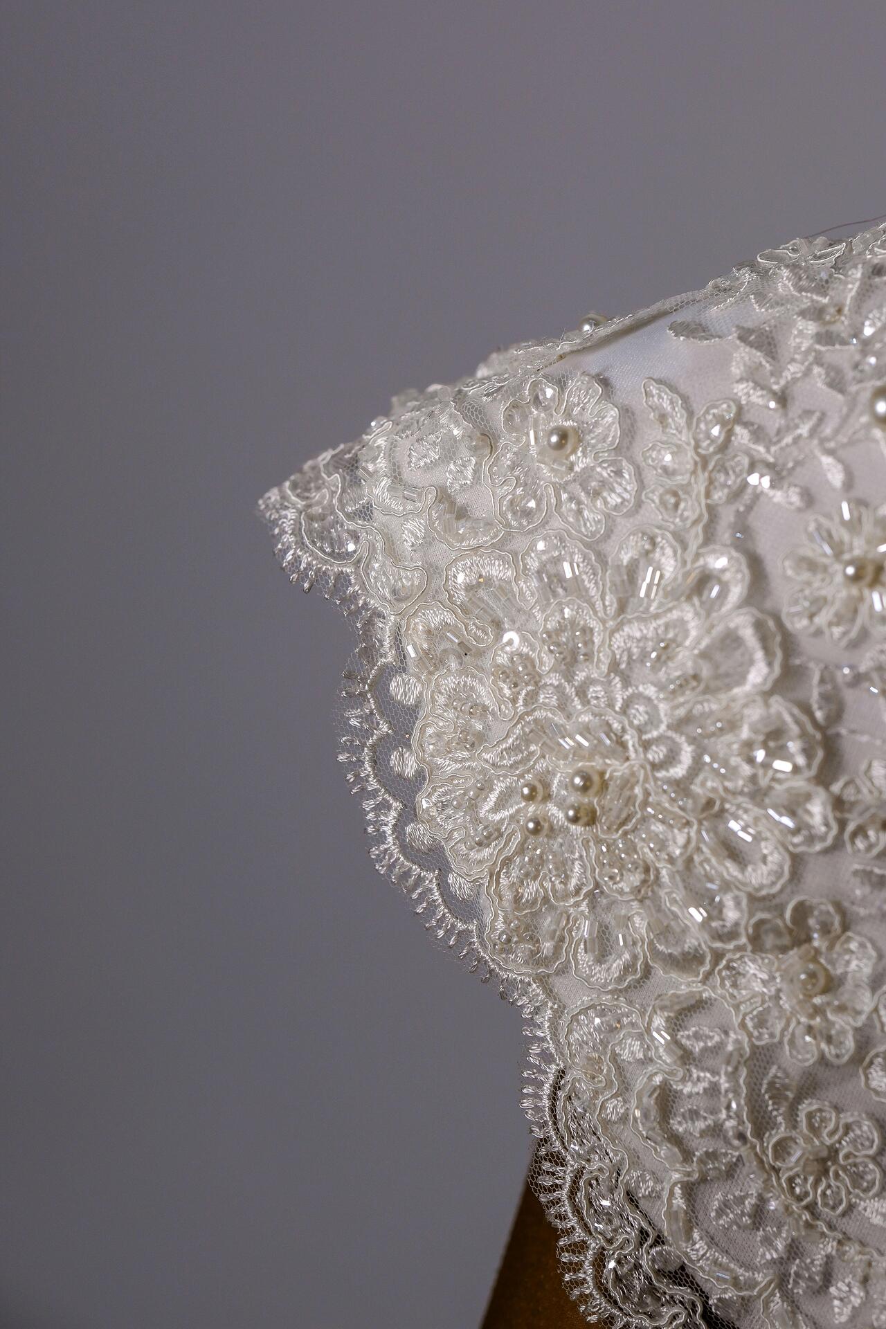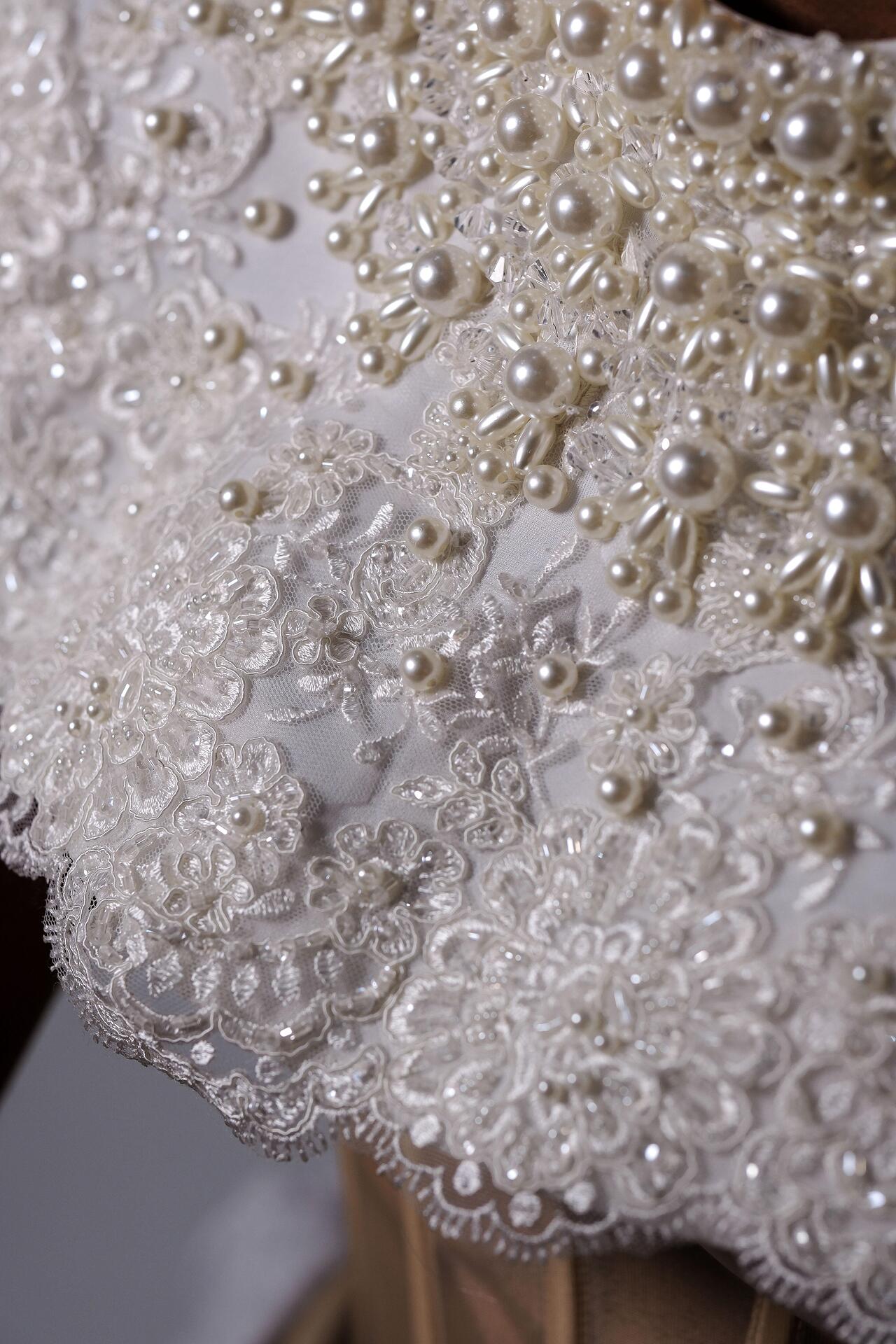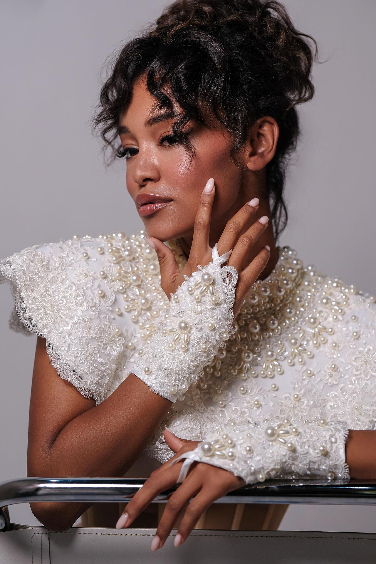 За тези, които знаят, че са по-различни от тълпата. За стилните и изискани дами. Ръчно изработени перелина и ръкавици с основа от дантела и декорирани с перли в различни размери. Перелината се закопчава отзад на врата. Ръкавиците покриват китката и горната част на дланта.