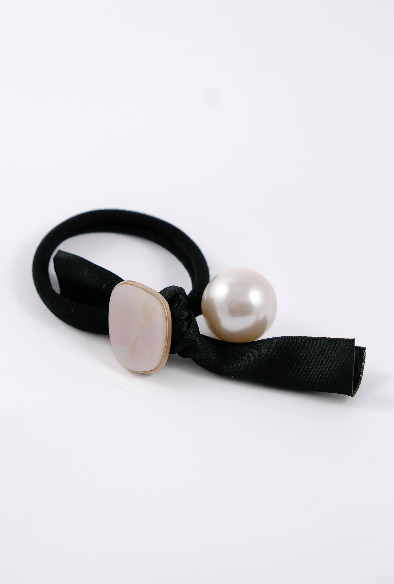 Ластик за коса с детайли от масивен камък и голяма бяла перла. Универсален размер.