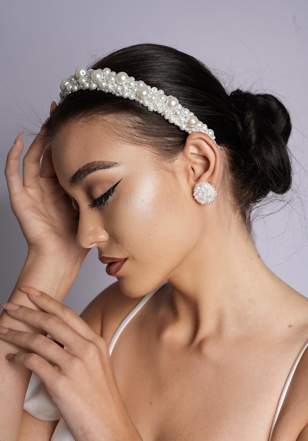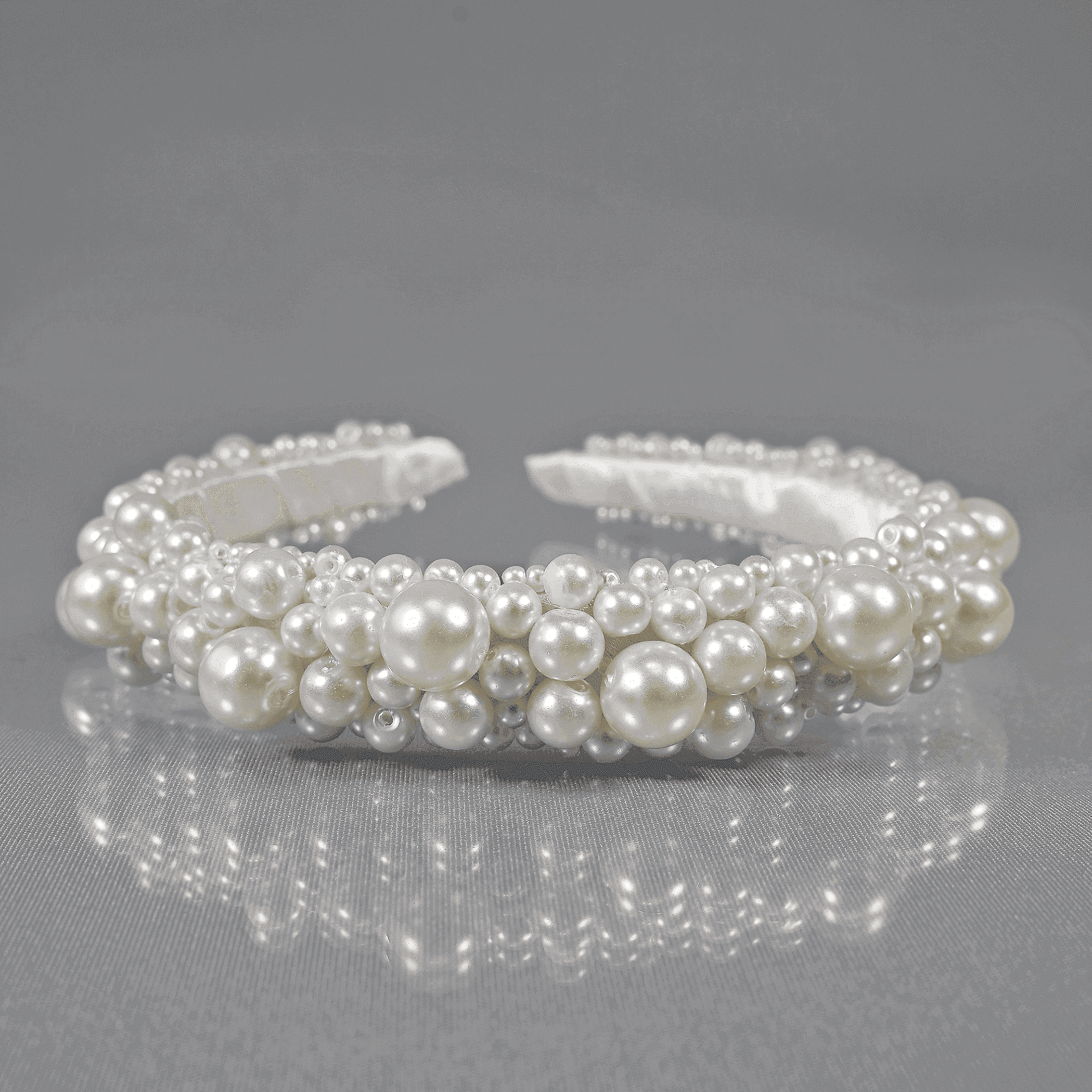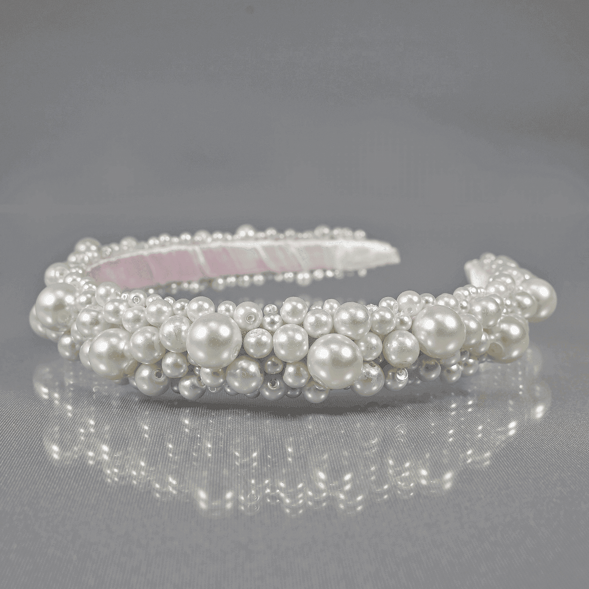 Диадема нашита цялата с перли. Нежна и лека. Използвана е твърда корда, която държи здраво и стегнато кристалите по основата на диадемата. Ръчно изработена от висококачествени материали. Размерът е универсален и не може да бъде регулиран.