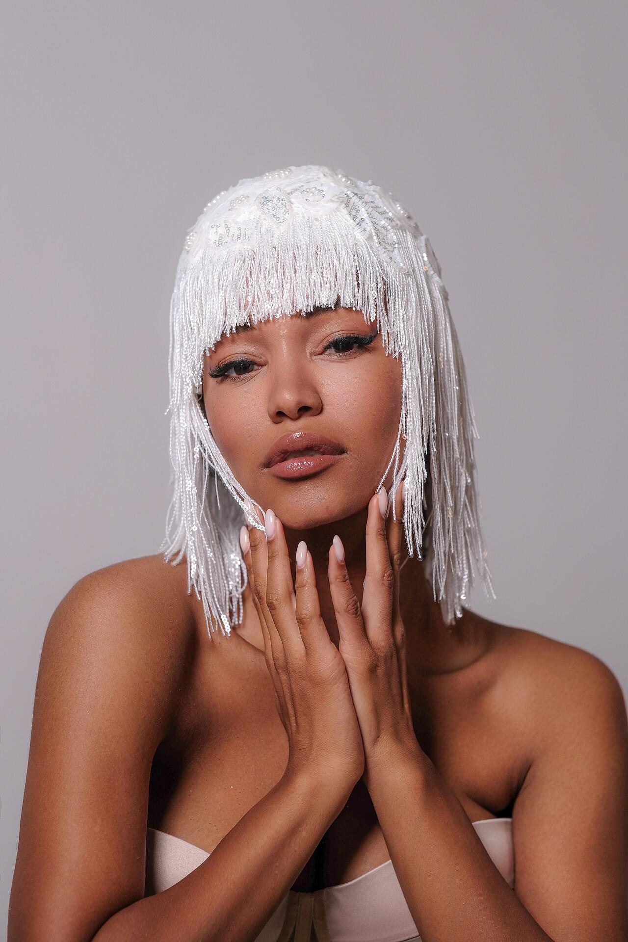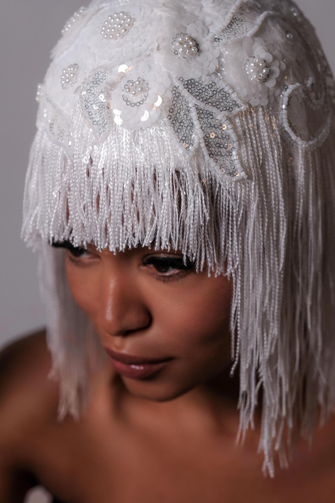 Перука от мъниста и верижки в бяло: Incredible