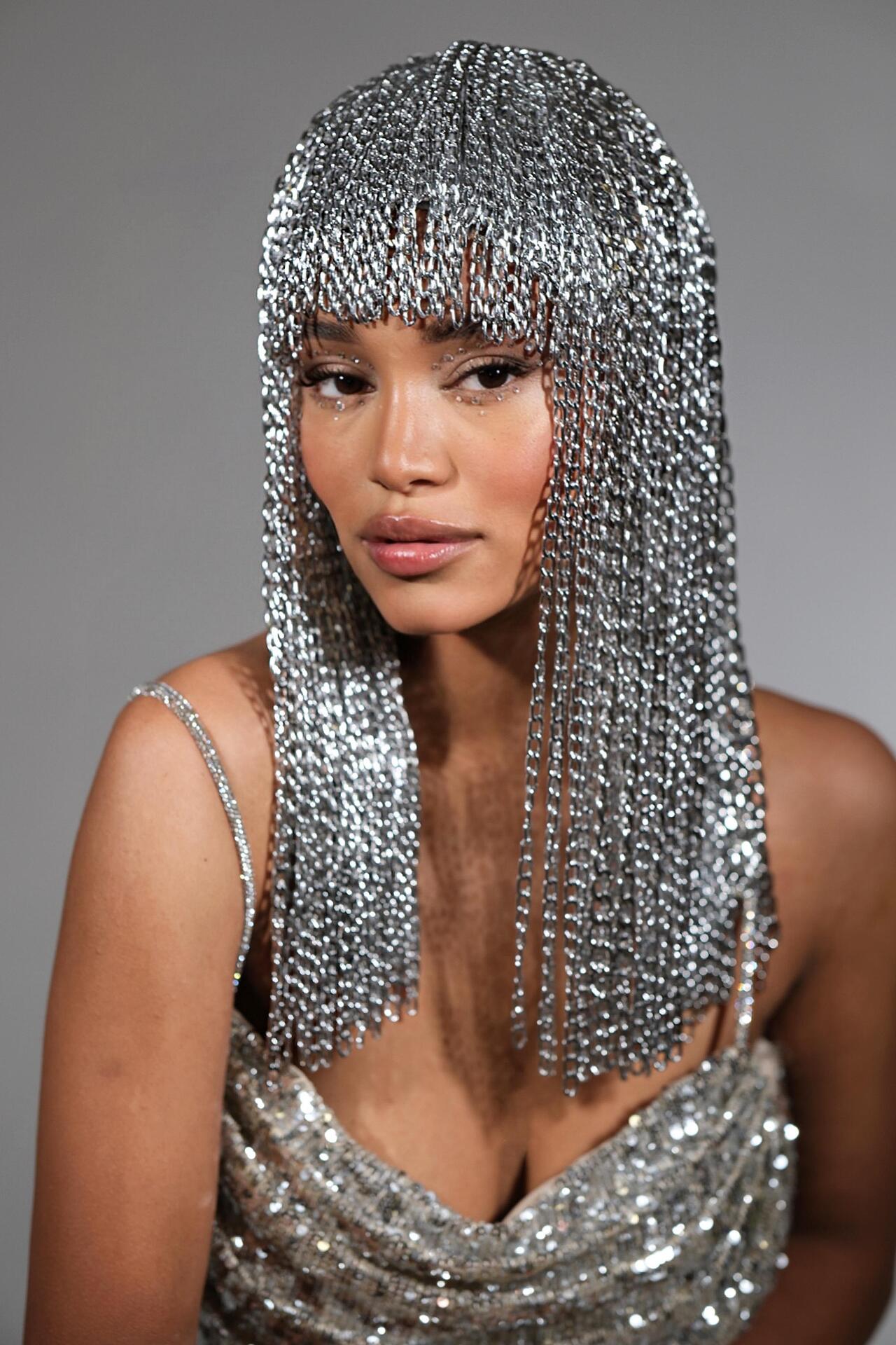 Перука със сребристи верижки