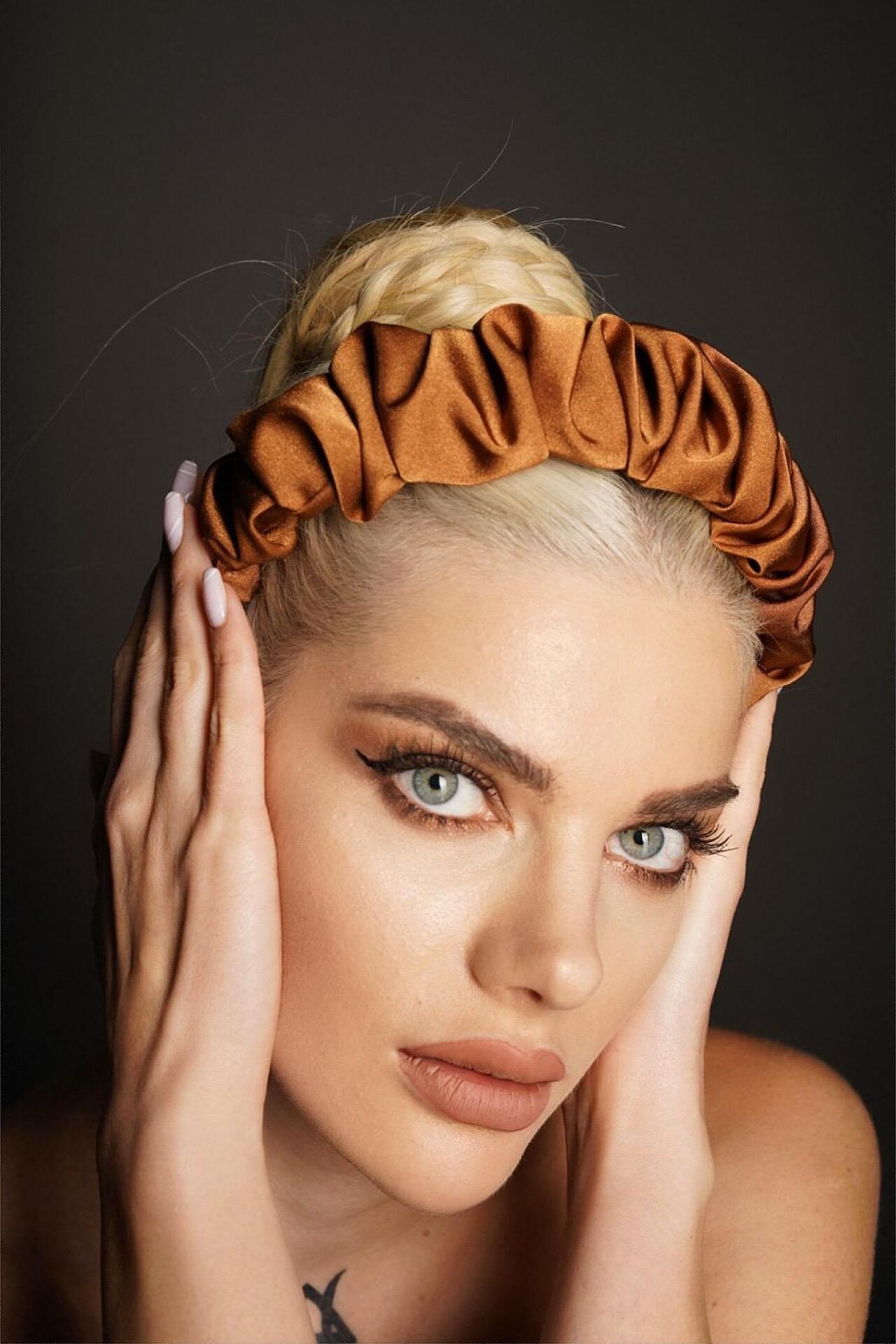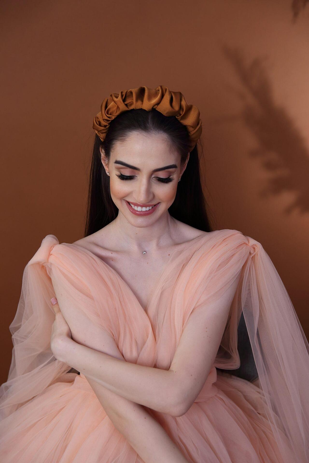 Текстилна сатенена диадема. Лека и нежна, подходяща за ежедневието. Изработена е ръчно от висококачествени материали. Размерът е универсален.