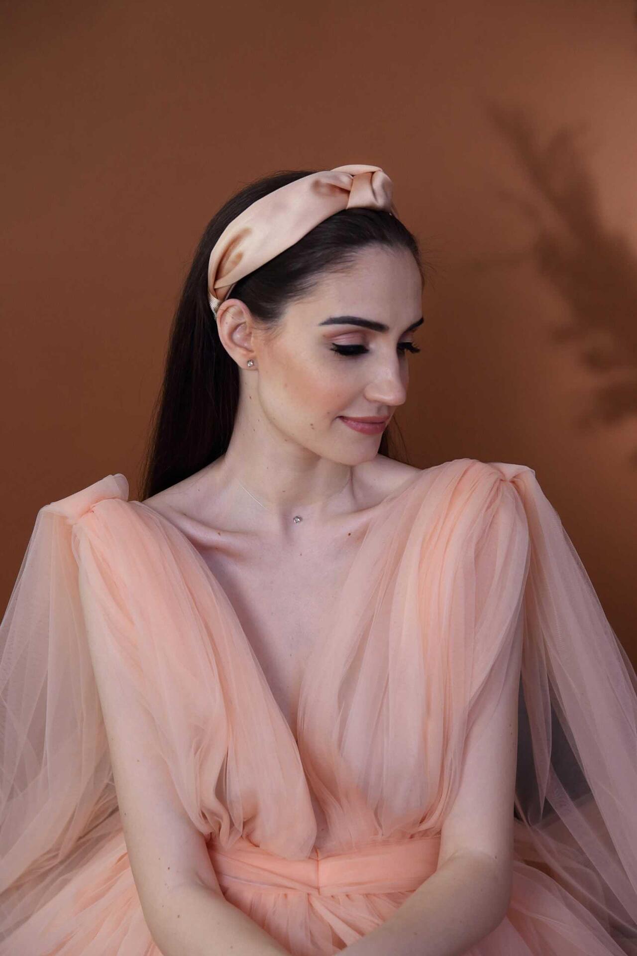 Текстилна сатенена диадема. Лека и нежна, подходяща за ежедневието. Изработена е ръчно от висококачествени материали. Размерът е универсален.