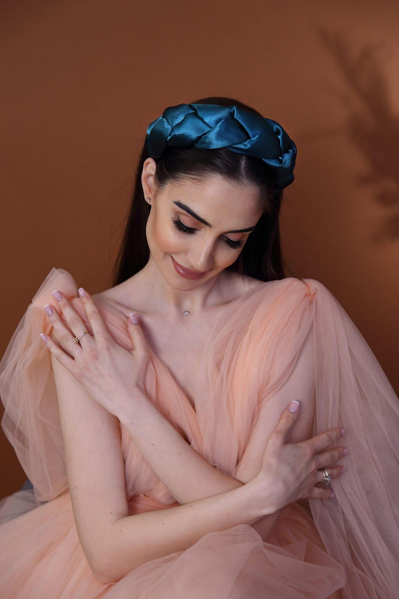 Текстилна сатенена диадема. Лека и нежна, подходяща за ежедневието. Изработена е ръчно от висококачествени материали. Размерът е универсален.