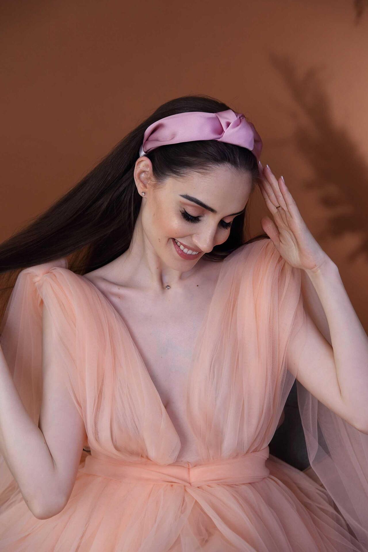 Текстилна сатенена диадема. Лека и нежна, подходяща за ежедневието. Изработена е ръчно от висококачествени материали. Размерът е универсален.