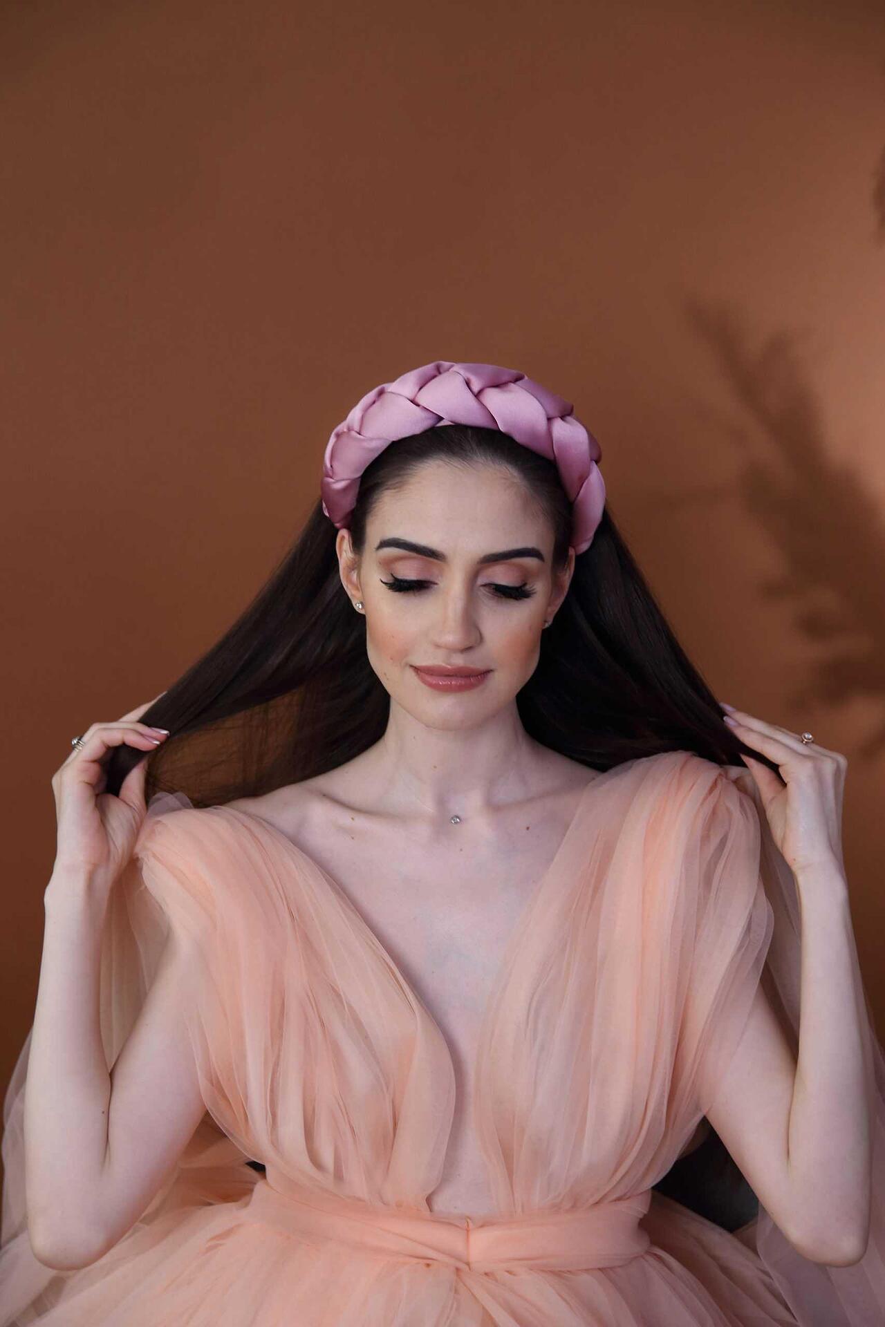 Текстилна сатенена диадема. Лека и нежна, подходяща за ежедневието. Изработена е ръчно от висококачествени материали. Размерът е универсален.