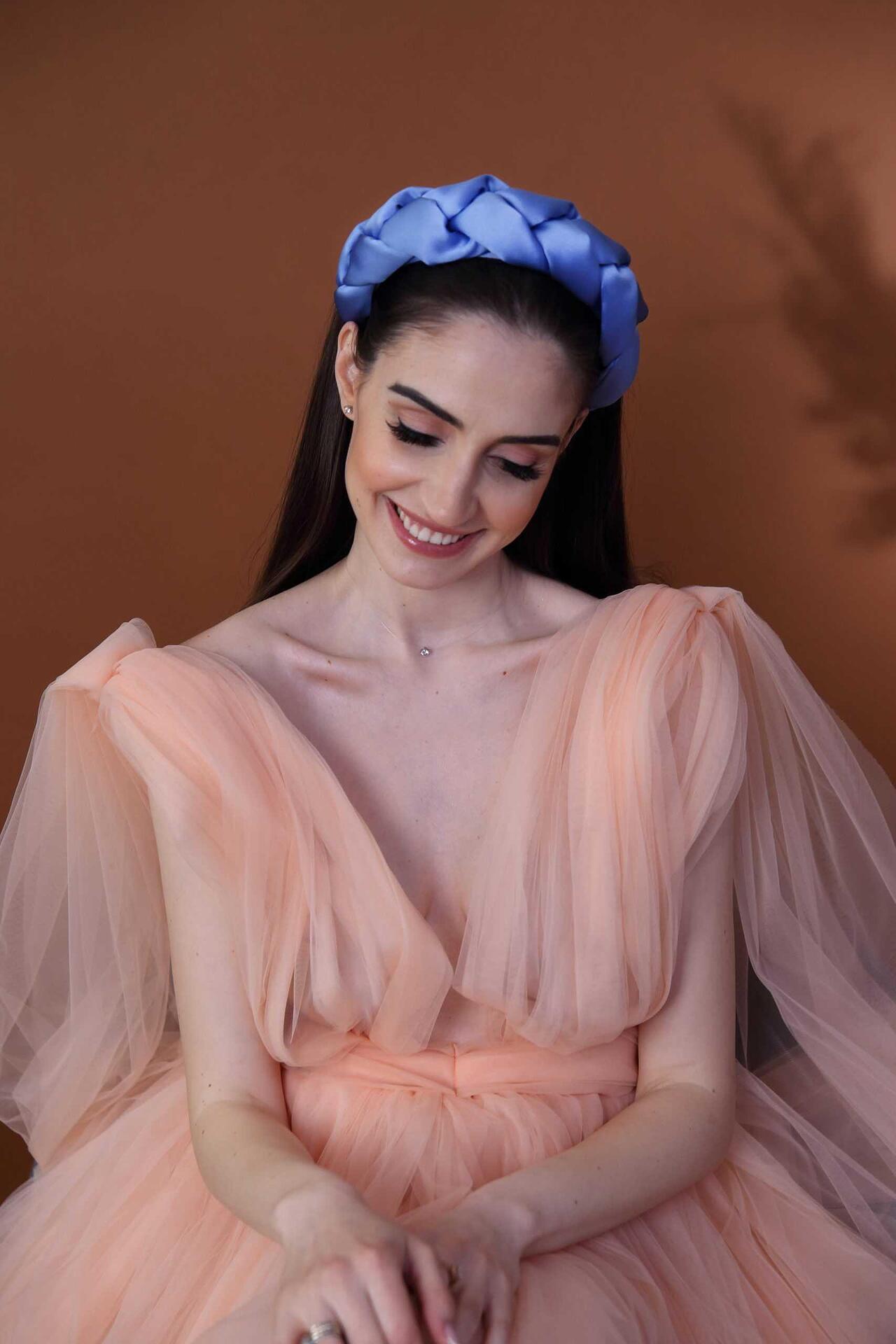 Текстилна сатенена диадема. Лека и нежна, подходяща за ежедневието. Изработена е ръчно от висококачествени материали. Размерът е универсален.