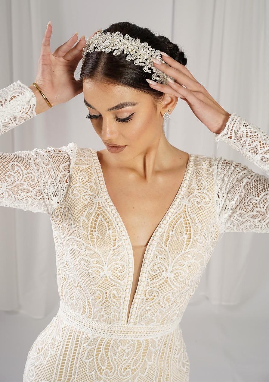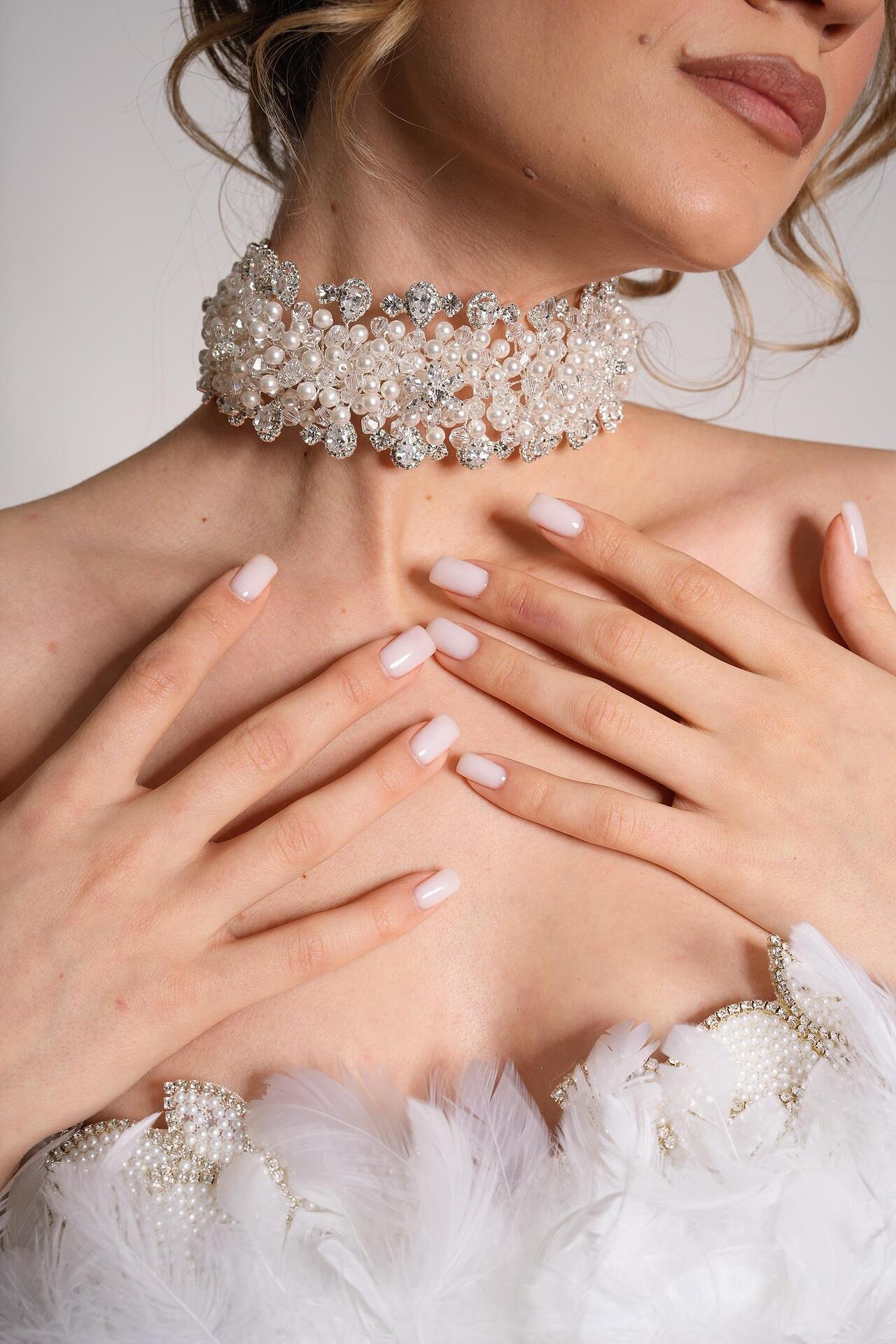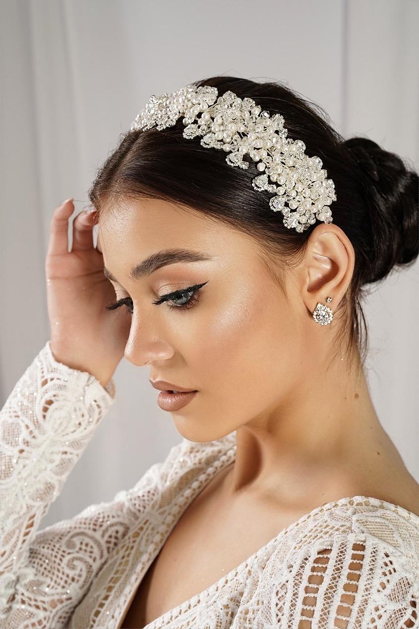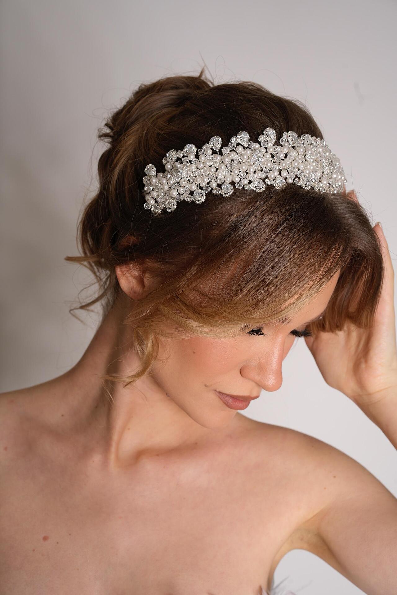 Аксесоар тип диадема с кристали цирконий, който става да бъде носен и като чокър. Ръчна изработка от висококачествени материали. Размерът може да бъде регулиран според вашата глава или врат, за да бъде удобно за всеки.