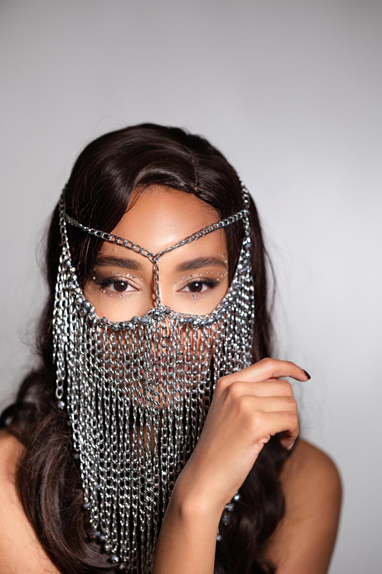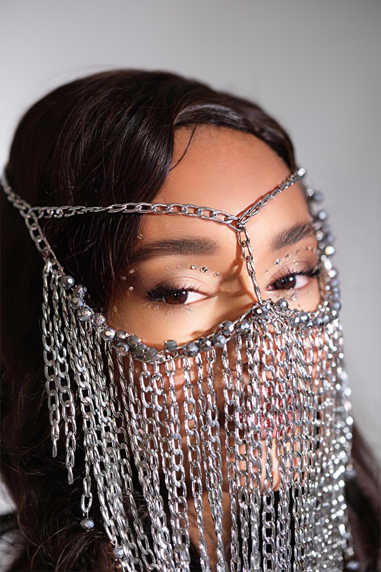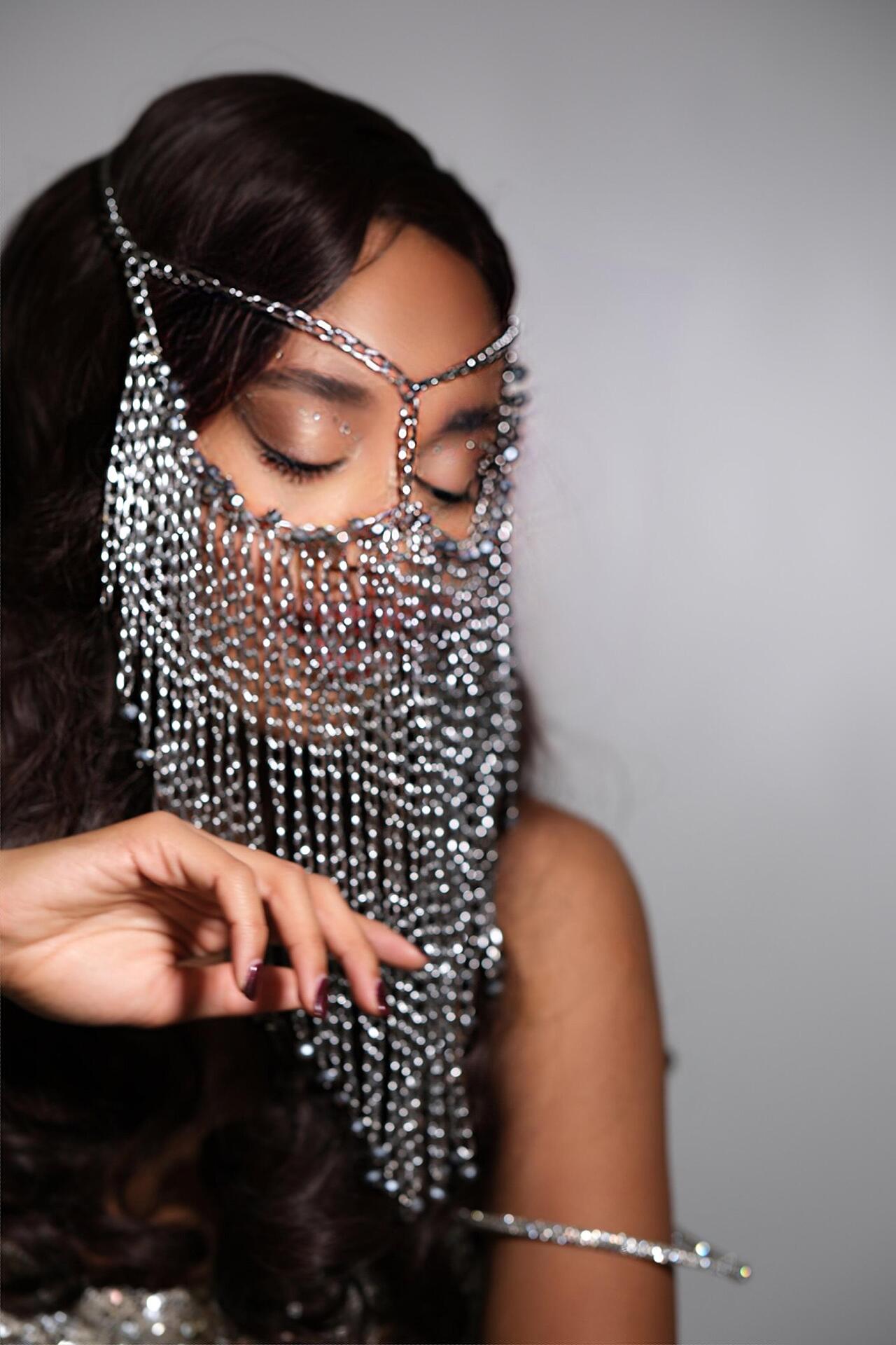 Сценична маска от верижки и сребристи мъниста: Oriental Grey