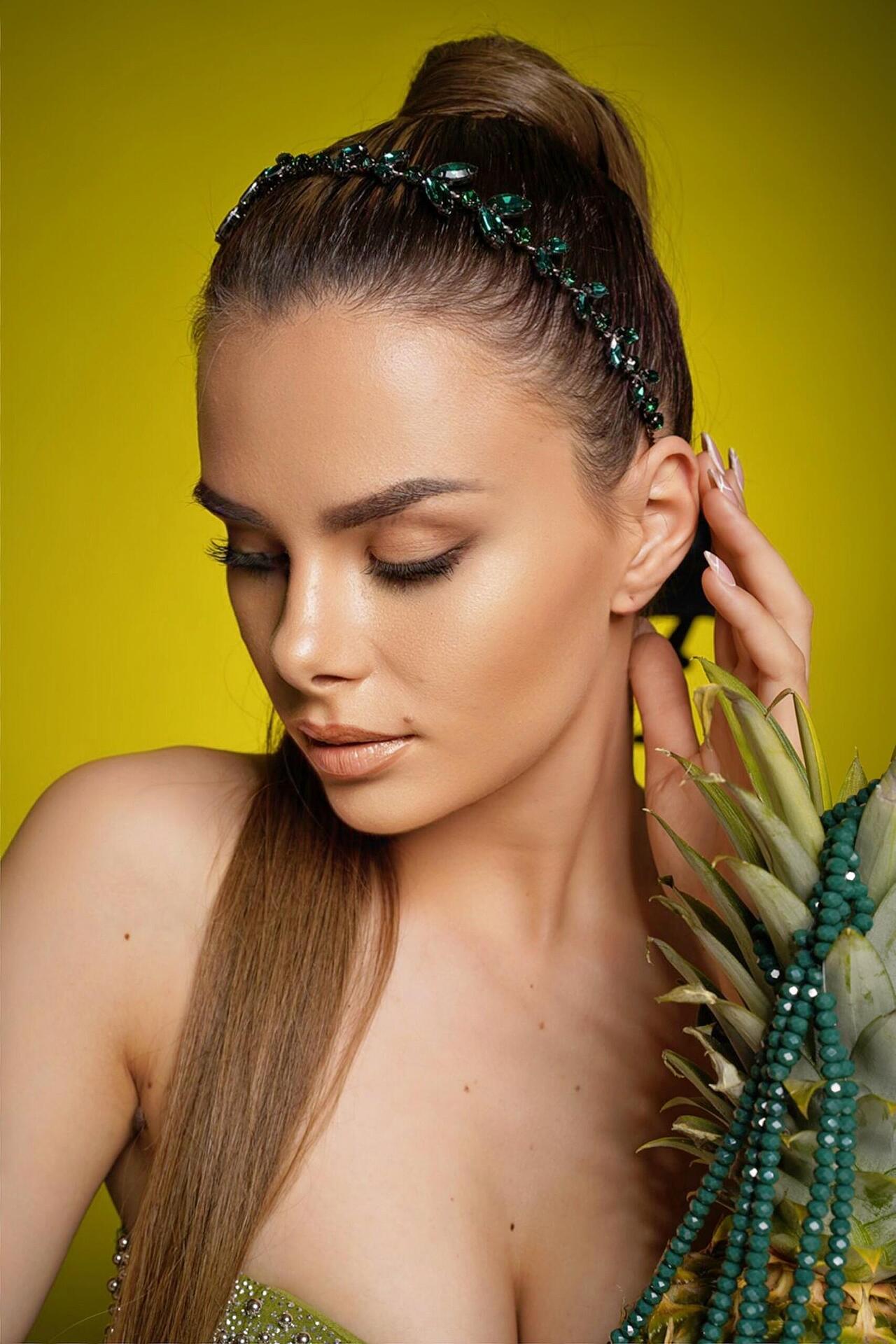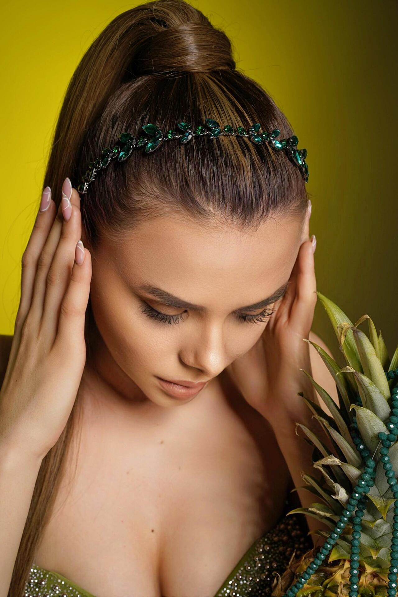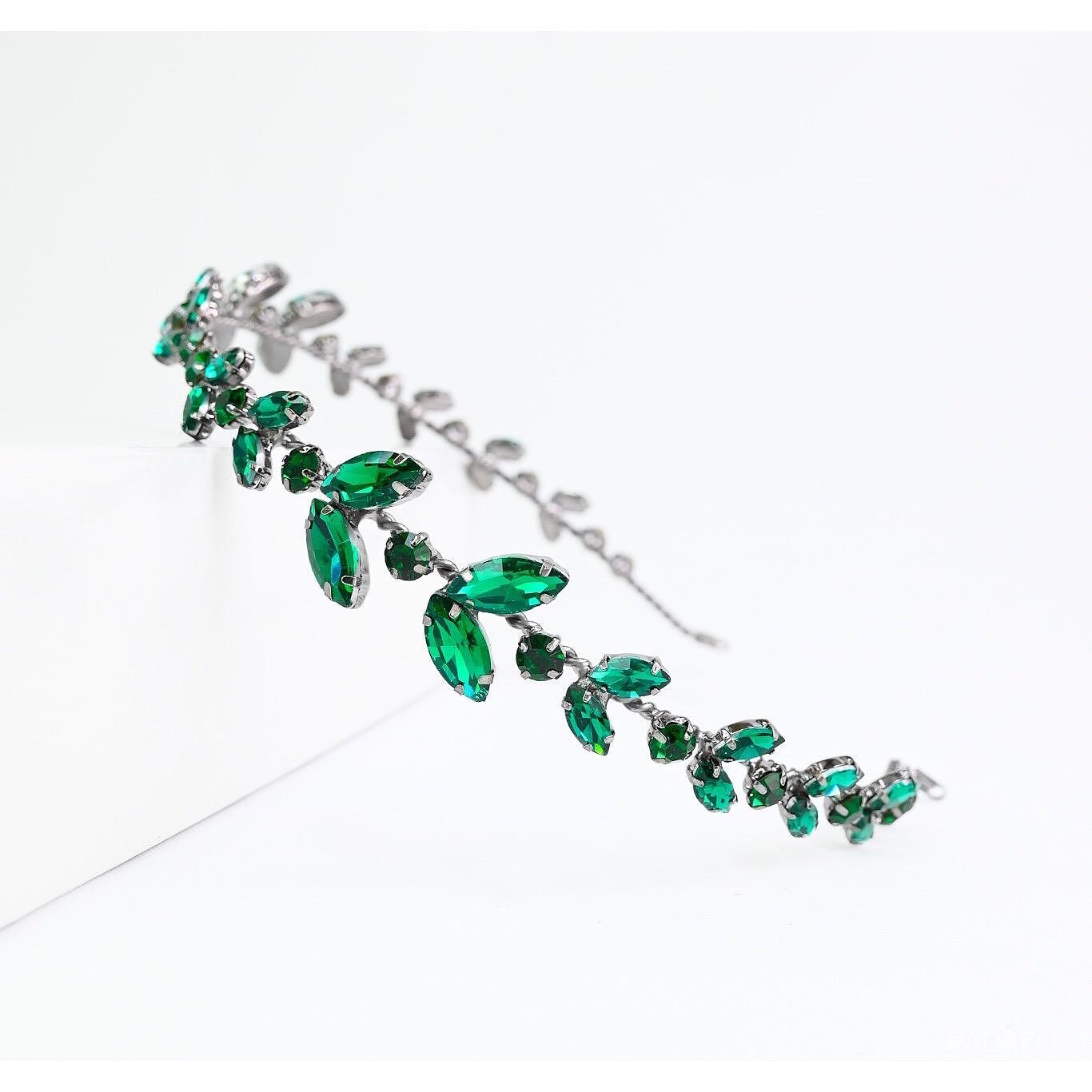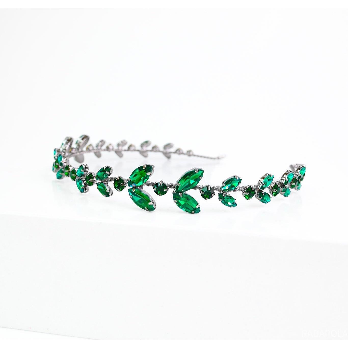Уникална тиара със зелени кристали, широка 2см. Изключително елегантна. Подходяща за официални поводи, можете да носите аксесоара както с пусната коса, така и с прибрана. Изработена е ръчно от висококачествени материали. Размерът може да бъде регулиран спрямо вашата глава, за да бъде удобно за всеки.