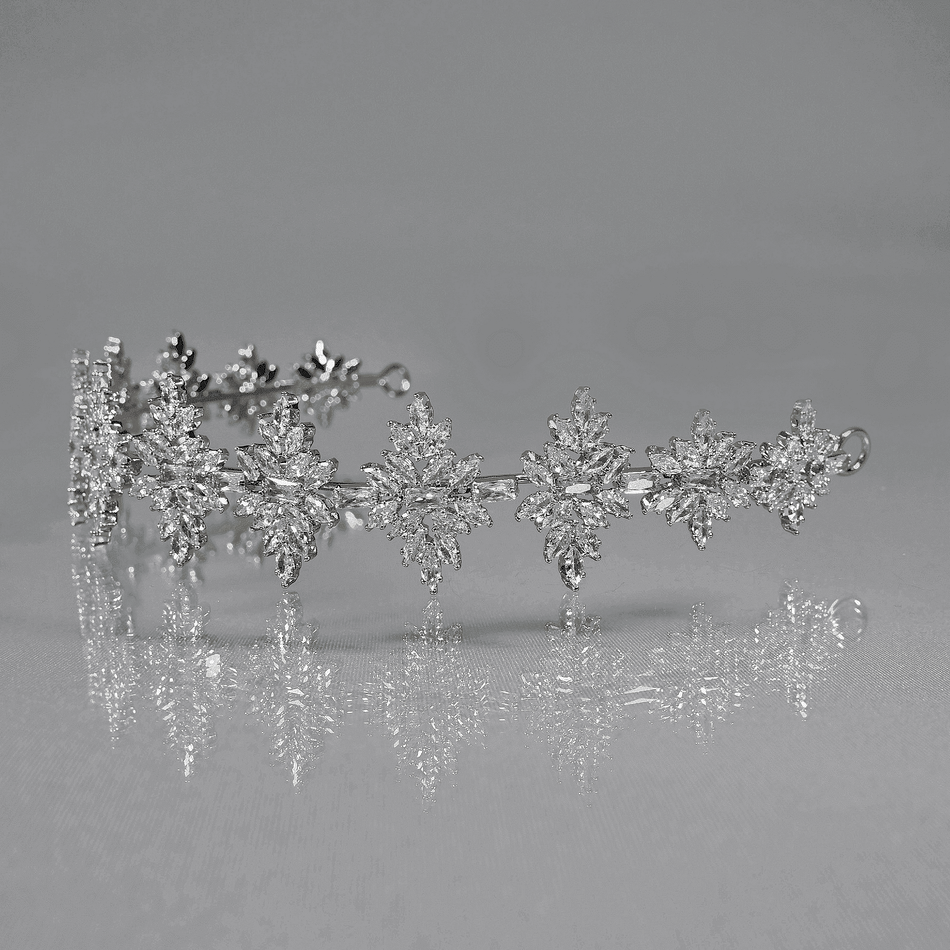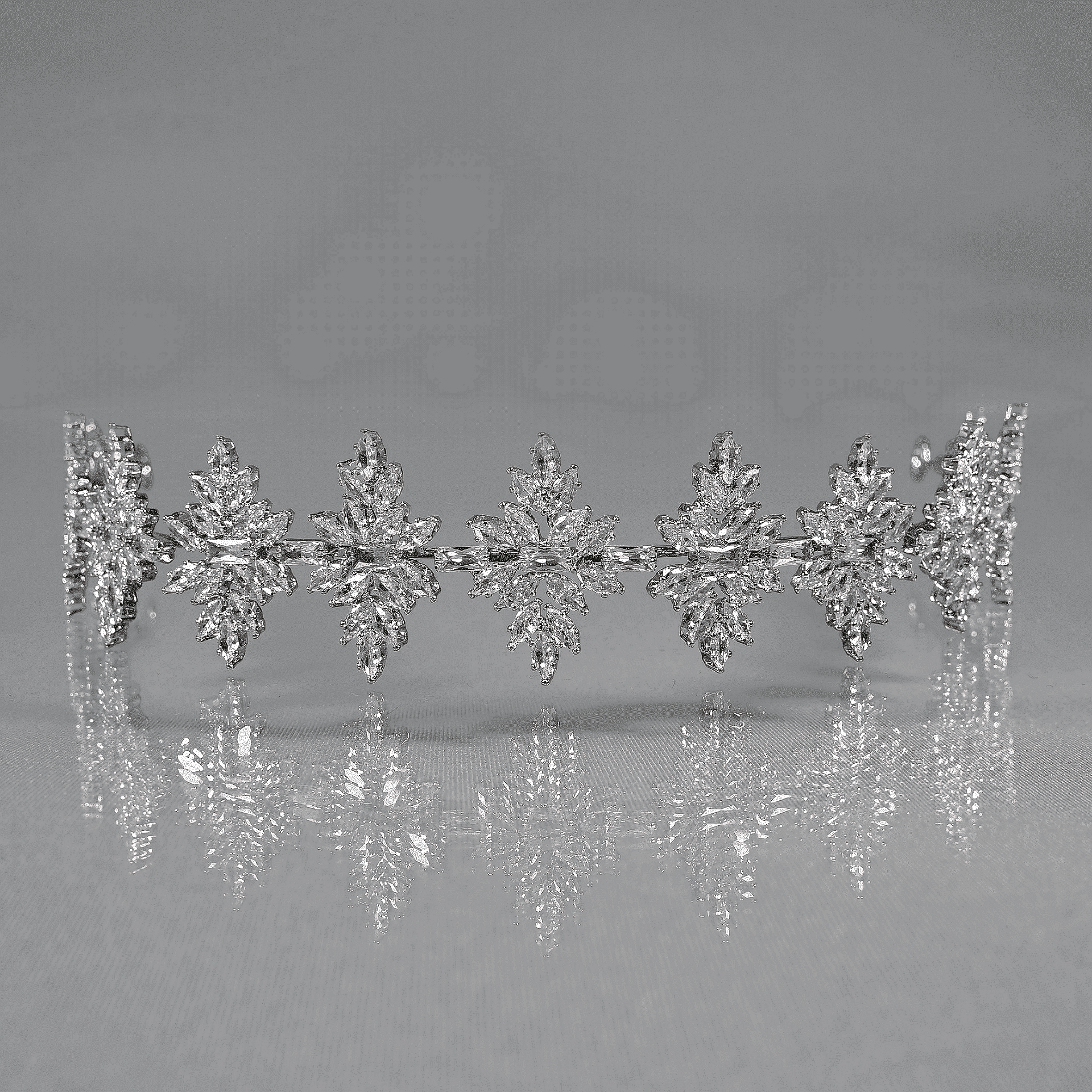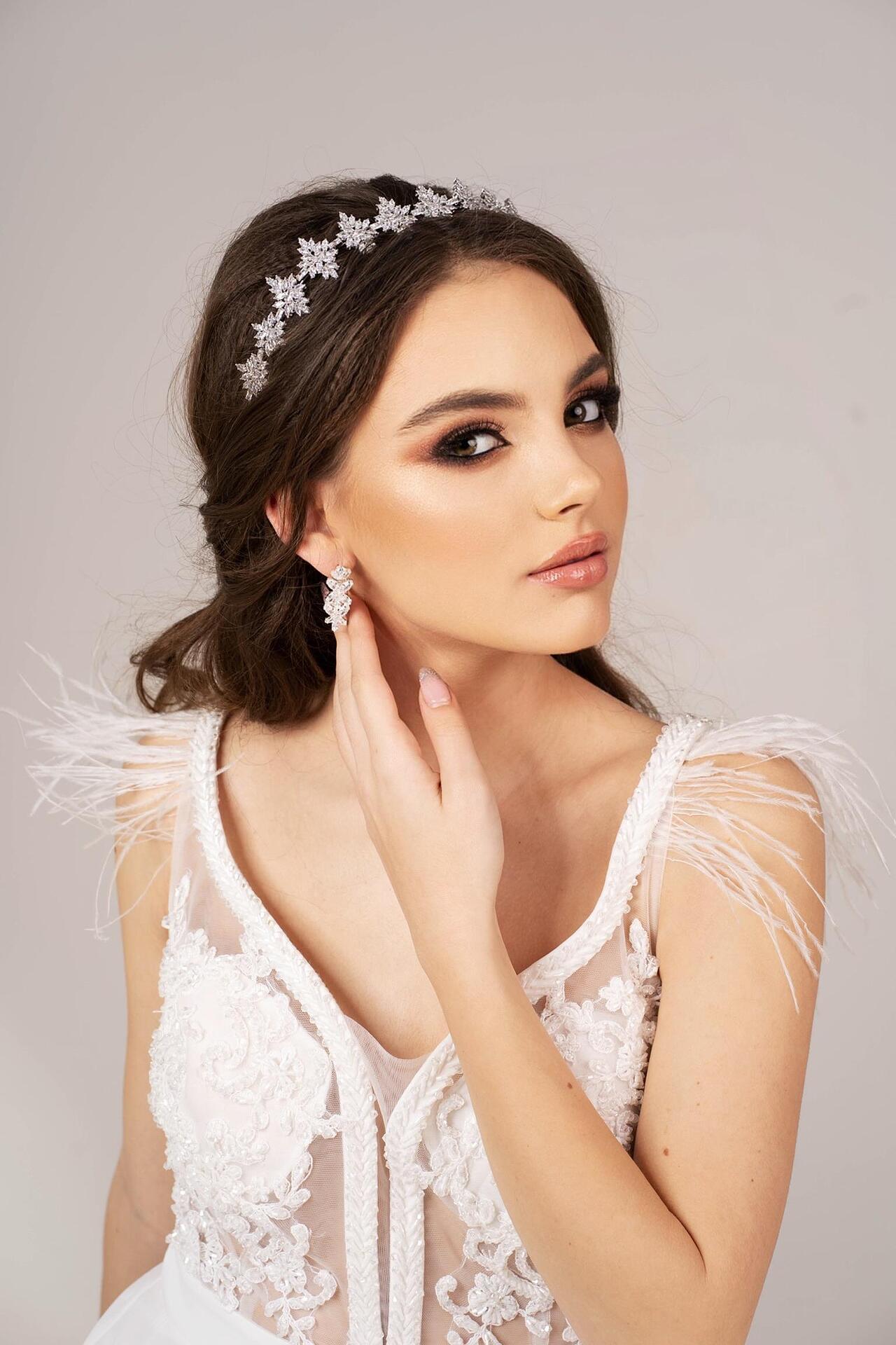 Представлява метална диадема, към която има прикрепени кристали цирконий. Този аксесоар може да направи всяка обикновена визия специална, благорение на ефекта, който създават кристалите върху него. Размерът може да бъде регулиран спрямо вашата глава, за да бъде удобно за всеки.