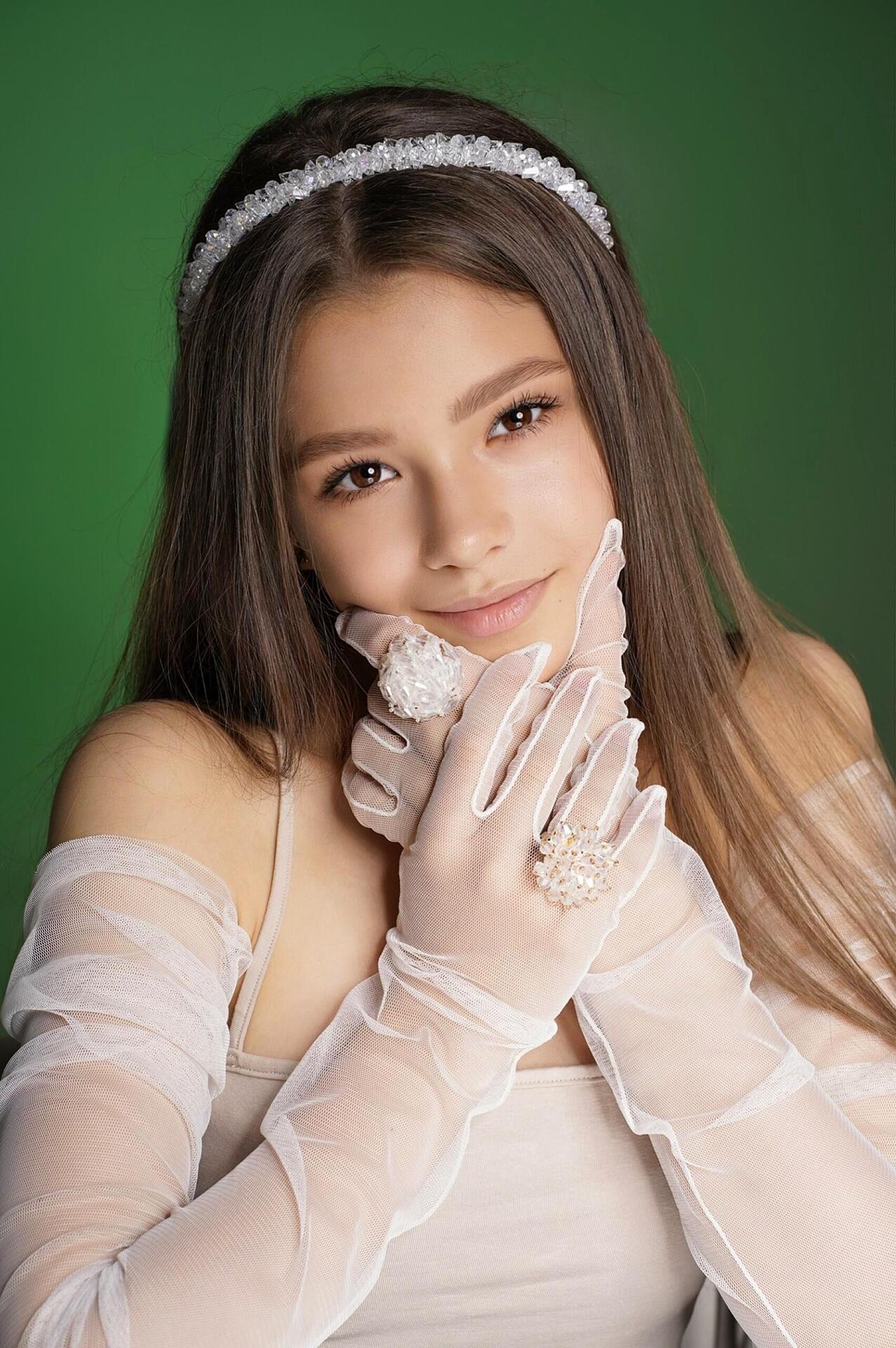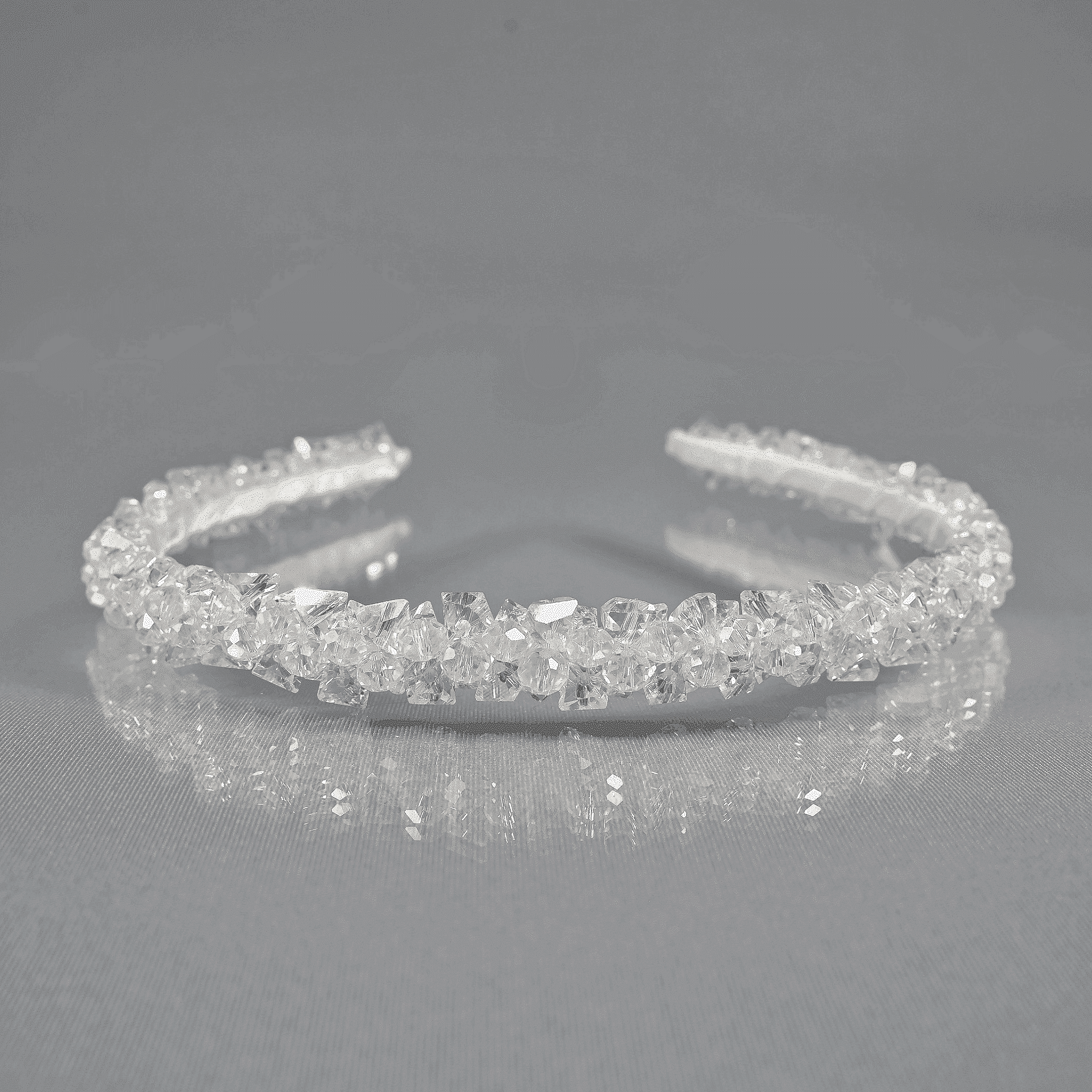 Тънка, нежна диадема с чудно сияйни кристали, широка 1,2 см. Подходяща за вашият сватбен ден както и за други официални събития и визии. Лека, удобна и практична. Можете да съчетаете аксесоара както с пусната коса, така и с прибрана
