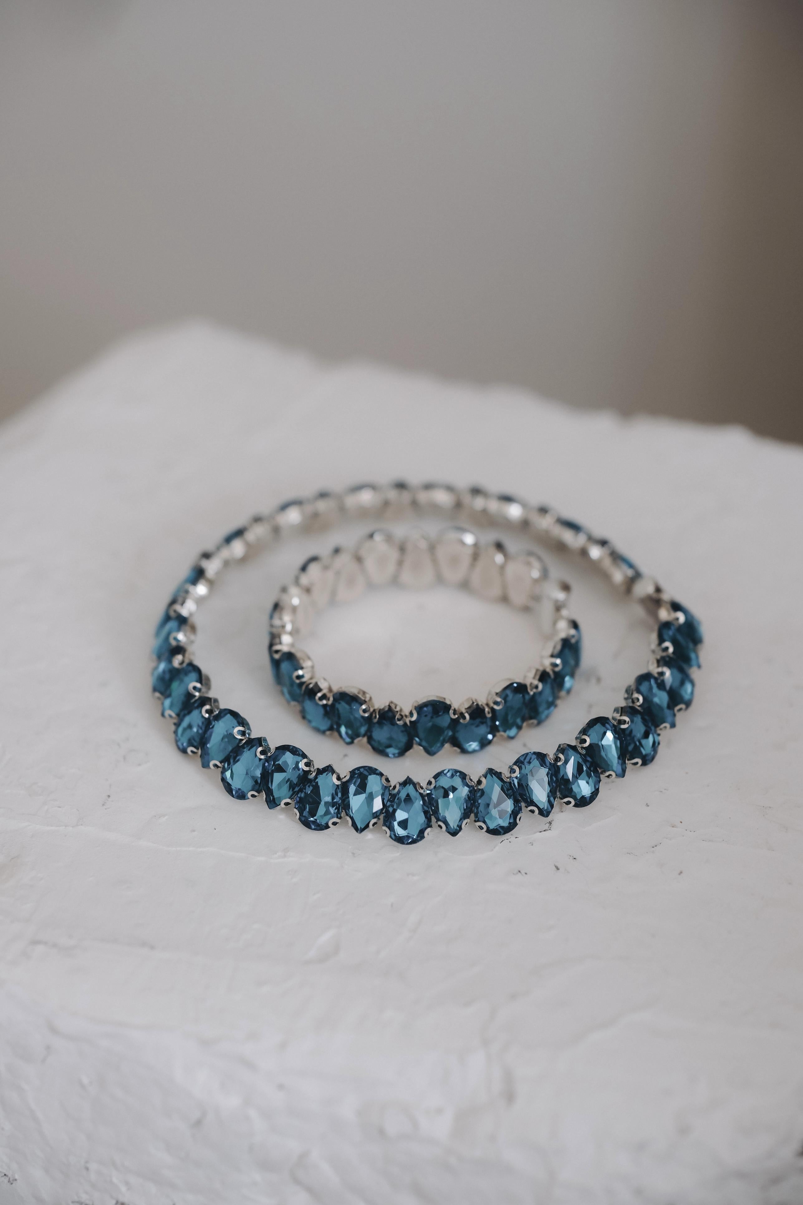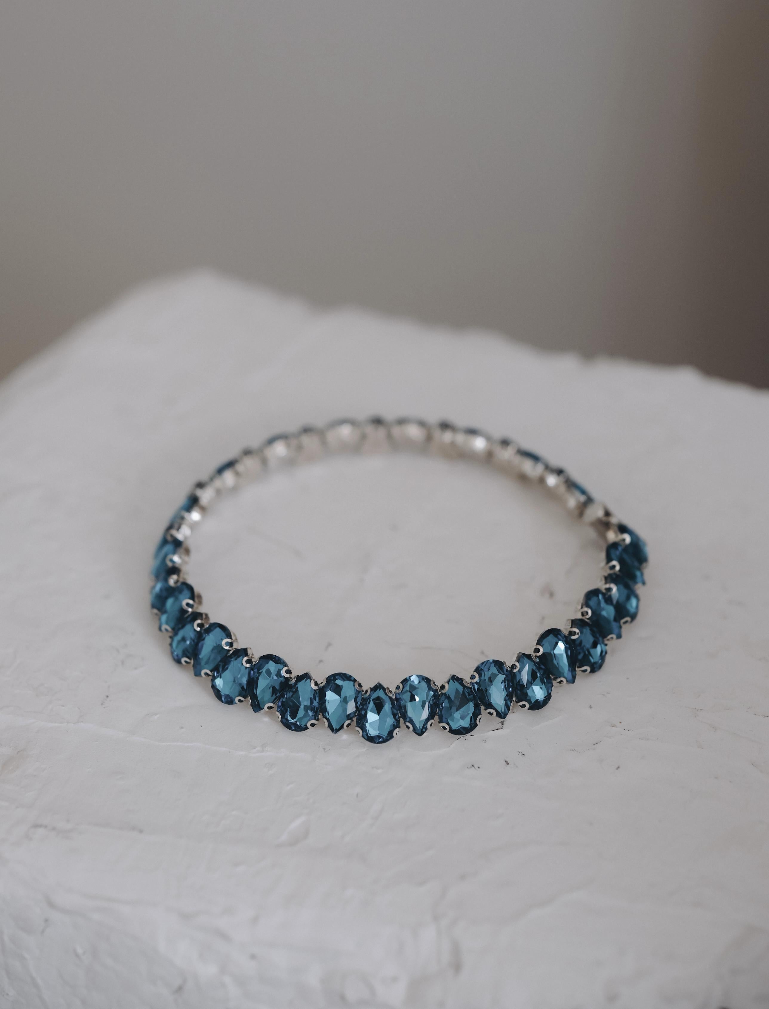 Невероятен нежен чокър, с ръчно подредени кристали. Използвани са висококачествени материали. Кристалите, прецизно наредени по цялата дължина на колието, отразяват светлината и придават ослепителен блясък.