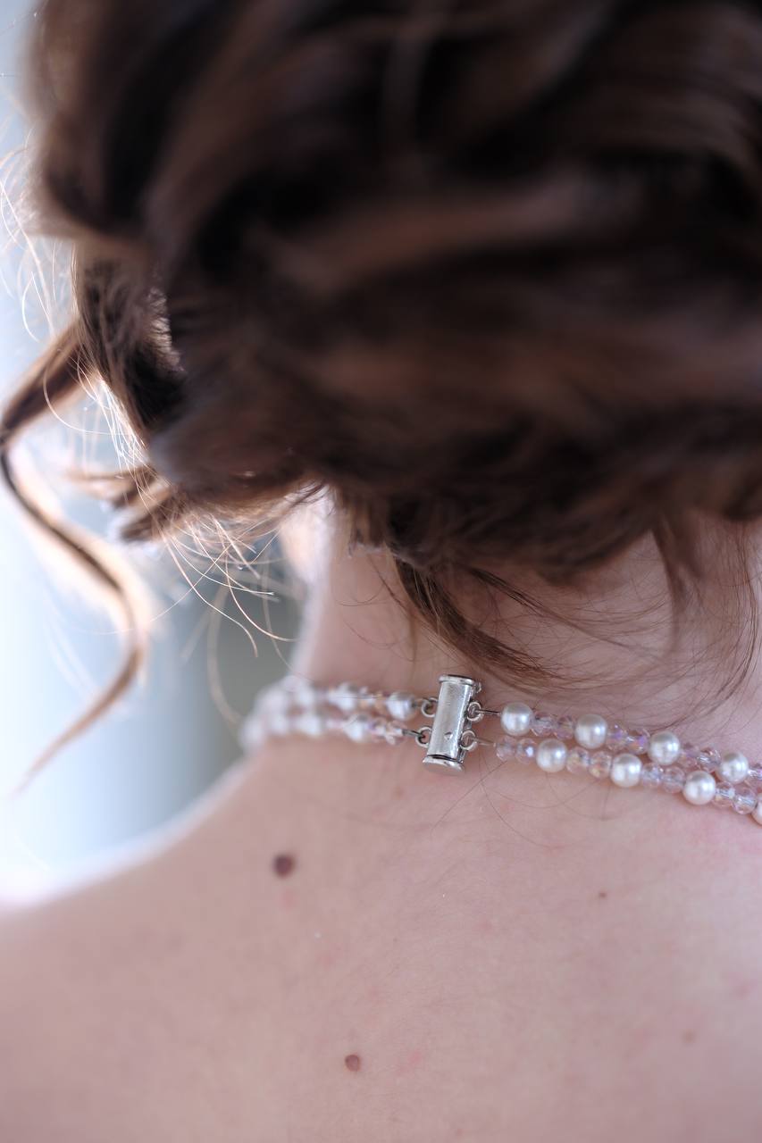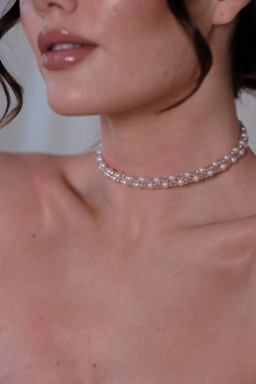Елегантно двойно колие с ръчно нанизани бели перли и прозрачни кристали. Колието е с идеална дължина, която обгръща врата, подчертавайки деколтето. Невероятно съчетание в цветовете.