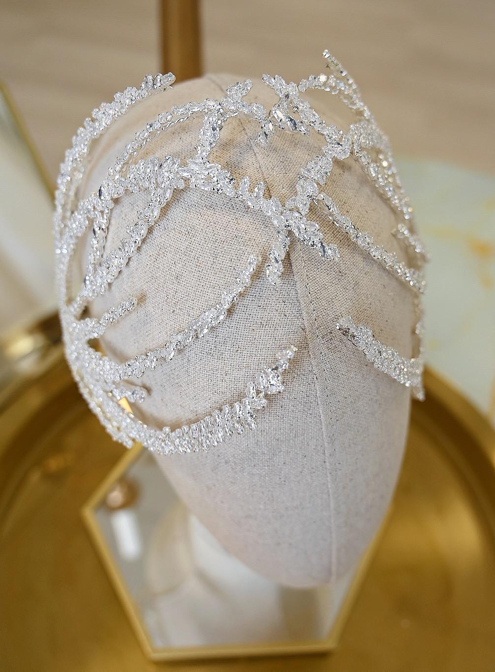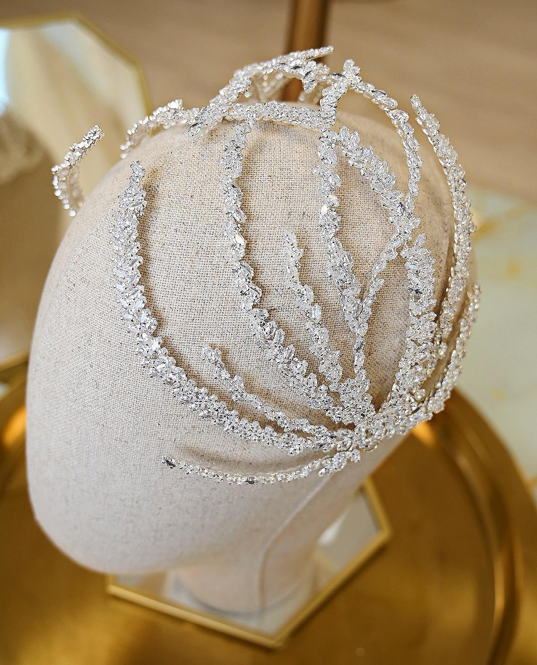 Сребърна тиара с кристали цирконий, която е широка 14 сантиметра (в най-обемната си част). Подходяща е за вашия специален ден. Изработена е ръчно от висококачествени материали.