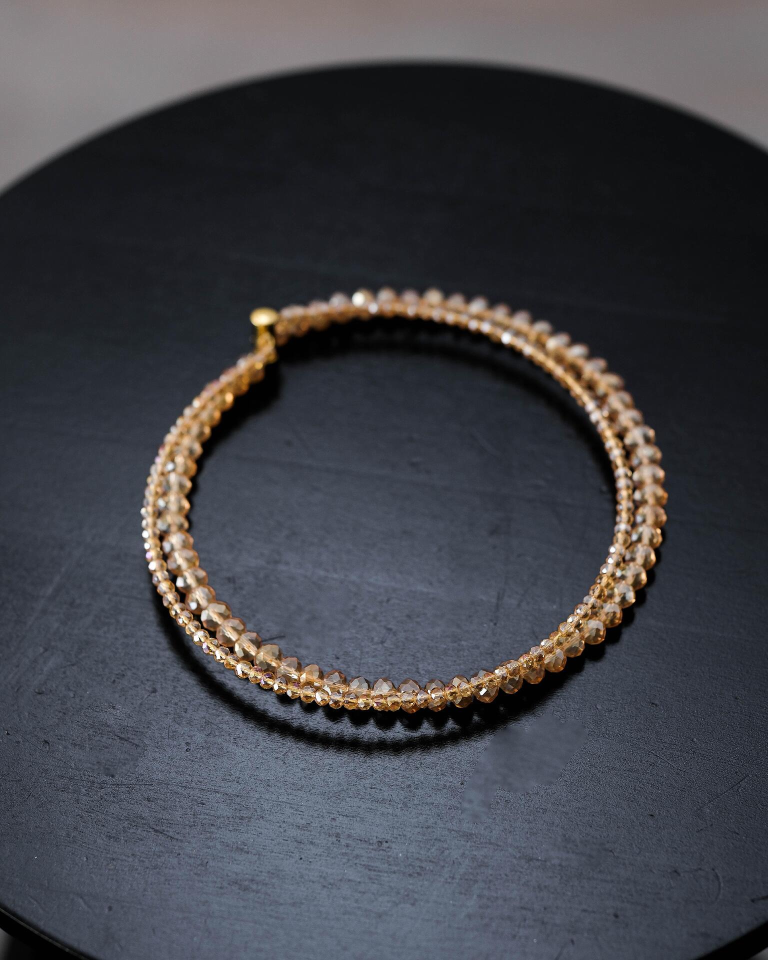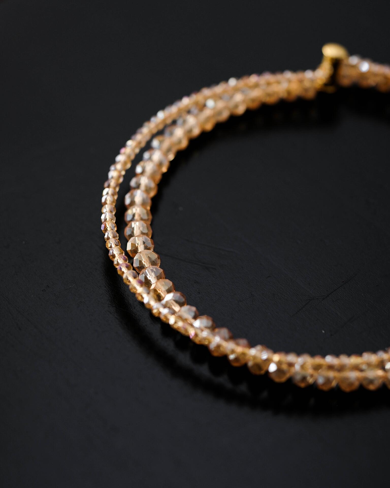 Ръчно направено колие на два реда с нанизани мъниста. Мънистата са стъклени и висококачествени. Блестящо допълнение към вашата визия. Закопчава се с магнитна закопчалка.