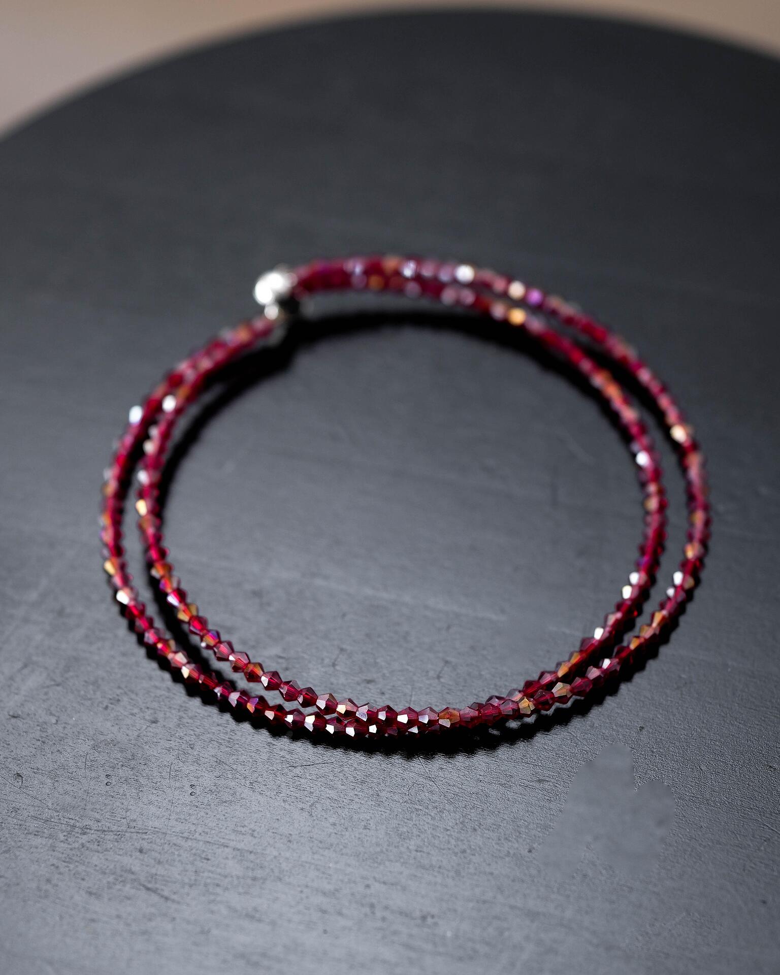 Ръчно направено колие на два реда с нанизани мъниста. Мънистата са стъклени и висококачествени. Блестящо допълнение към вашата визия. Закопчава се с магнитна закопчалка.