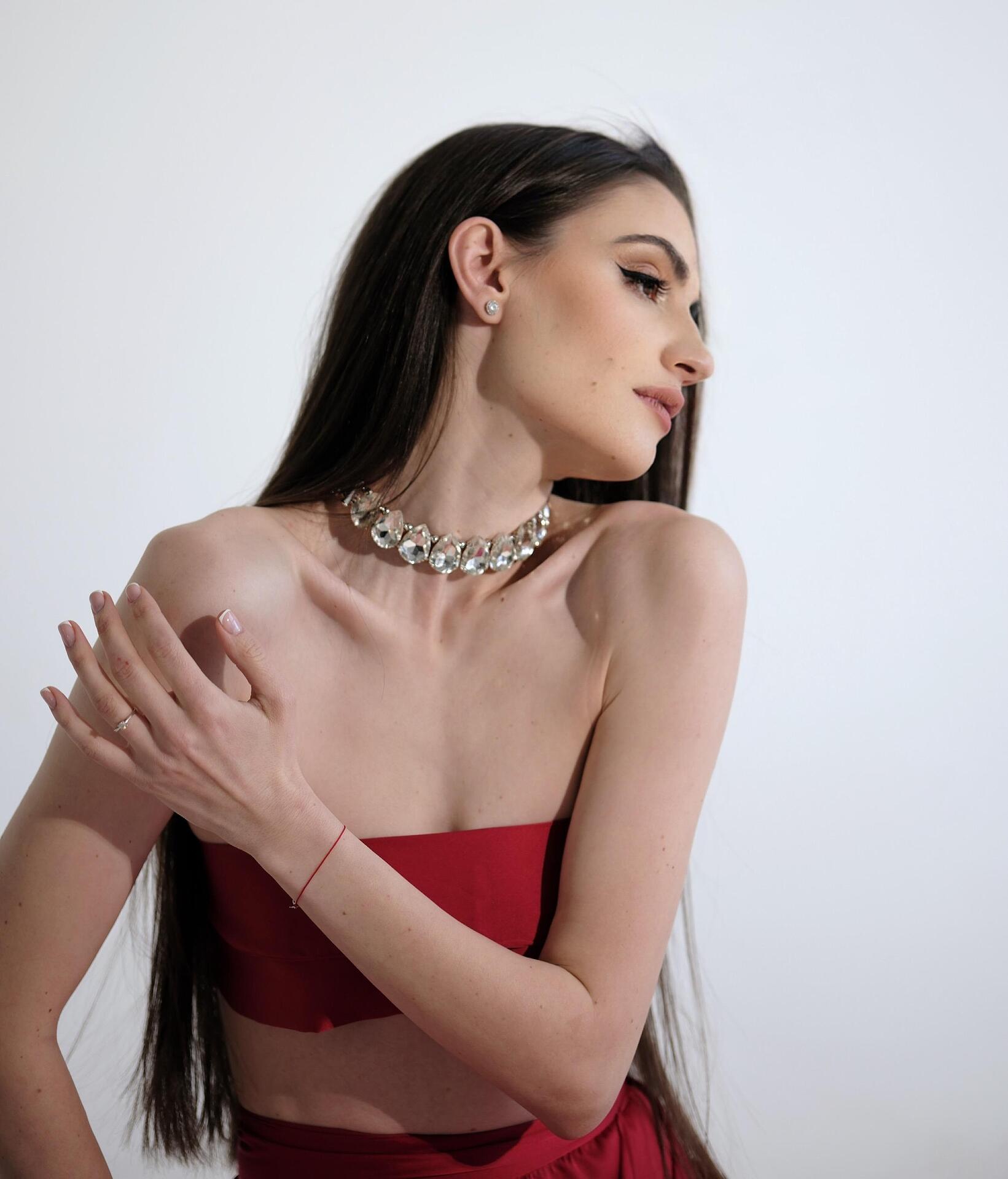 Колие с обемни камъни. Камъните са стъклени и висококачествени.