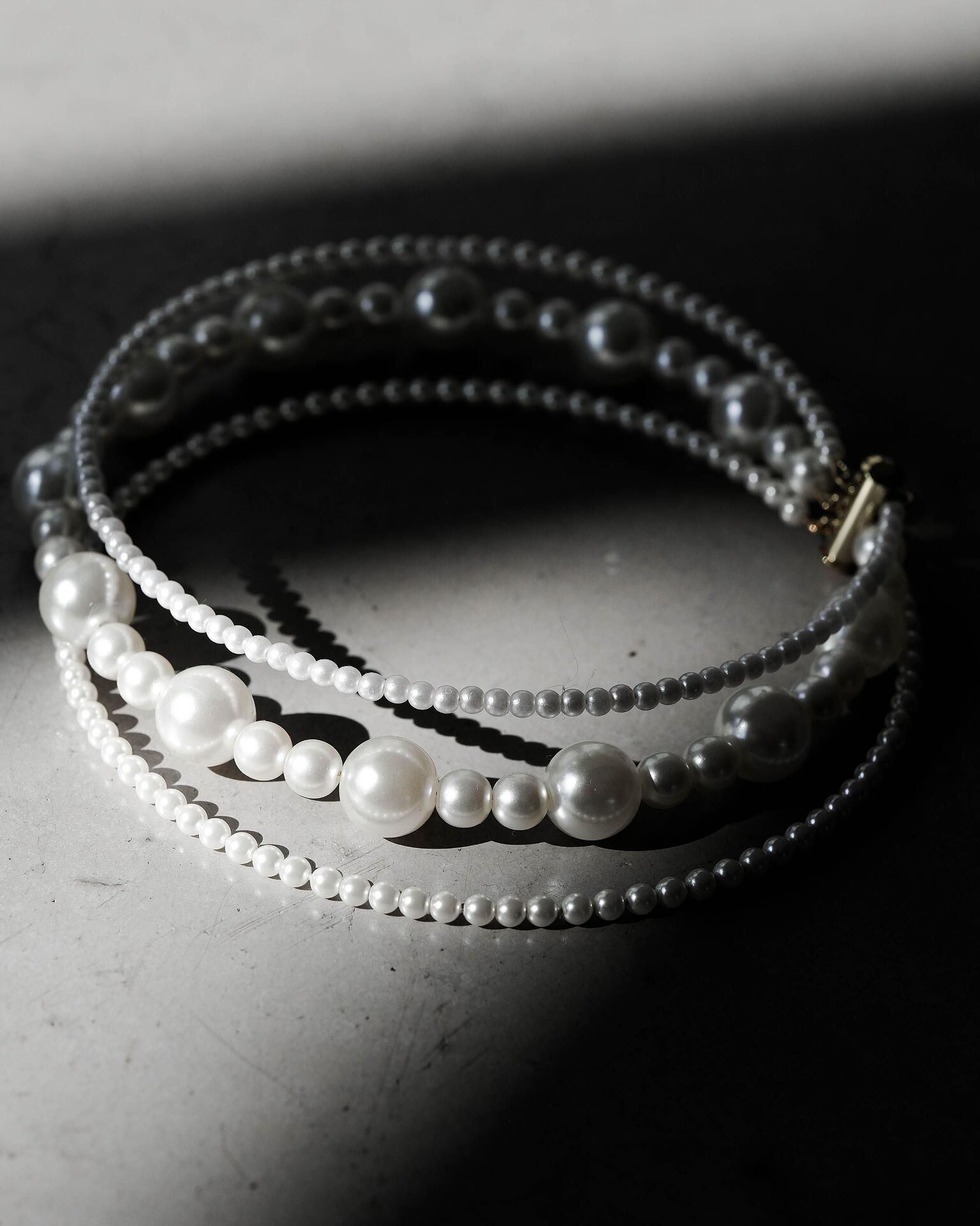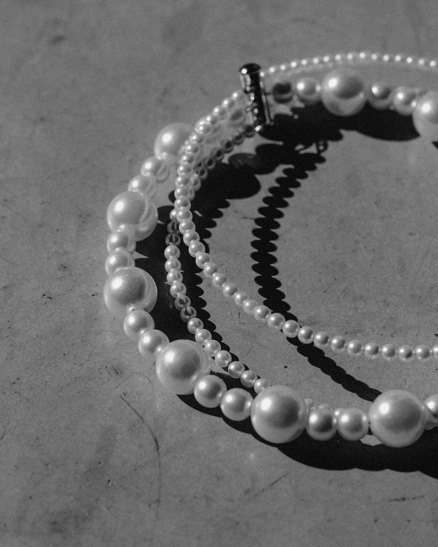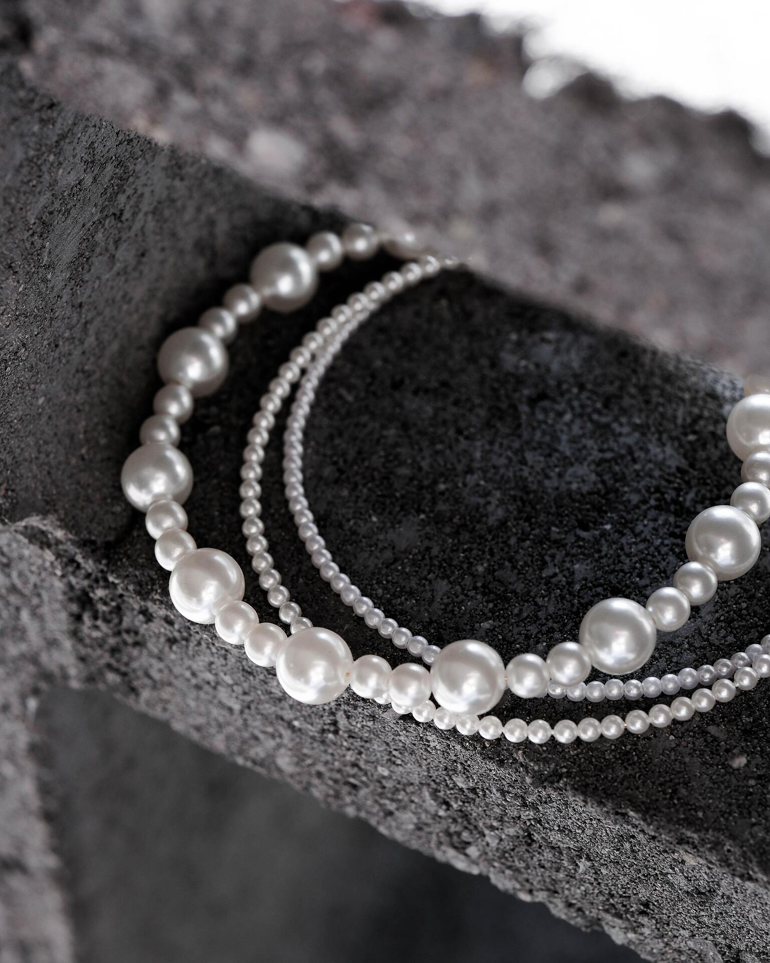 Колие от различни по горемина бели перли, което дъпълва вашата официална или ежедневна визия. С идеална дължина, която обгръща врата, подчертавайки деколтето.