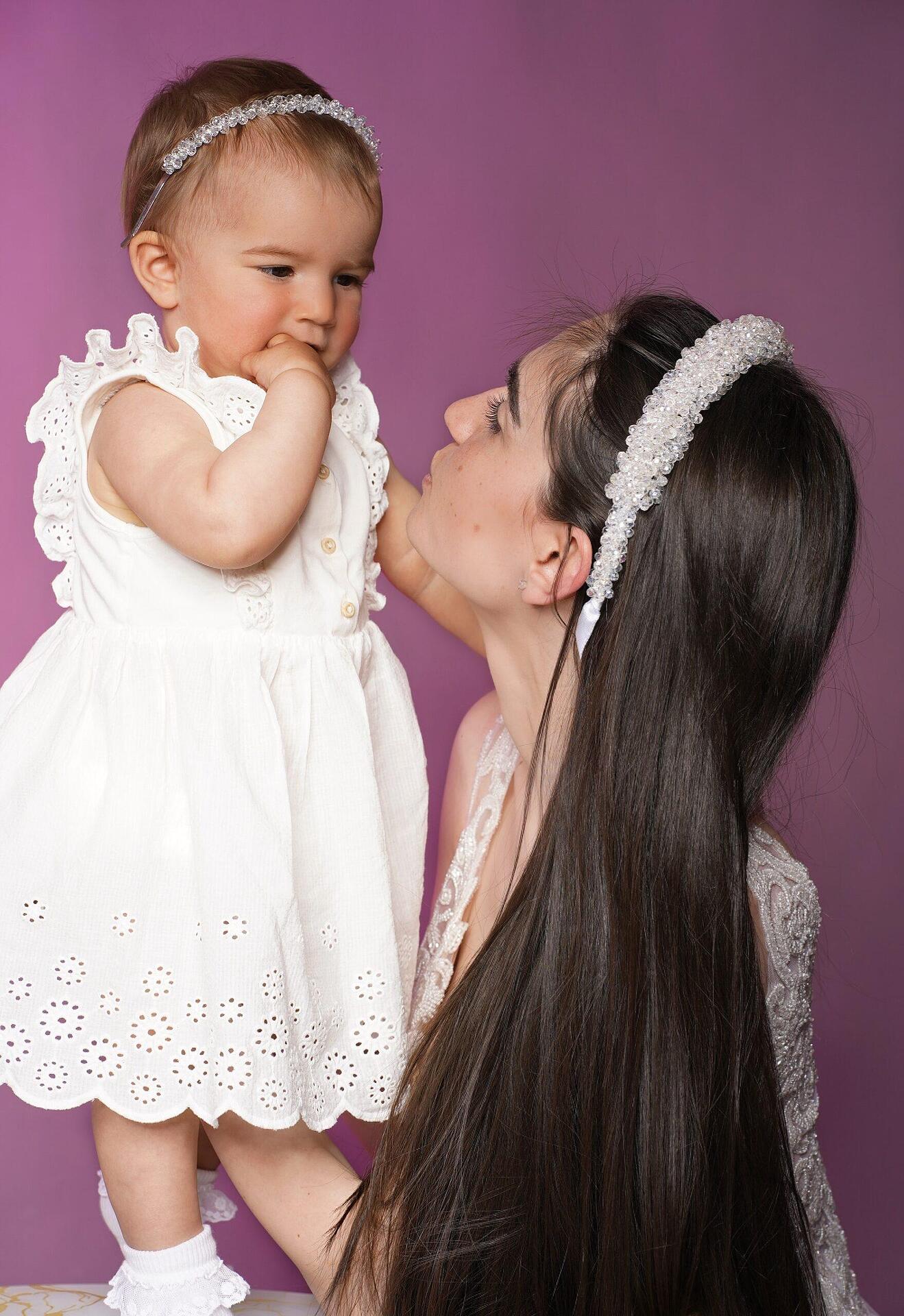 Комплект от ръчно изработени диадеми. Изключително красиви, подходящи за вас и вашето момиченце.Изработени от висококачествени материали и твърда корда, която държи здраво и стегнато кристалите по основите на дидемите. Размерът може да бъде регулиран, за да бъде удобно за всеки.