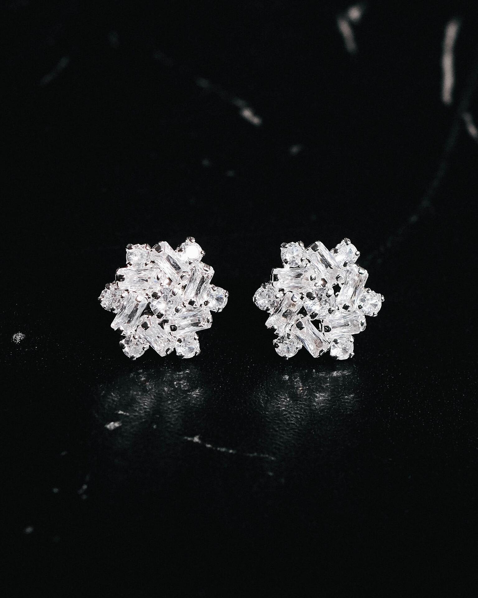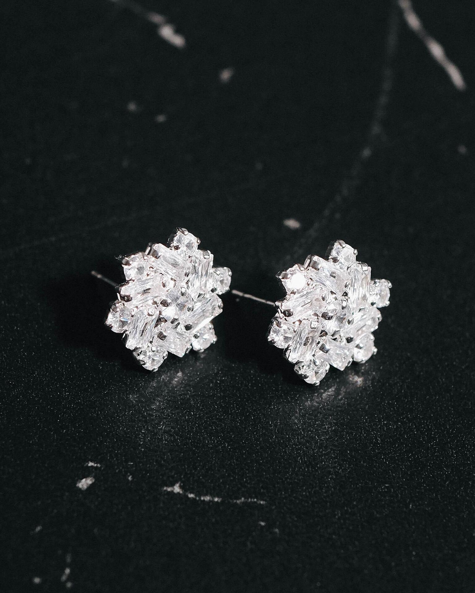 Нежни обеци във формата на снежинка с кристали цирконий. Блясък и нежност в едно!