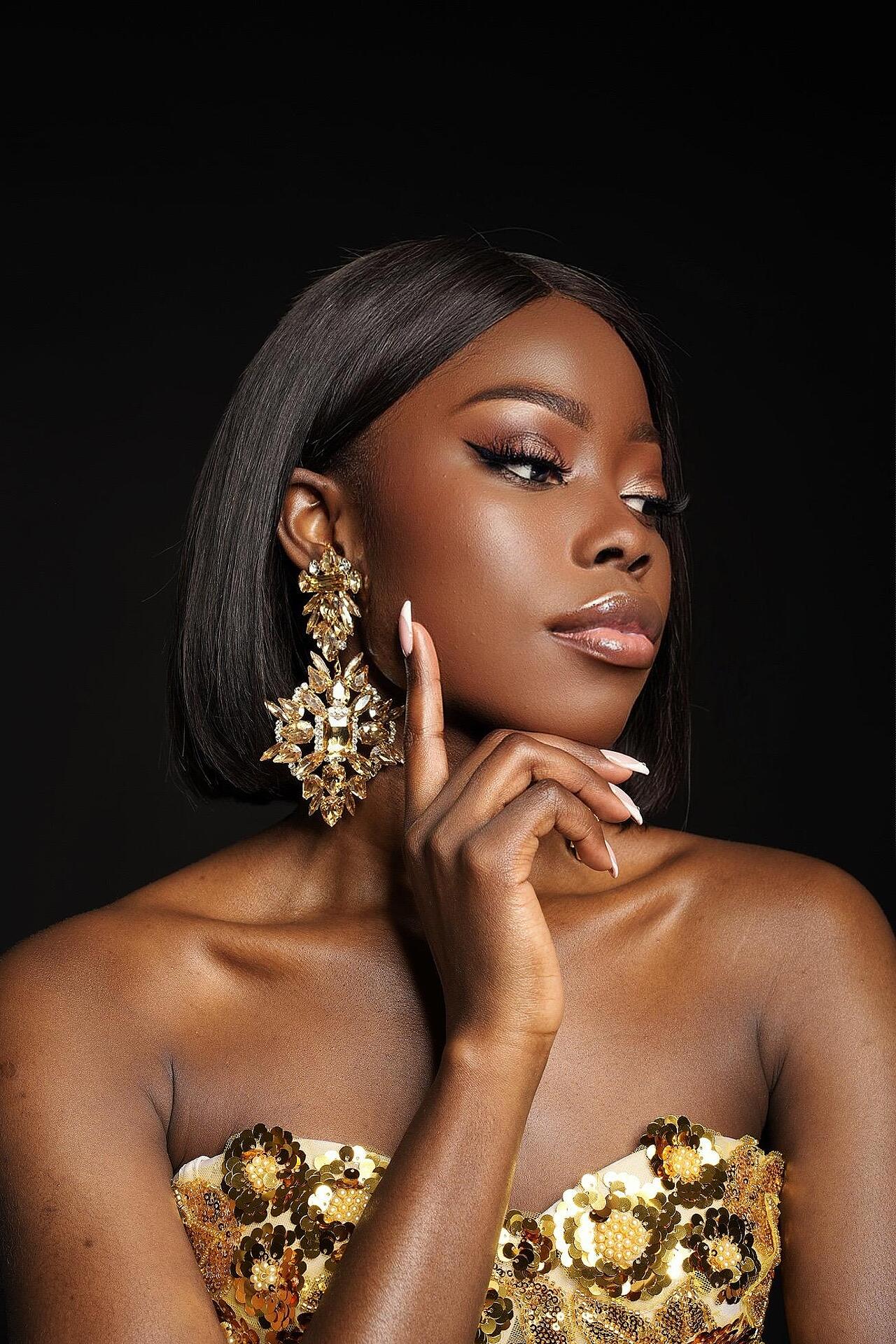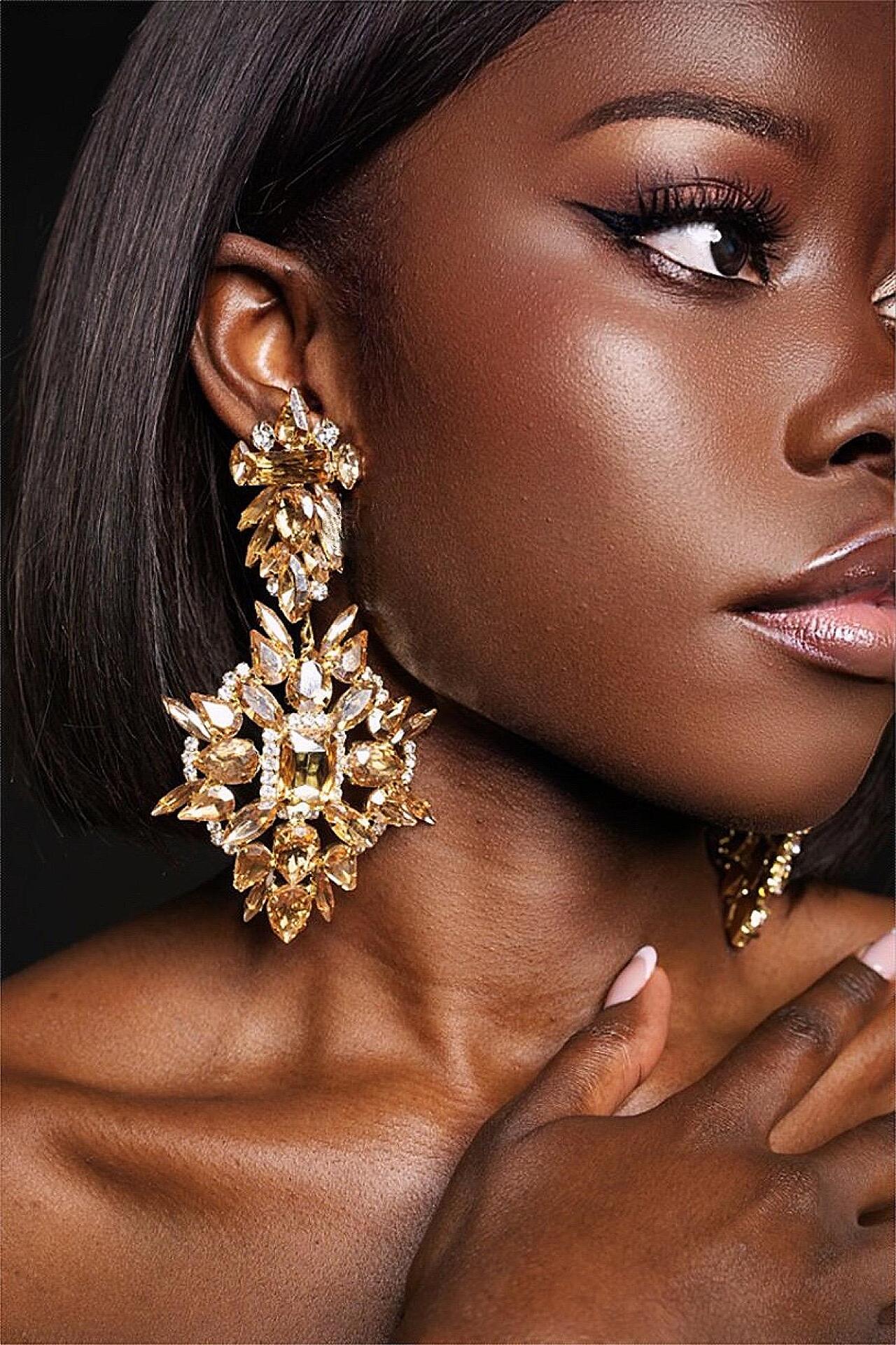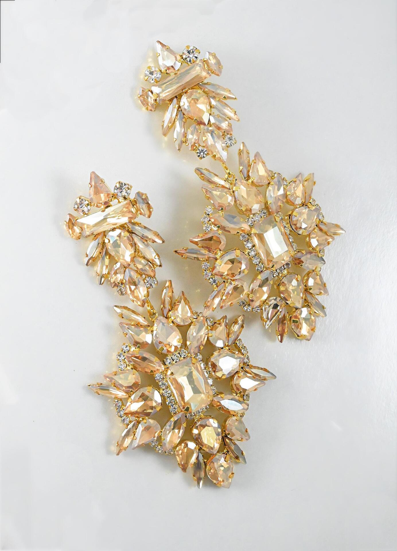 Масивни златисти обеци с кристали. Изработени са ръчно от висококачествени материали. Закопчаването е с винт.