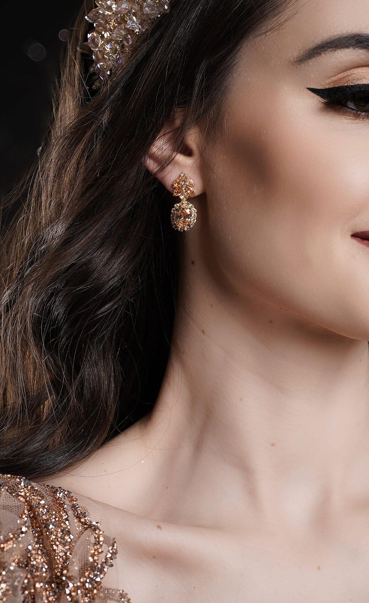 Обеци с кристали цирконий. Подходящи за всякакви поводи. Предлагат се и в други цветове. Ръчно изработени от висококачествени материали. Закопчават се с винт.