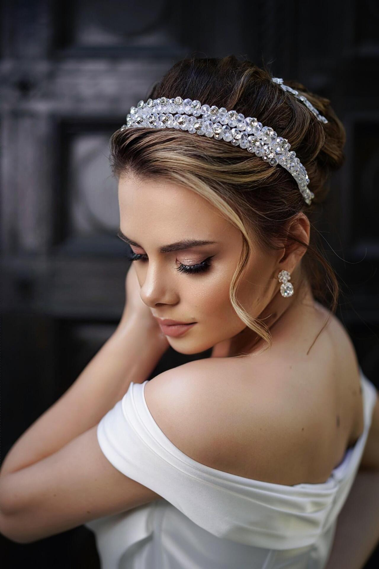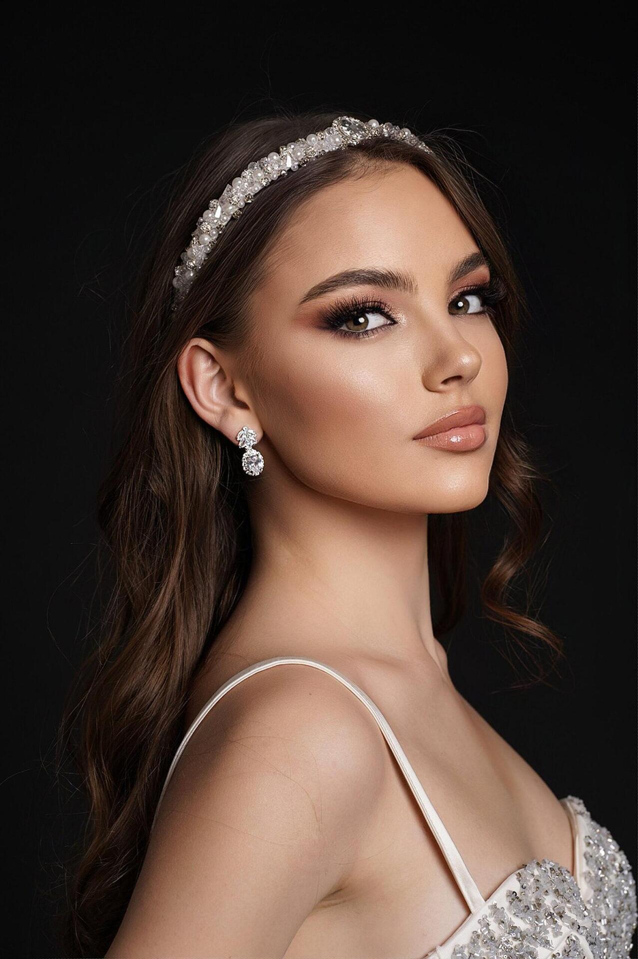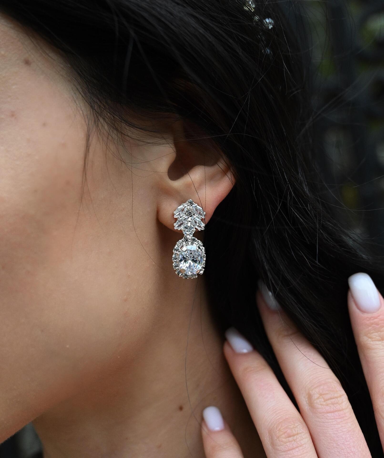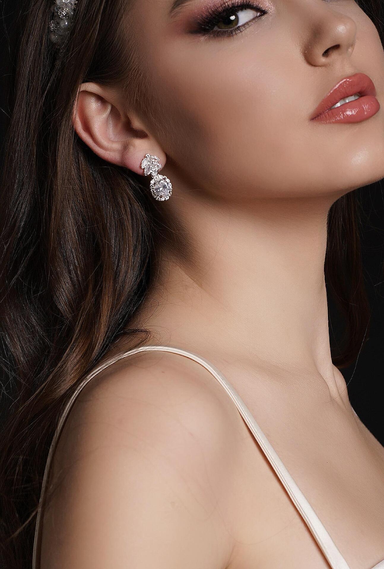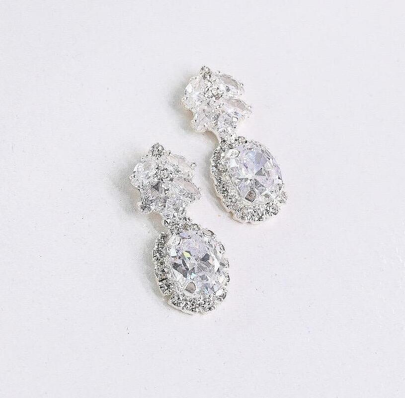 Обеци с кристали. Подходящи за всякакви поводи. Предлагат се и в други цветове. Ръчно изработени от висококачествени материали. Закопчават се с винт. Дължината им е около 3 см.